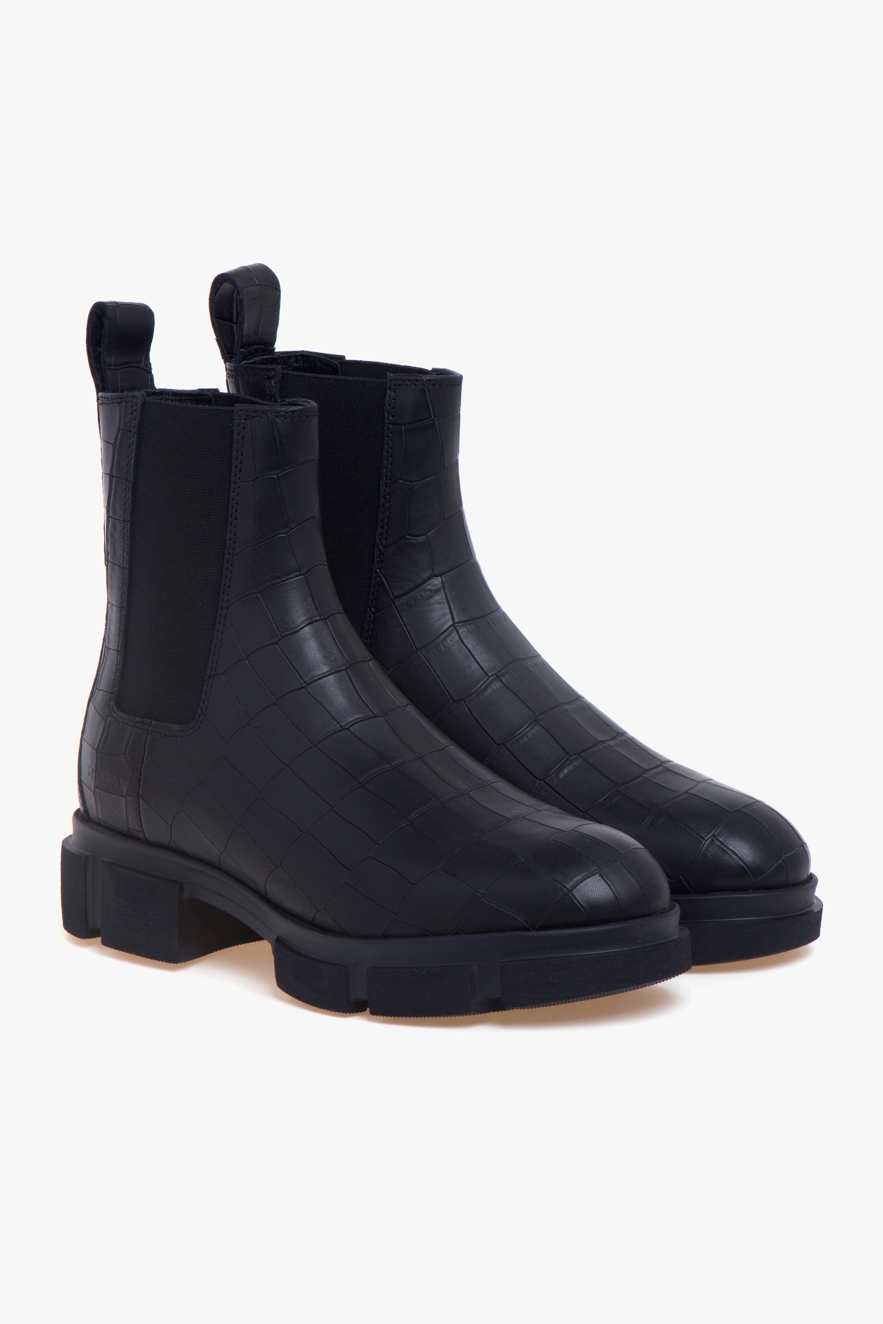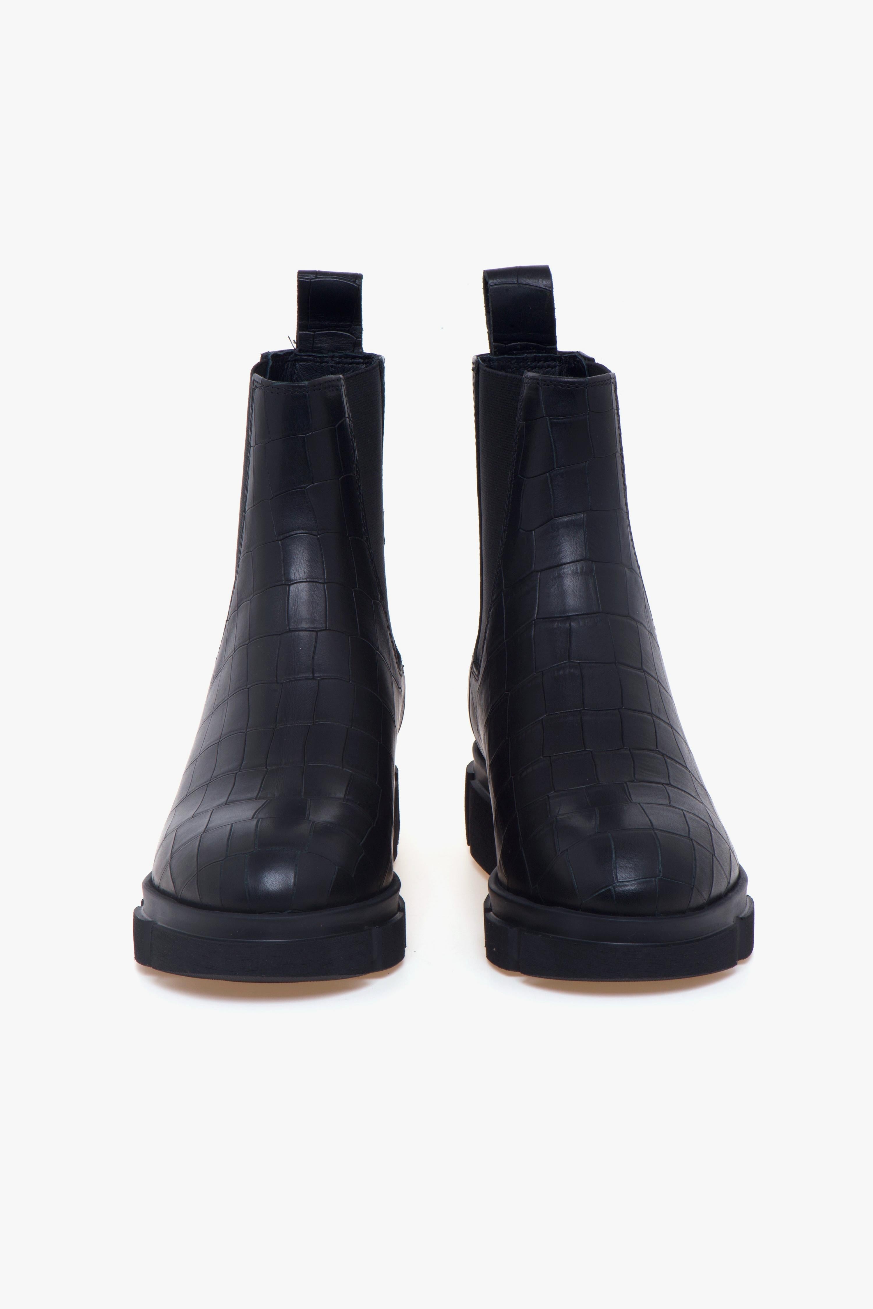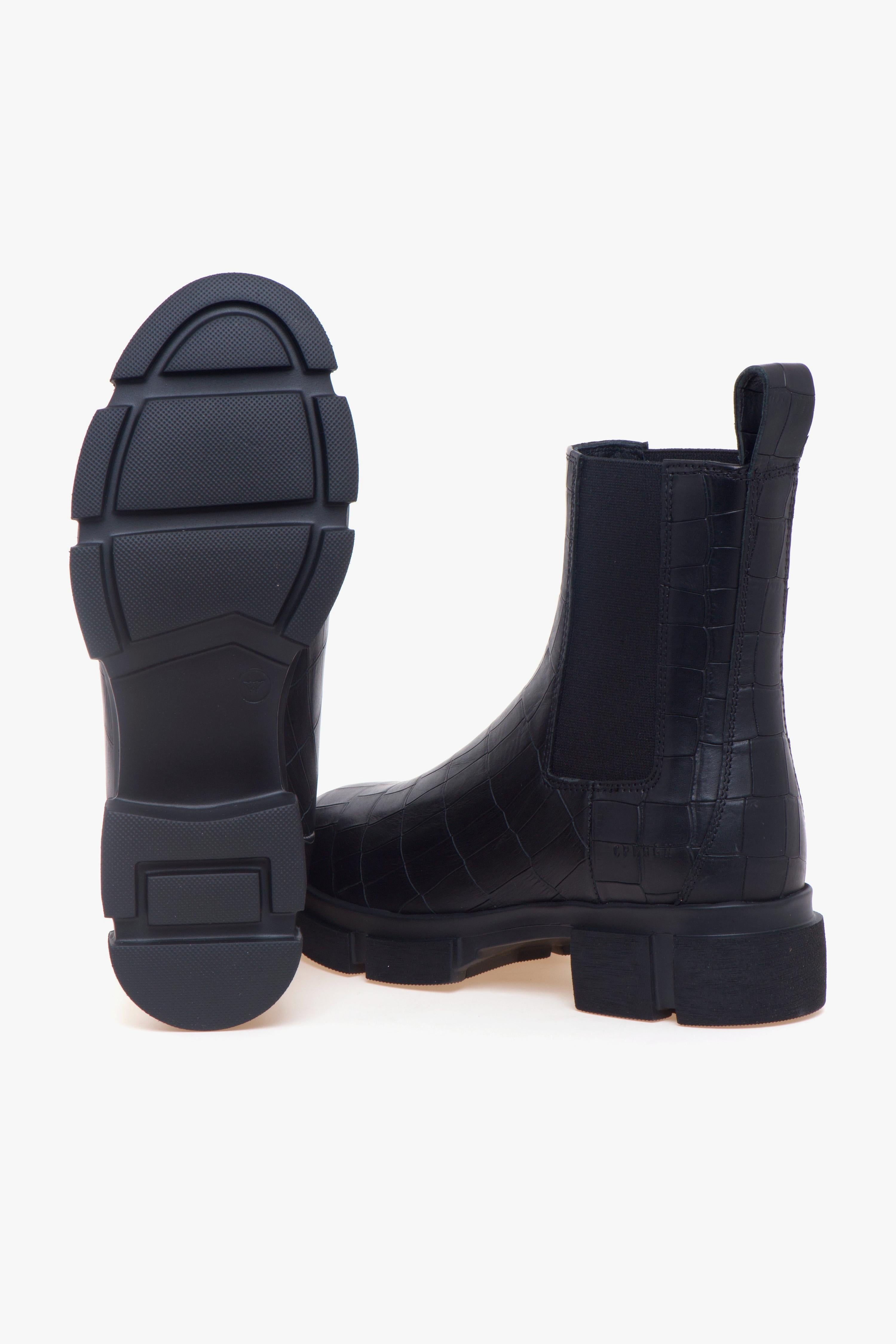 Texture cocco e linee pulite definiscono il Chelsea boot Copenhagen in pelle nera stampa cocco: un modello dal carattere raffinato che unisce essenzialità e impatto visivo. La tomaia minimale è valorizzata dagli elastici laterali sul gambale, pensati per una calzata rapida e confortevole senza rinunciare all’iconicità del design. Sotto, la suola in gomma extra light accompagna ogni passo con leggerezza e buon isolamento, mentre l’interno curato — fodera e sottopiede in pelle — offre traspirabilità e una sensazione premium. Il risultato è uno stivaletto trasversale e facile da abbinare, ideale tanto per il quotidiano quanto per i look casual-chic della stagione fredda. Caratteristiche principali: # Chelsea boot Copenhagen in pelle nera stampa cocco. # Gambale alto dal profilo essenziale. # Elastici laterali per calzata rapida e comoda. # Suola in gomma extra light: leggerezza e isolamento. # Fodera in pelle. # Sottopiede in pelle. # Logo Copenhagen stampato lateralmente. # Suola in gomma per grip quotidiano.