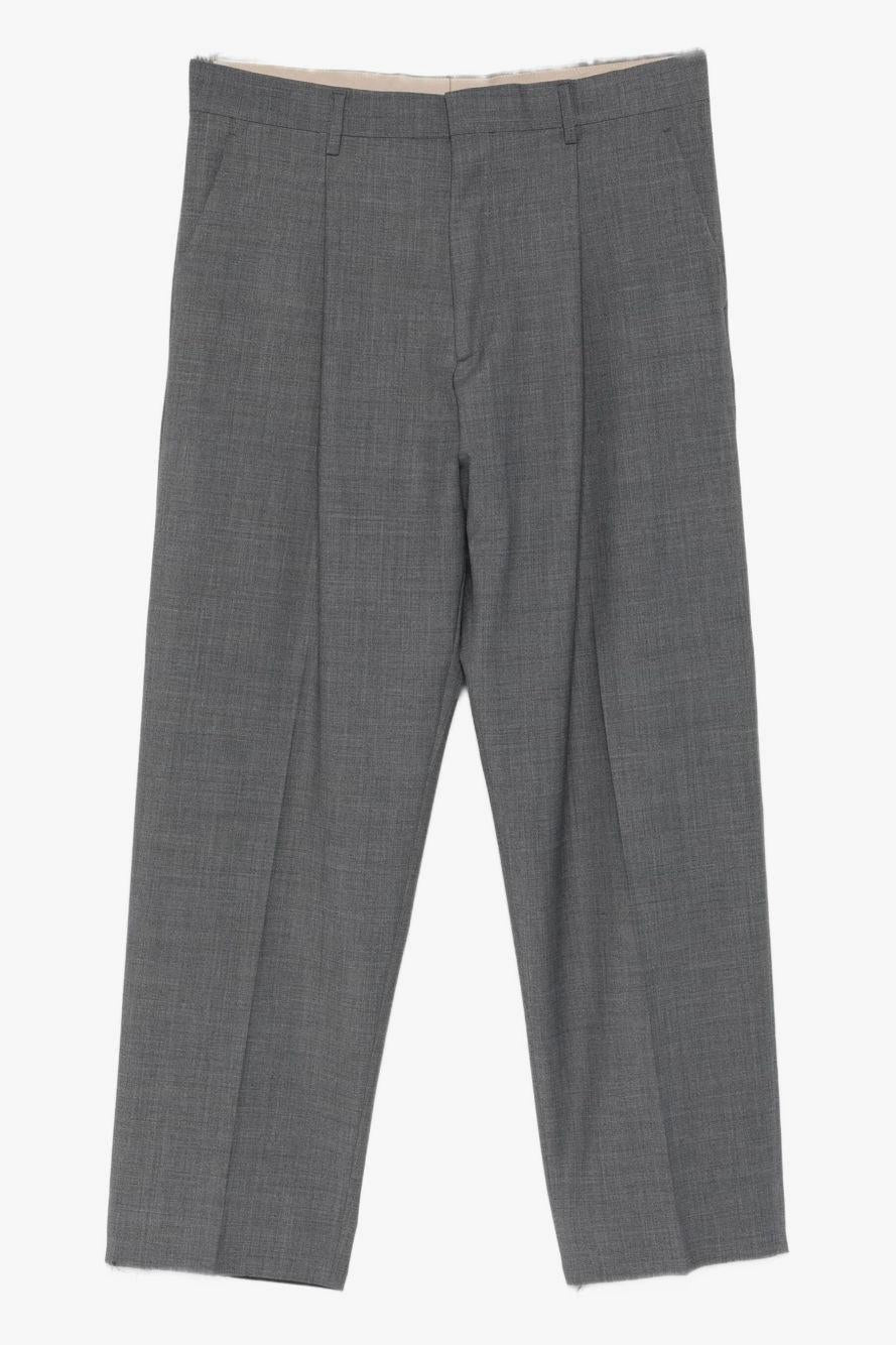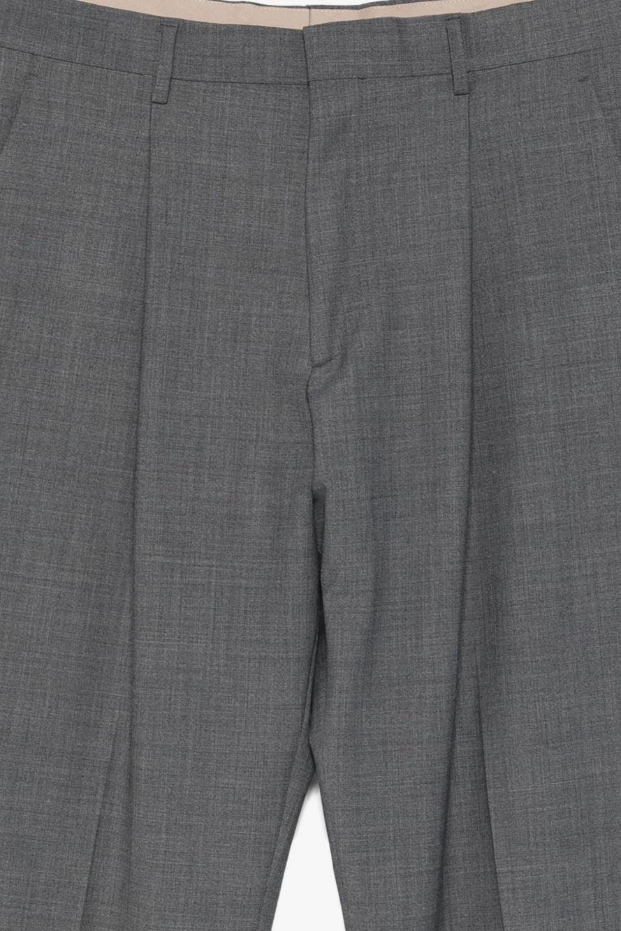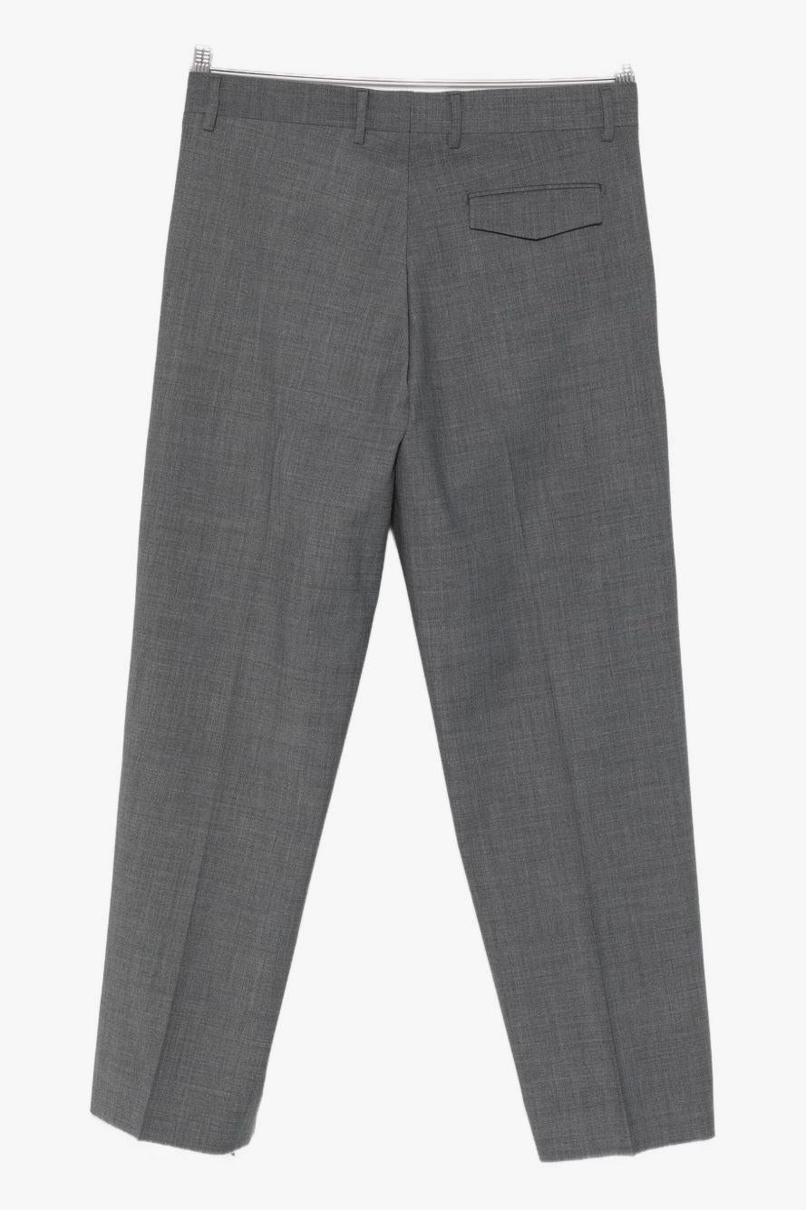 Proposti in grigio, presentano pince frontali, passanti per cintura e chiusura frontale nascosta che assicura una linea pulita. La tasca posteriore con pattina aggiunge un dettaglio classico e funzionale, in perfetto equilibrio tra tradizione e modernità.