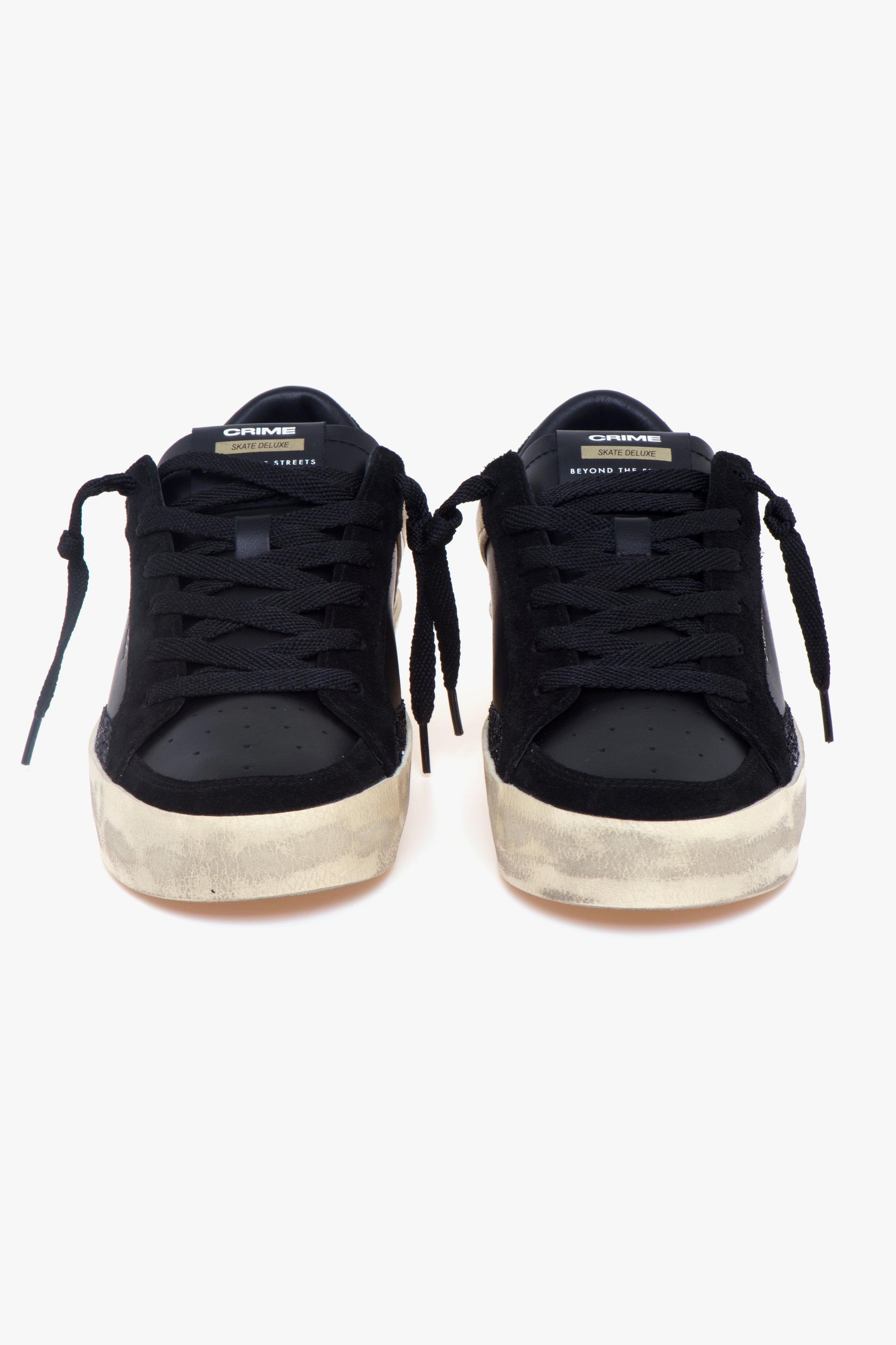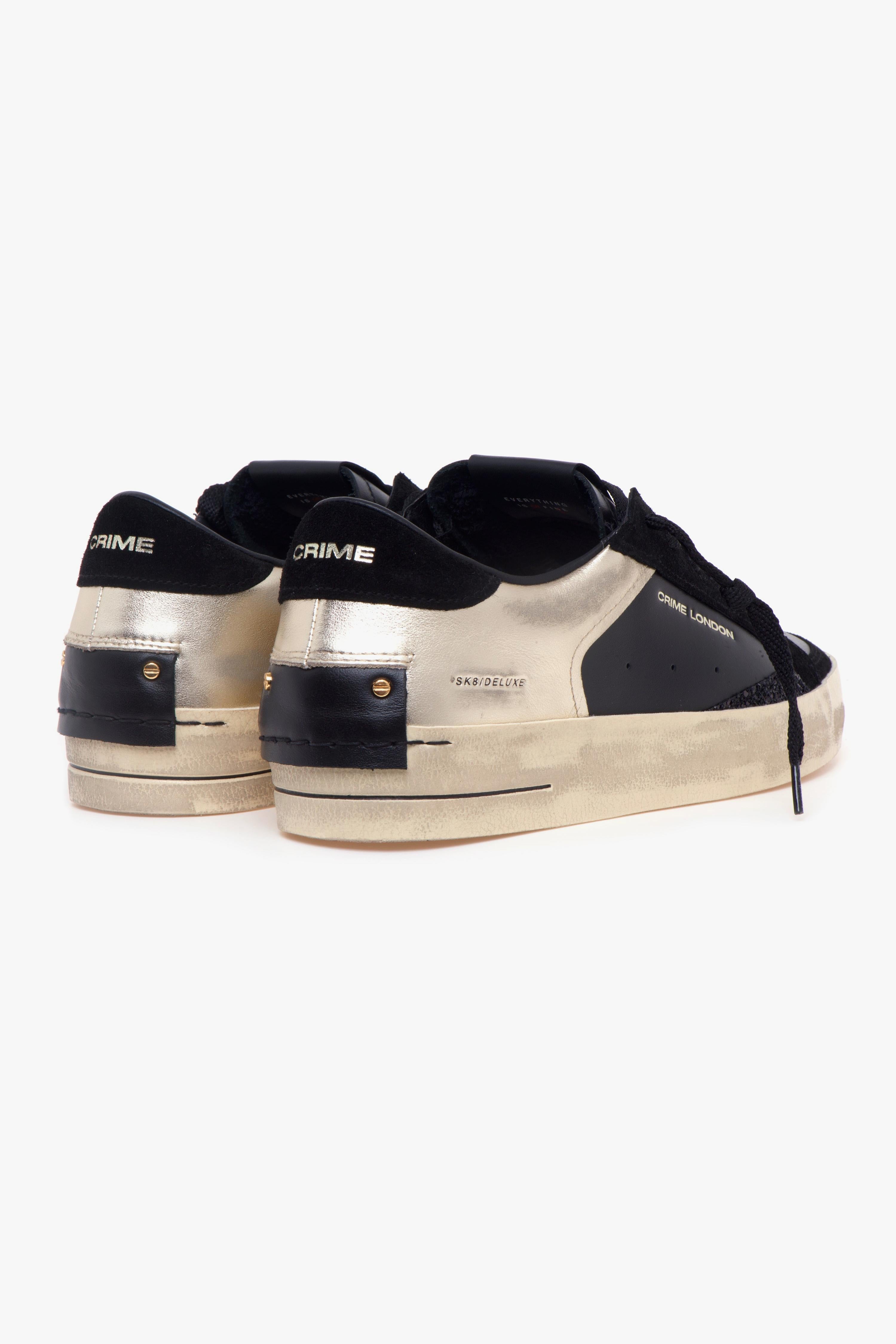 Skate Deluxe di Crime London combina linee pulite e riflessi misurati per un’eleganza quotidiana. La tomaia in pelle nera è animata da inserti in glitter tono su tono che aggiungono profondità senza eccessi, mentre il tallone in pelle laminata platino illumina la silhouette. La suola in gomma con patina effetto vintage, rifinita dal sottile profilo nero dipinto a mano, dona carattere artigianale. Interni curati con fodera in pelle/tessuto e sottopiede estraibile in pelle per una calzata confortevole e pratica, pensata per accompagnare la giornata con stile.Caratteristiche principali: # Modello donna Crime London “Skate Deluxe”.# Tomaia in pelle nera con inserti in glitter nero tono su tono.# Tallone in pelle laminata platino.# Suola in gomma effetto vintage con profilo nero dipinto a mano.# Fodera interna in pelle e tessuto.# Sottopiede estraibile in pelle.# Calzata confortevole, adatta all’uso quotidiano.