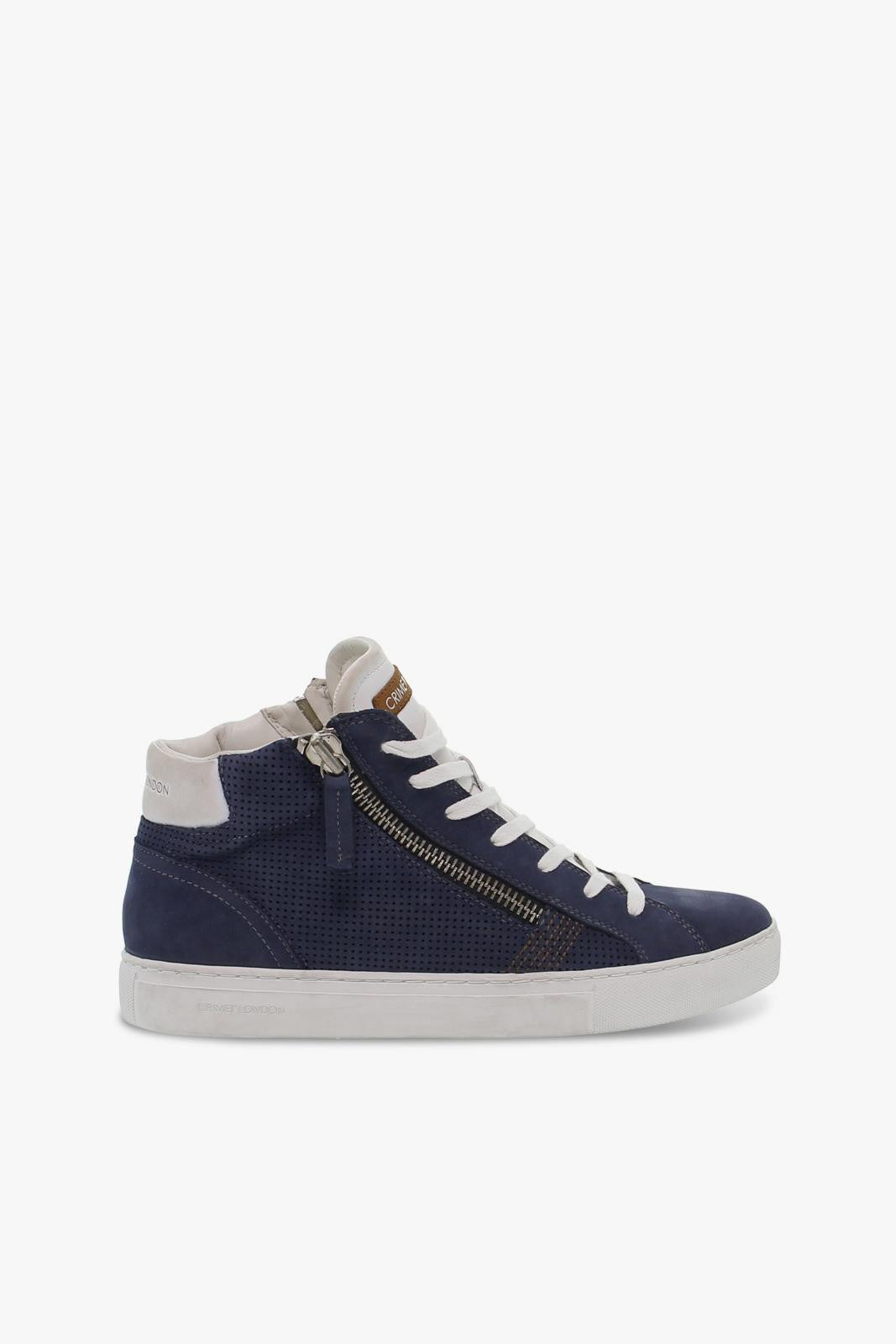 crime london Sneakers HIGH TOP DOUBLE ZIP in pelle e nabuk blu e bianco Uomo Sneakers