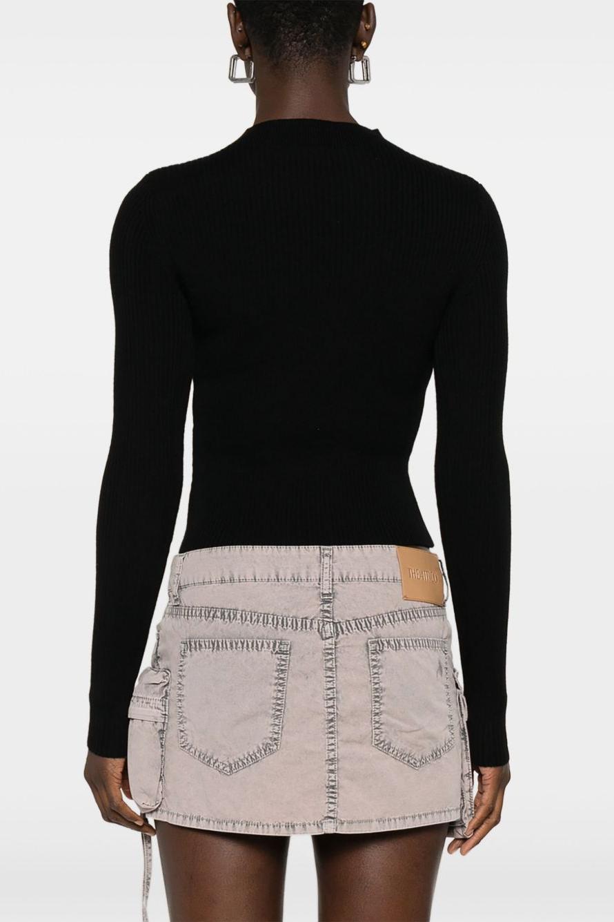 Proposto in nero, presenta scollo rotondo con apertura a goccia, tessuto a coste, maniche lunghe e un discreto dettaglio logo che rifinisce il design con un tocco distintivo. Perfetto per look day-to-night dal fascino contemporaneo firmato Diesel Made in Italy.