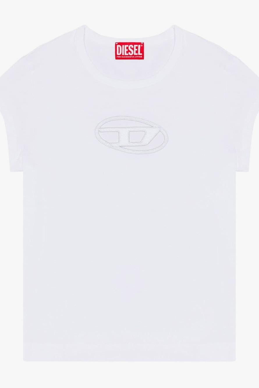 diesel T-Shirt Bianco Donna Crop Logo Cut Out