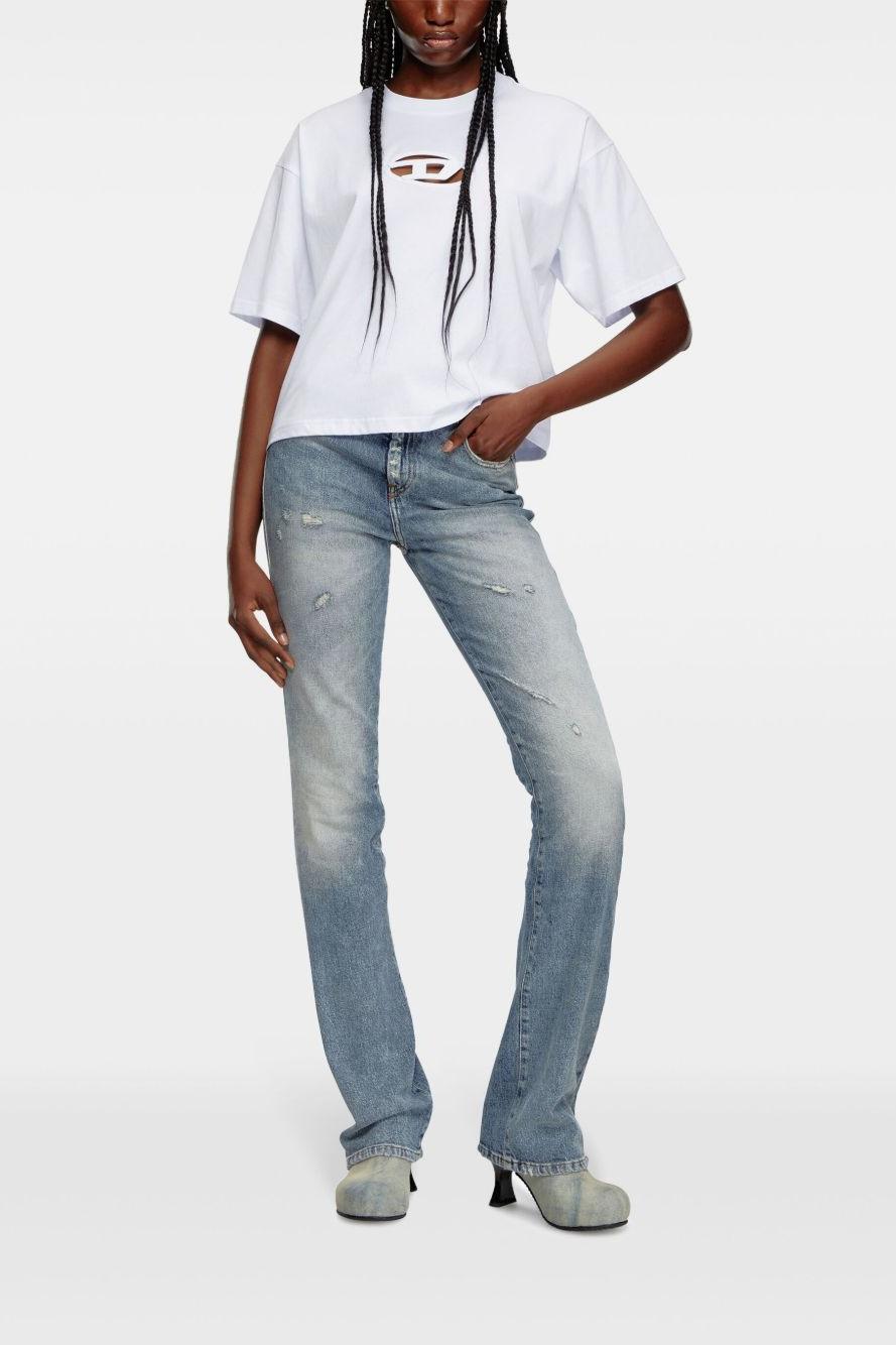 diesel T-Shirt Bianco Donna Logo Cut Out Maniche Larghe