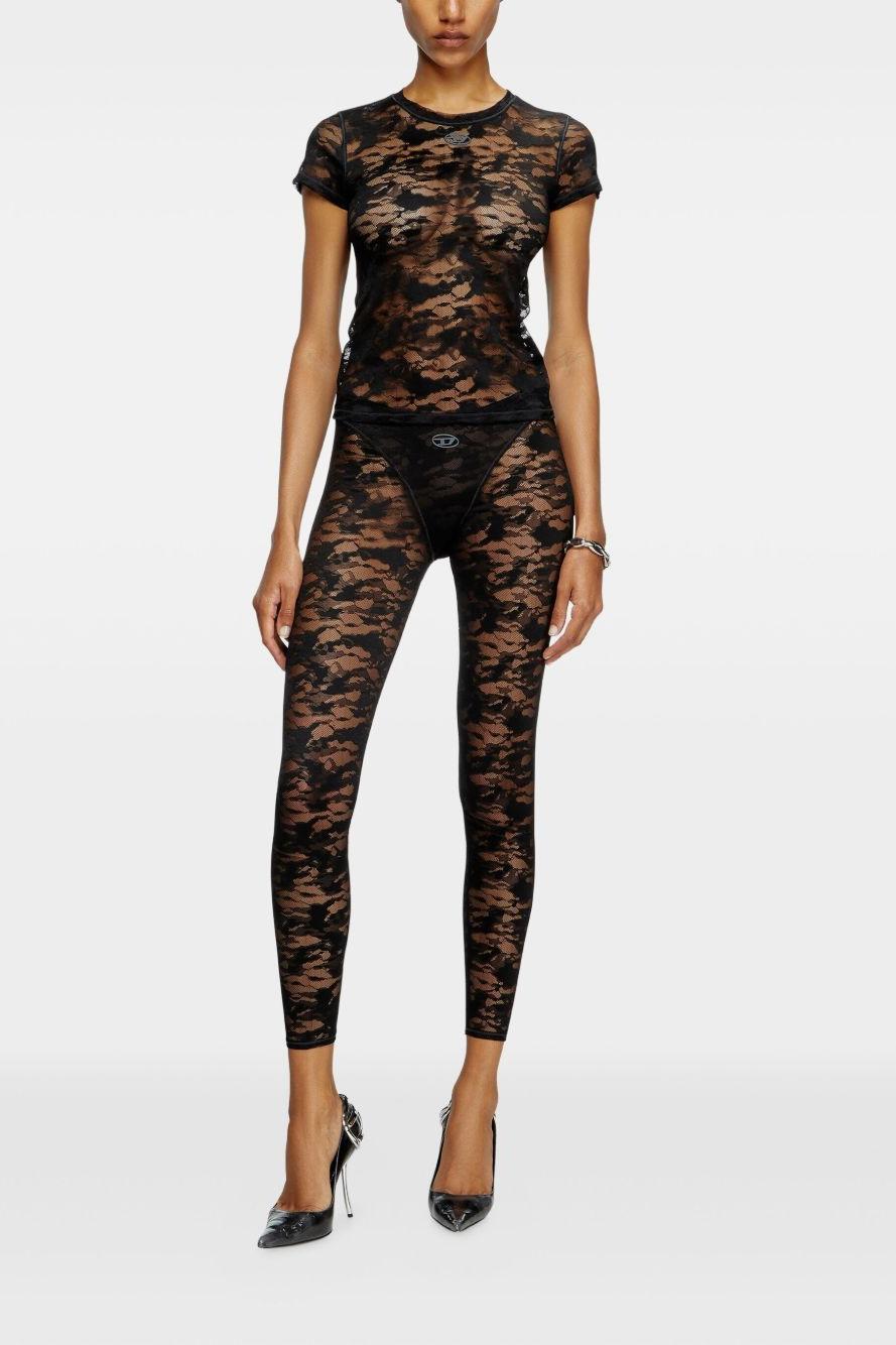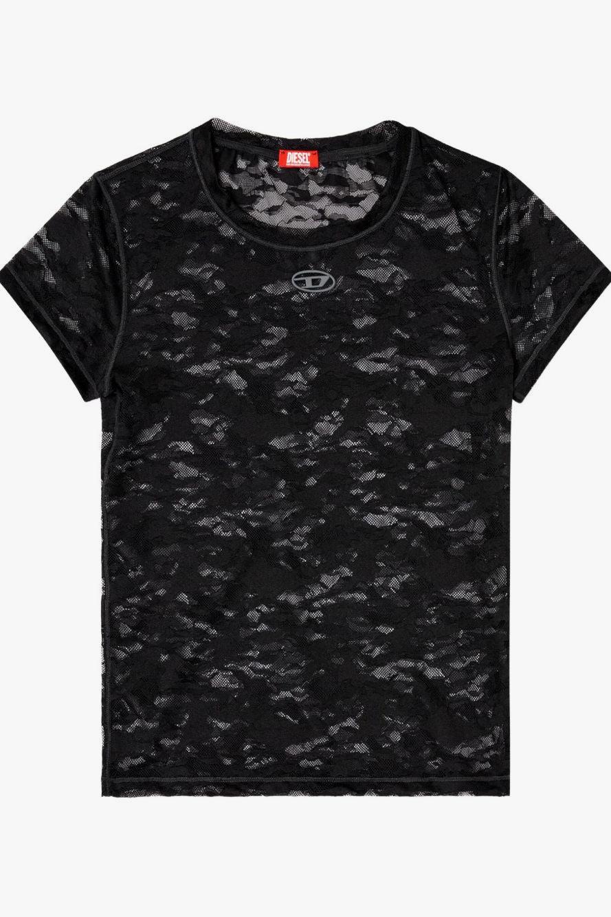 diesel T-Shirt Nero Donna Ricamo Pizzo