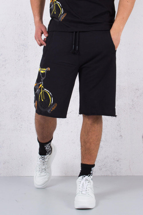 disclaimer Bermuda Felpa Stampa Bici Nero