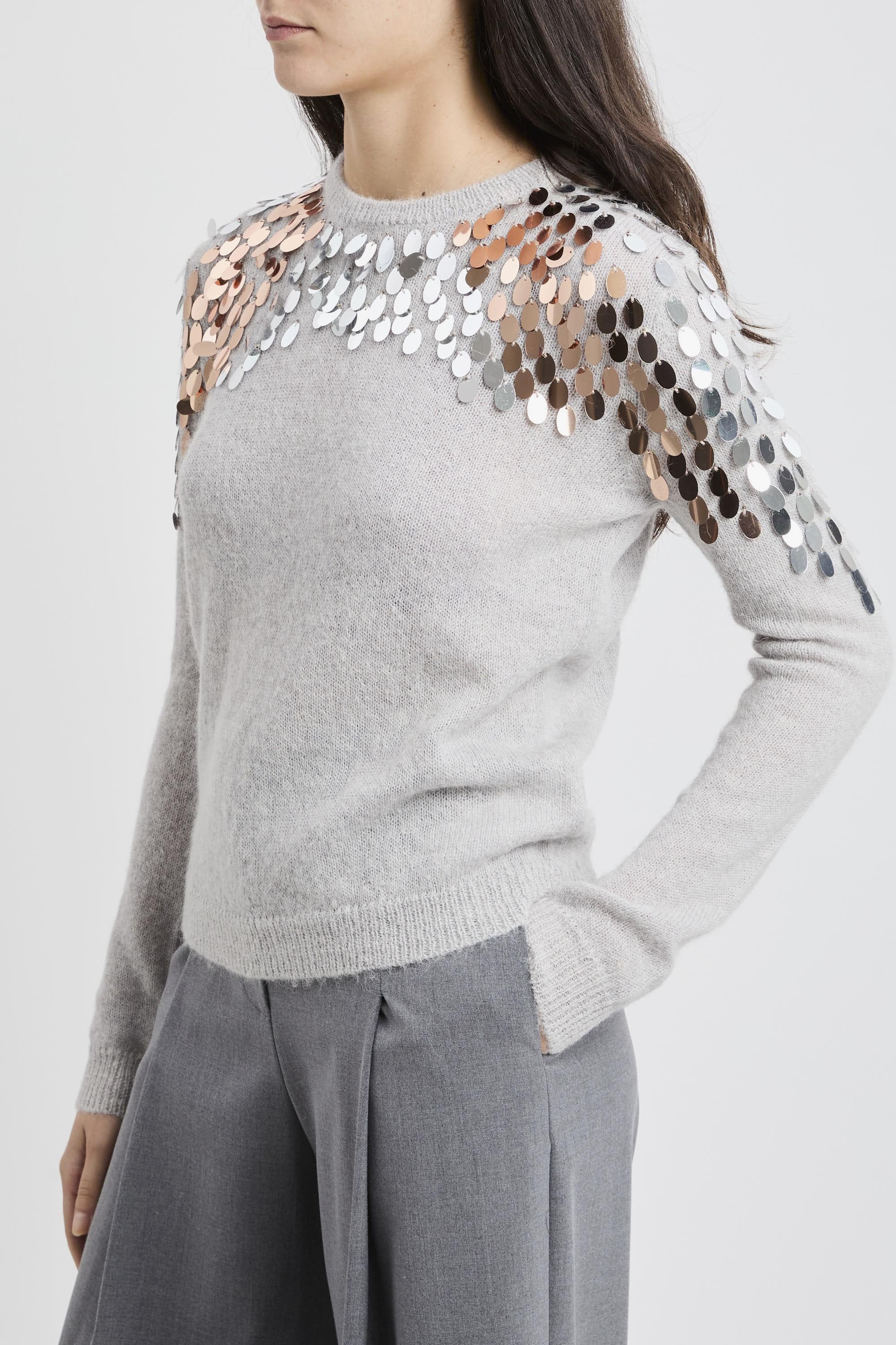 Perfetto per chi ama aggiungere un tocco luminoso e sofisticato al proprio guardaroba, questo pullover di Dixie è caratterizzato da un design elegante e ricercato. Le paillettes distribuite sulla superficie conferiscono un effetto chic-festivo, ideale per serate speciali o per dare un tocco di brillantezza a un look da giorno.Con le maniche lunghe e il taglio classico, si presta ad essere un capo di tendenza che resta facile da abbinare: indossalo con una gonna in ecopelle e stivaletti per un outfit deciso, oppure con jeans a gamba larga e blazer per un equilibrio perfetto tra casual e elegante.Dettagli chiave:# Finitura con paillettes che cattura la luce.# Maniche lunghe per una struttura equilibrata.# Design versatile: adatto tanto a look da sera quanto a outfit più curati.# Materiali e taglio pensati per combinare glamour e comfort.