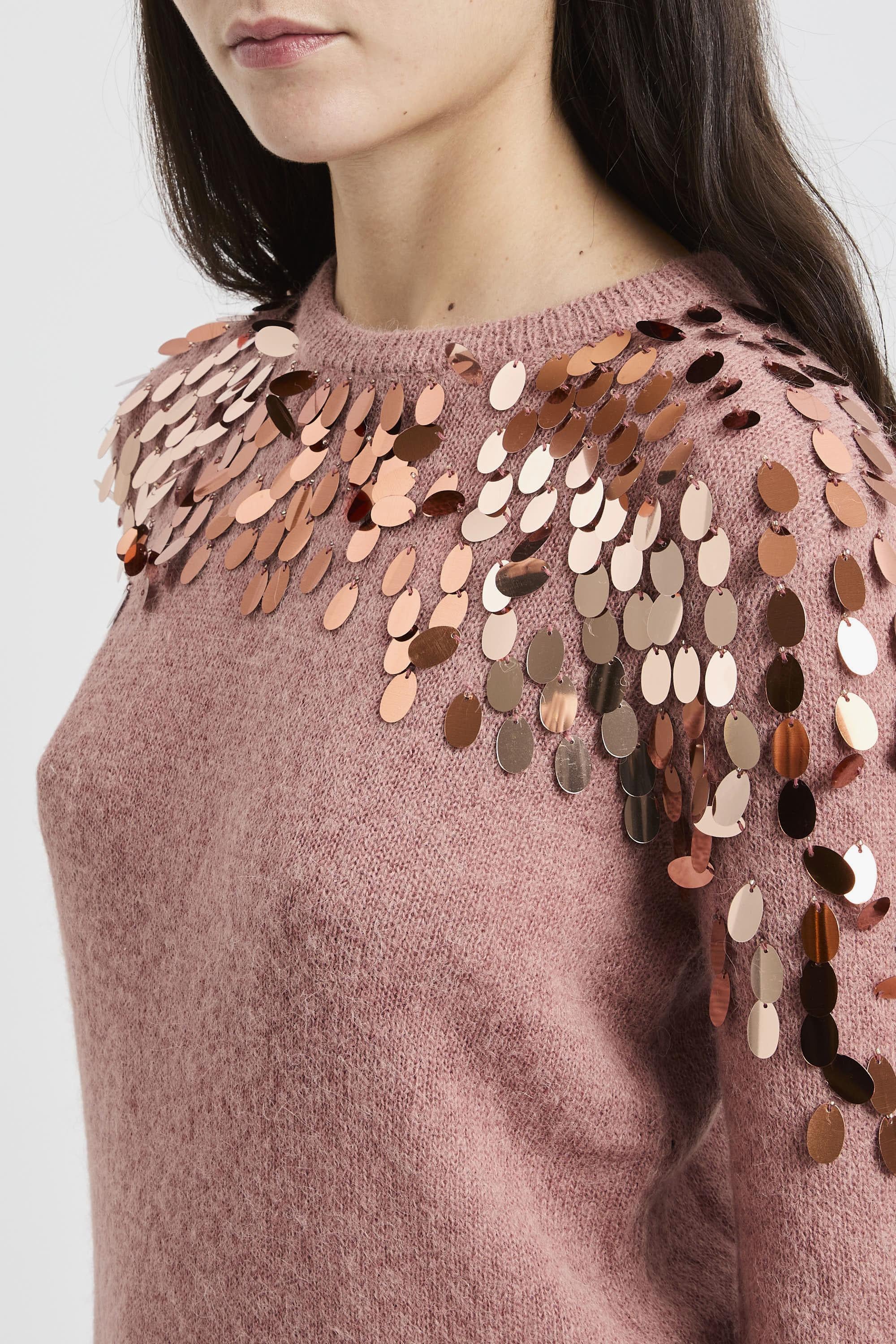 Perfetto per chi ama aggiungere un tocco luminoso e sofisticato al proprio guardaroba, questo pullover di Dixie è caratterizzato da un design elegante e ricercato. Le paillettes distribuite sulla superficie conferiscono un effetto chic-festivo, ideale per serate speciali o per dare un tocco di brillantezza a un look da giorno.Con le maniche lunghe e il taglio classico, si presta ad essere un capo di tendenza che resta facile da abbinare: indossalo con una gonna in ecopelle e stivaletti per un outfit deciso, oppure con jeans a gamba larga e blazer per un equilibrio perfetto tra casual e elegante.Dettagli chiave:# Finitura con paillettes che cattura la luce.# Maniche lunghe per una struttura equilibrata.# Design versatile: adatto tanto a look da sera quanto a outfit più curati.# Materiali e taglio pensati per combinare glamour e comfort.