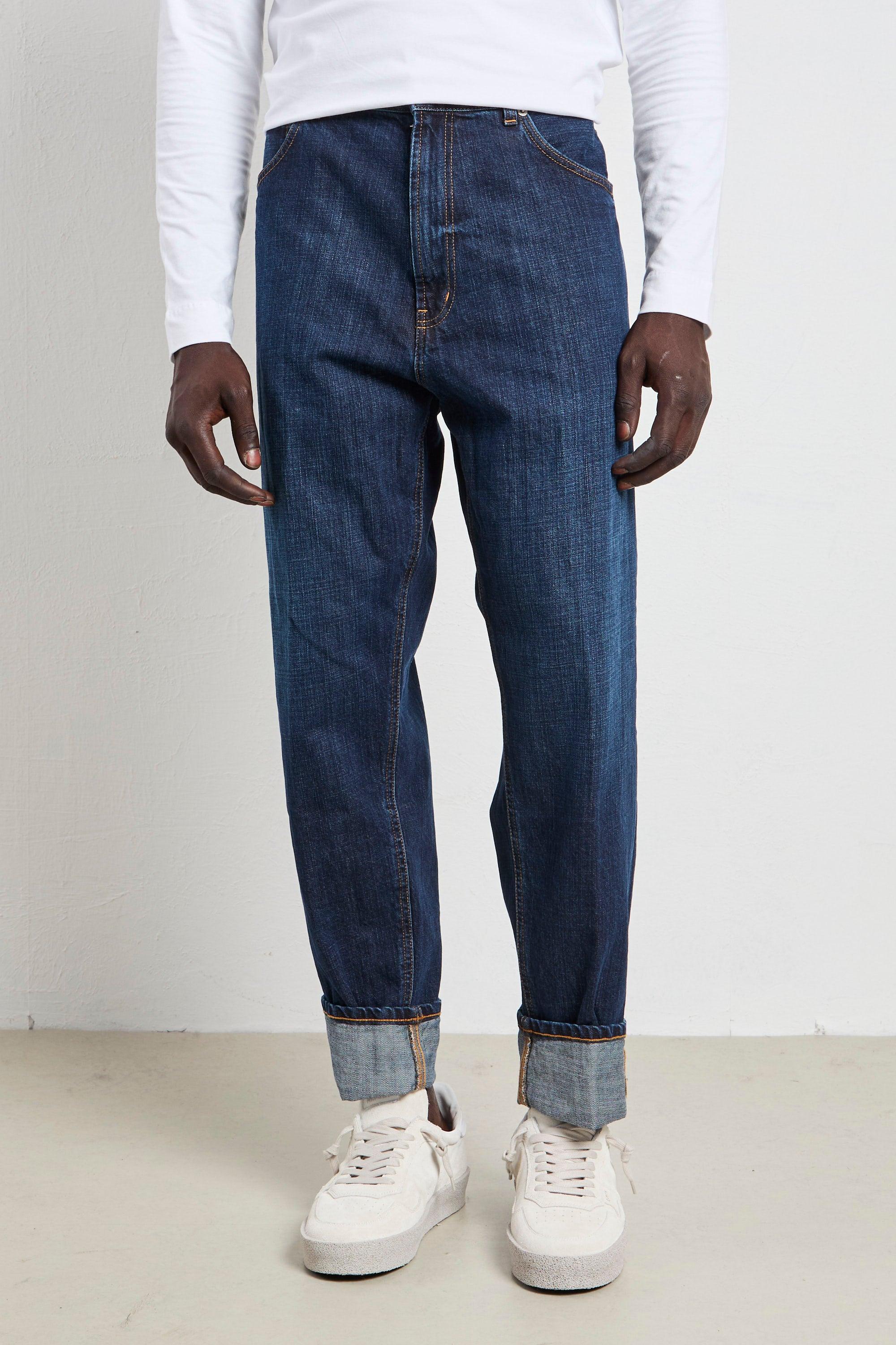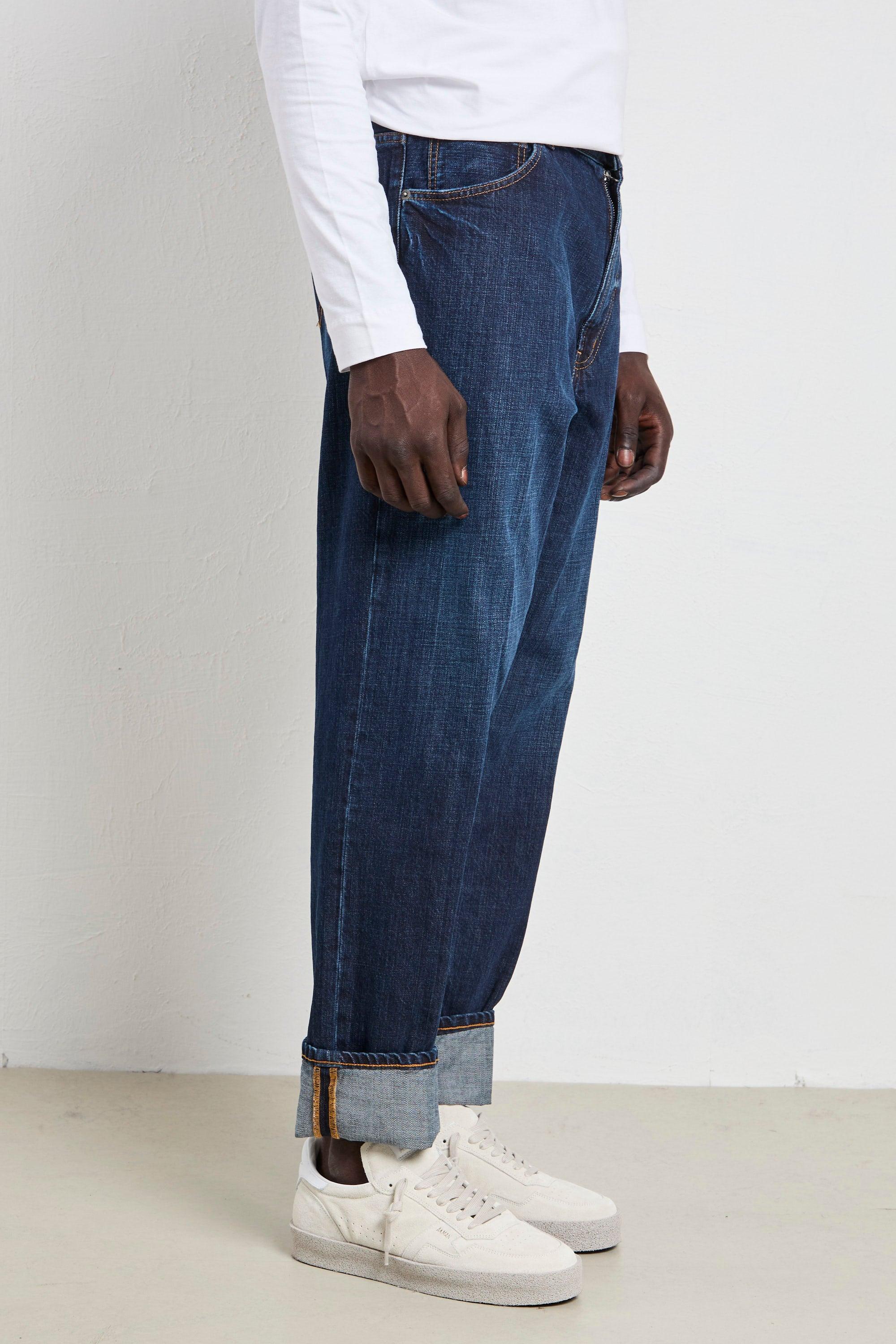 Dettagli Modello: Paco Vestibilità: loose fit Vita: regolare Composizione: 100 % cotone Tasche: cinque tasche standard Fondo: gamba diritta, ampiezza generosa Taglia indossata: 34 Tipo di chiusura: zip con bottone frontale Lavaggio: scuro Made in: Italia