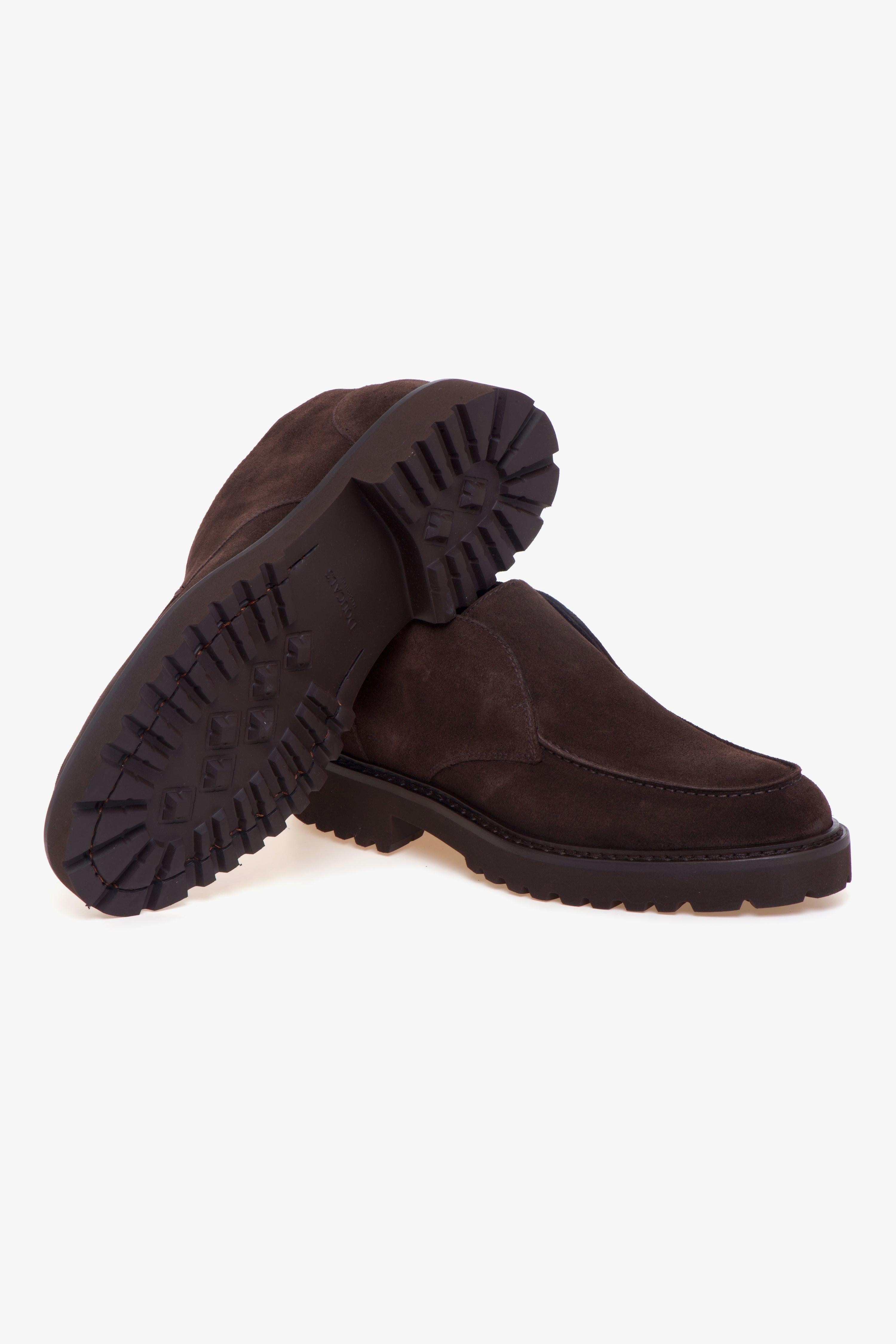 Linee pulite e materiali morbidi definiscono questo polacco Doucal’s in camoscio, pensato per uno stile trasversale. La forma richiama il mocassino ma con tomaia che sale alla caviglia, per un equilibrio riuscito tra eleganza disinvolta e praticità quotidiana. La suola carrarmato in gomma extralight, leggera e flessibile, garantisce stabilità e comfort dal mattino alla sera, mentre fodera e sottopiede in pelle assicurano traspirabilità e una calzata piacevole. Il risultato è una calzatura versatile e facile da abbinare, perfetta in città e nei contesti informali curati.Consigli di stile:Abbinalo a pantaloni in lana dritti, maglia in merino e cappotto monopetto per un look sobrio e ordinato, ideale tra ufficio e tempo libero.In alternativa indossalo con jeans straight fit o chino cropped, t-shirt minimal e overshirt in panno: mix contemporaneo, pulito e rilassato.Caratteristiche principali:# Tomaia in camoscio.# Design ispirato al mocassino con tomaia alla caviglia.# Suola in gomma carrarmato extralight, leggera e flessibile.# Fodera in pelle.# Sottopiede in pelle.# Made in Italy