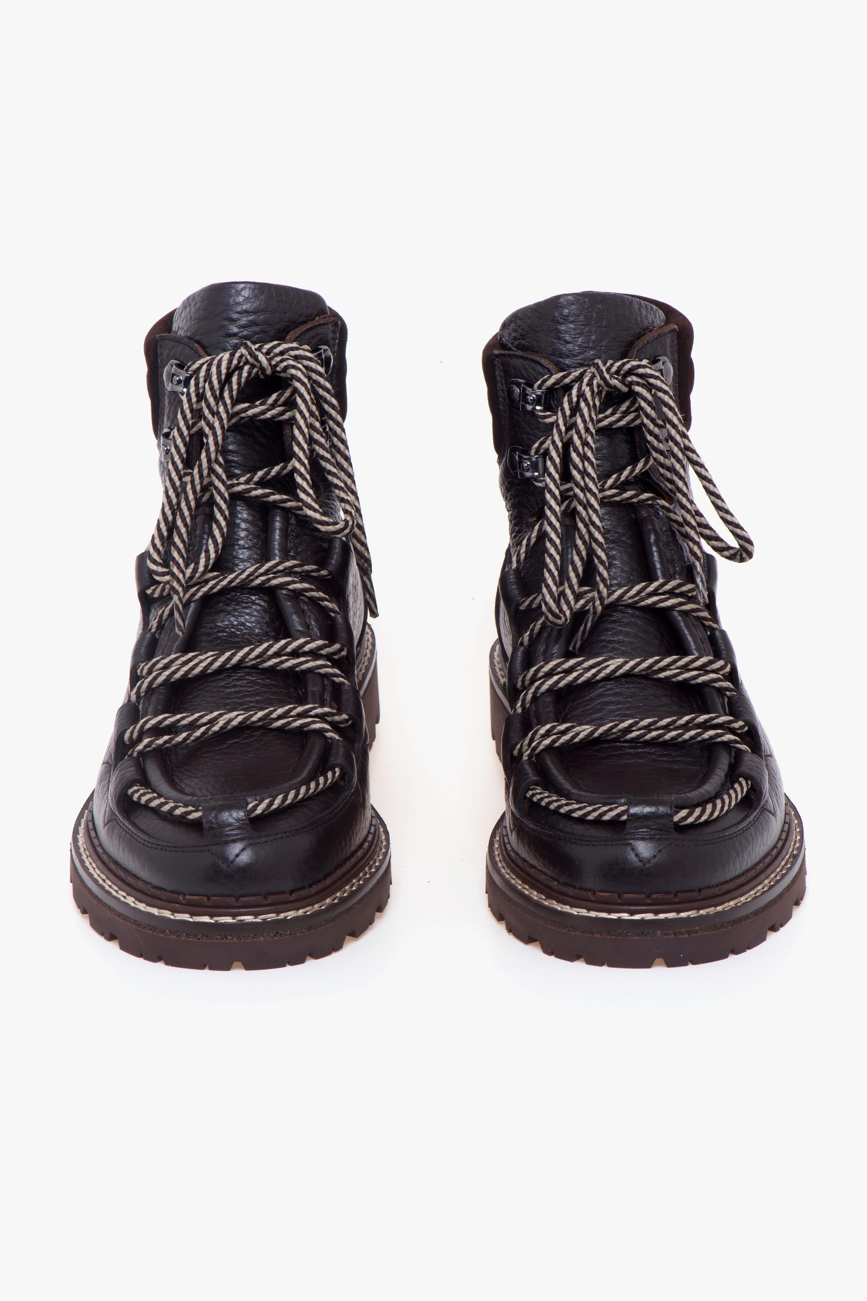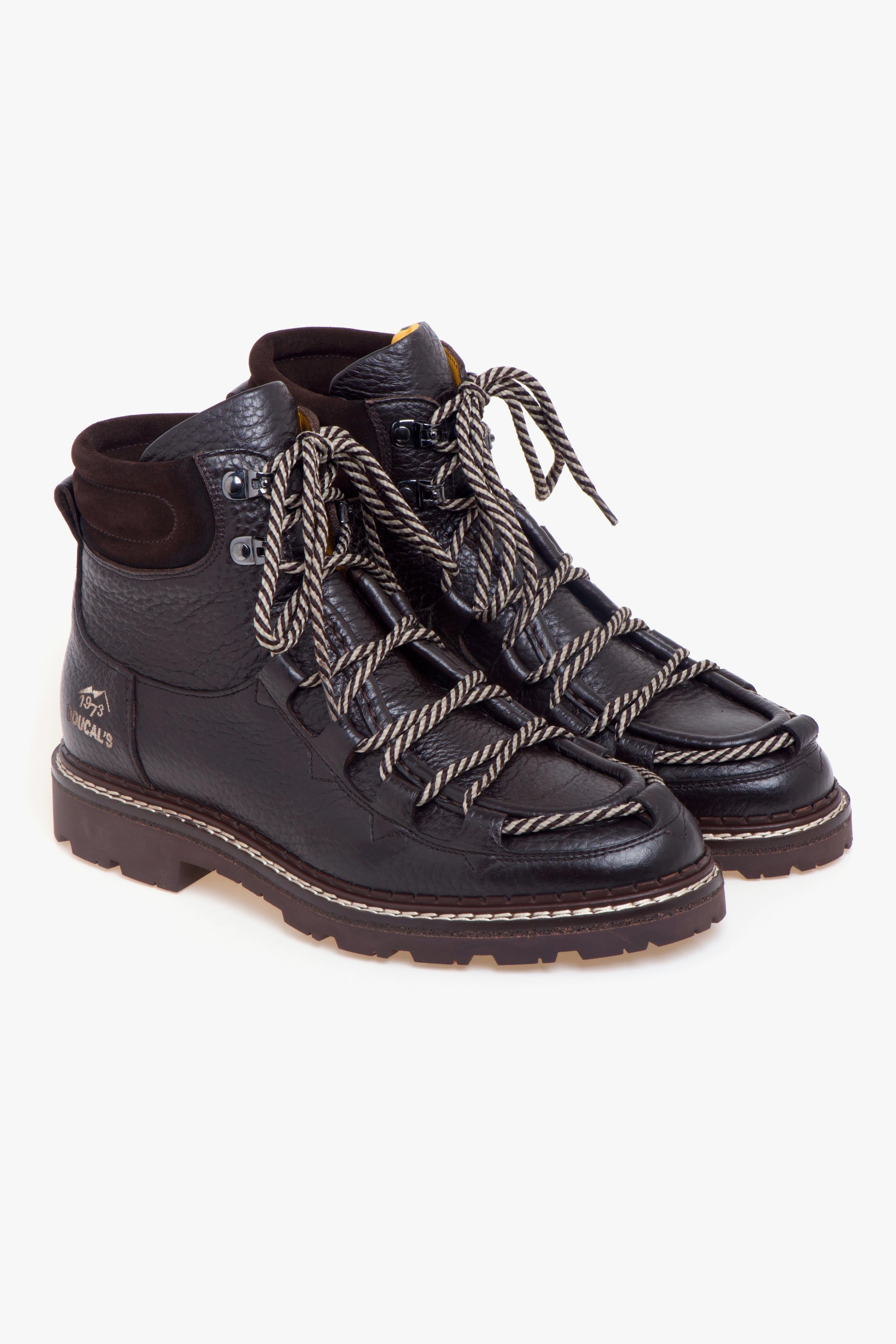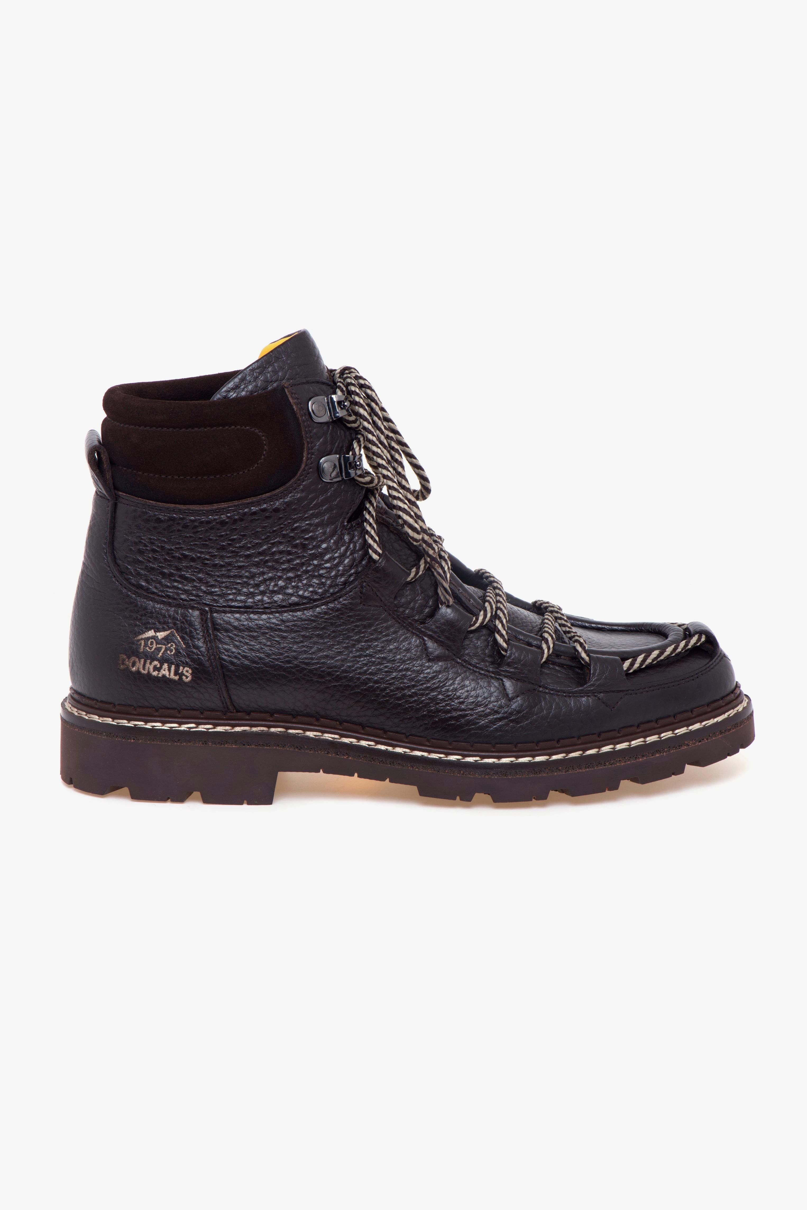 Prestazioni tecniche e stile artigianale si incontrano nel polacco stile norvegese Doucal’s Ice Club Belvedere, realizzato in occasione delle Olimpiadi di Cortina 2026. Questo modello nasce per offrire comfort ottimale e sicurezza di passo anche in condizioni di freddo intenso e su terreni a basso grip, unendo l’eccellenza manifatturiera italiana alle tecnologie più avanzate.La tomaia in morbida pelle di cervo garantisce resistenza e flessibilità, mentre la suola Vibram Artic Grip All Terrain con inserto in Thermo-Reactive Rubber assicura trazione ottimale e contribuisce a mantenere una temperatura equilibrata del piede. I dettagli distintivi, come la doppia cucitura in colore a contrasto e i lacci bicolore a spirale black & white, aggiungono carattere senza tempo. Completano il design il logo Doucal’s 1973 ricamato sul lato e la fodera interamente in pelle per un comfort prolungato.Consigli di stile:Perfetto con pantaloni in flanella, maglione a collo alto e parka tecnico, per un look elegante ma funzionale in città o in montagna.In alternativa, ideale con pantaloni cargo tapered, pile tecnico e piumino corto, per un outfit urban-outdoor di tendenza.Caratteristiche principali:#Tomaia in pelle di cervo.# Suola Vibram Arctic Grip All Terrain con inserto Thermo-Reactive Rubber.# Logo Doucal’s 1973 ricamato sul lato.# Doppia cucitura in colore a contrasto.# Lacci bicolore a spirale black & white.# Fodera in pelle.# Sottopiede in pelle.# Made in Italy.