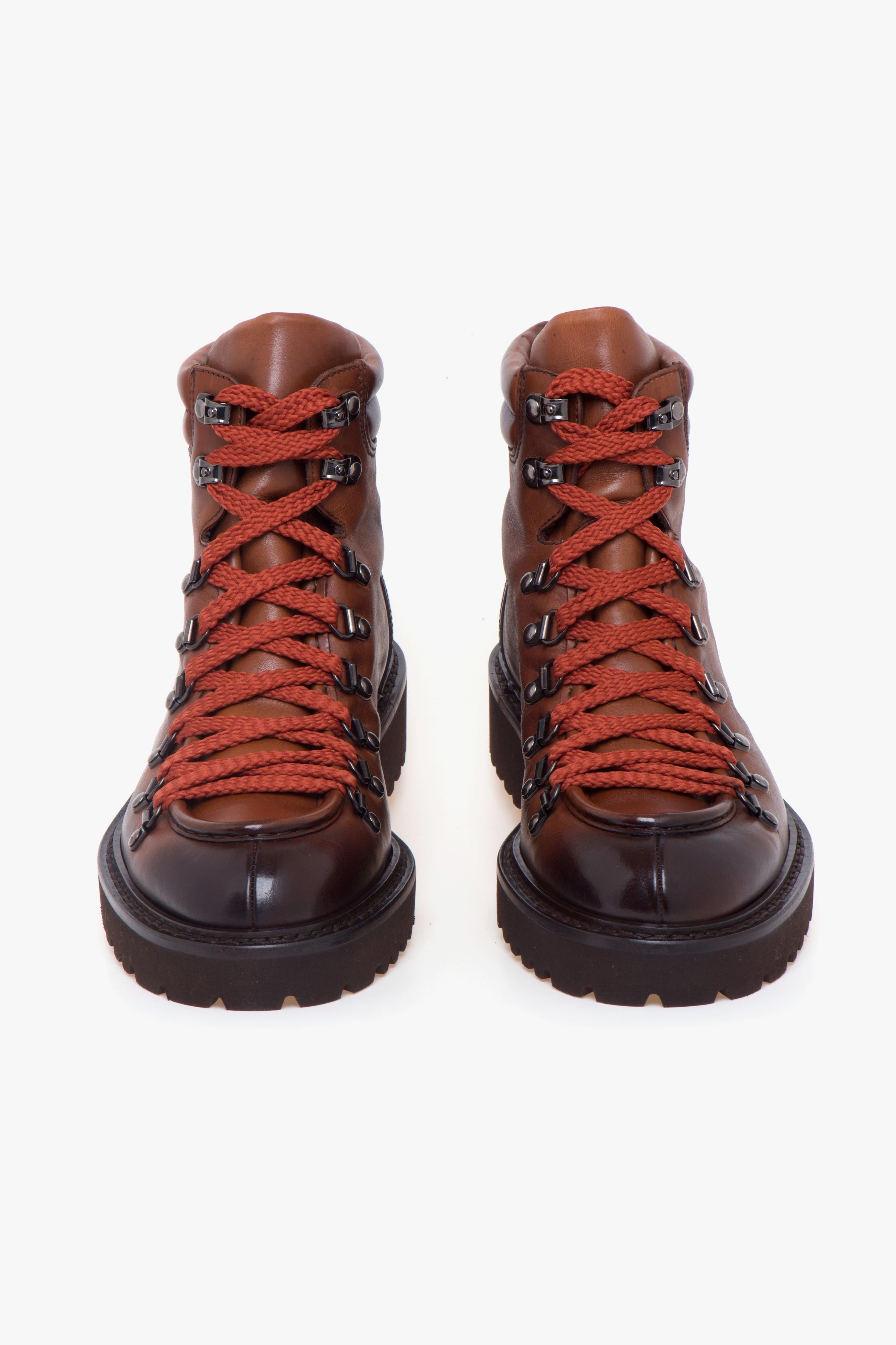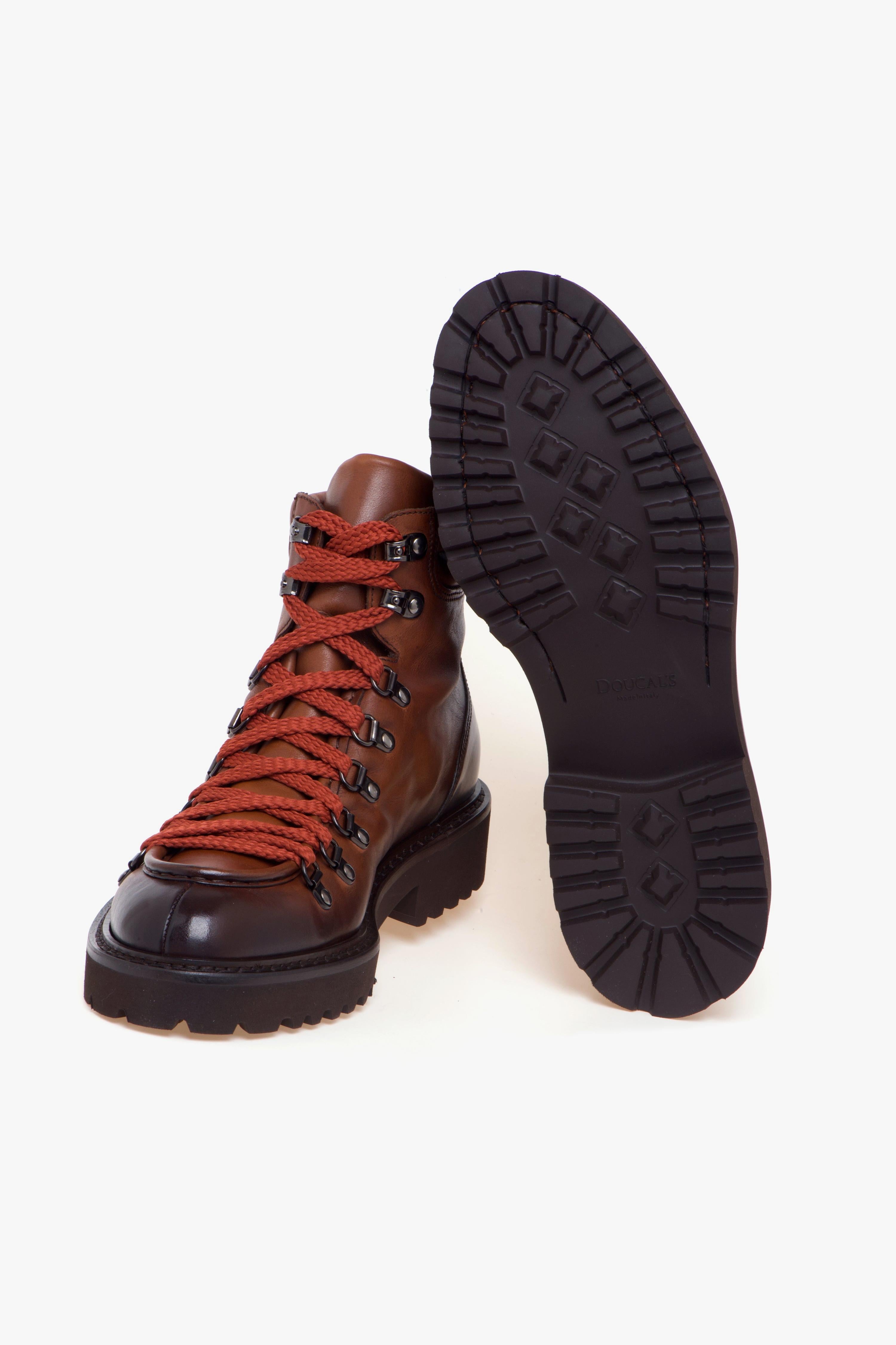 Il polacco stile norvegese Doucal’s, realizzato in pelle anticata, esprime un fascino autentico grazie alle sue sfumature naturali che rendono ogni paio unico. La tomaia è impreziosita dall’allacciatura con ganci in metallo fumé e lacci in cotone color mattone, per un tocco di personalità distintivo.La suola in gomma extralight a carrarmato assicura leggerezza, flessibilità e un grip ottimale, mentre la fodera e il sottopiede in pelle garantiscono traspirabilità e comfort anche nelle lunghe giornate. Inclusi nella confezione, un secondo paio di lacci cerati tondi color testa di moro per un’alternativa più classica.Un modello versatile, capace di coniugare tradizione e contemporaneità, ideale per chi cerca una calzatura di qualità, comoda e dal look deciso.Caratteristiche principali:# Tomaia in pelle anticata.# Allacciatura con ganci in metallo fumé.# Lacci in cotone color mattone.# Secondo paio di lacci cerati tondi color testa di moro incluso.# Suola in gomma extralight a carrarmato.# Fodera e sottopiede in pelle.# Made in ItalyConsigli di stile:Perfetti con pantaloni in lana dal taglio asciutto e maglione dolcevita in cashmere sotto un cappotto monopetto. Un abbinamento che unisce eleganza e praticità nelle giornate dinamiche.