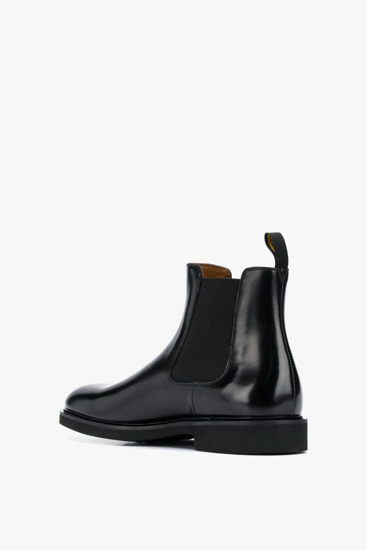 Proposti in nero, presentano una punta smussata, pannelli elastici laterali e linguetta sul tallone per una calzata comoda e pratica. La soletta con logo riflette l’attenzione al dettaglio tipica del brand, mentre la suola in gomma assicura stabilità e durata nel tempo.
