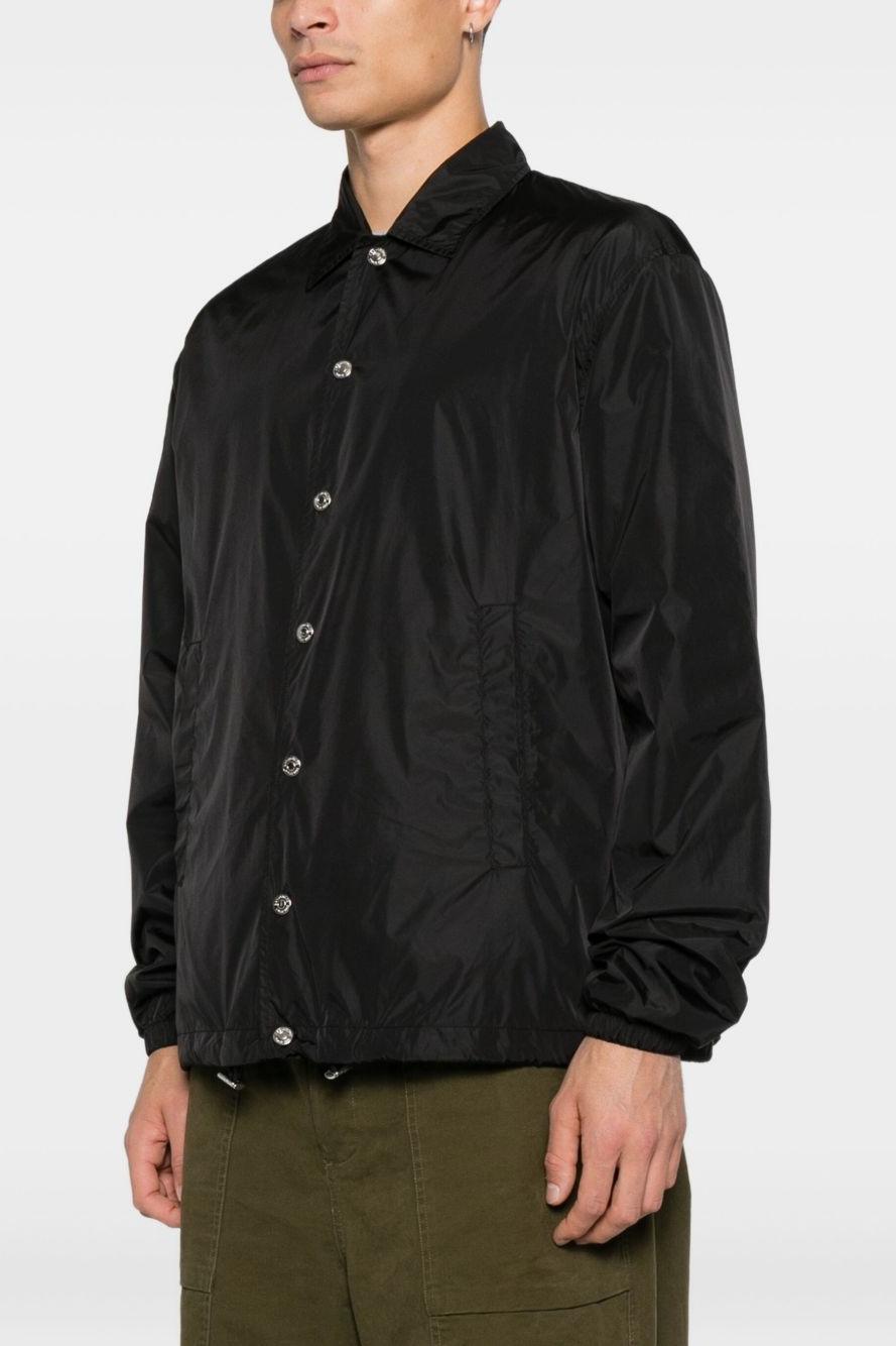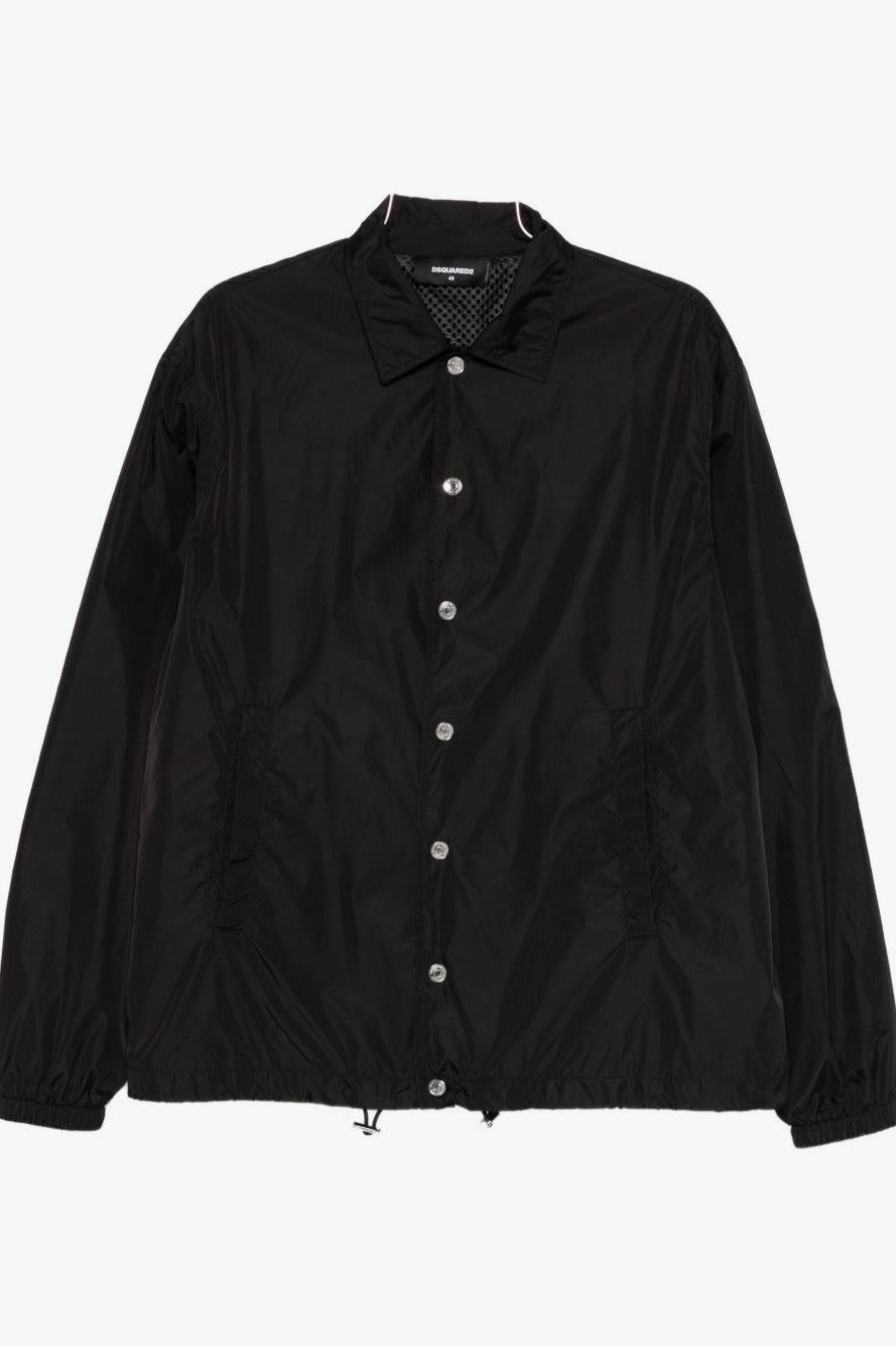 Proposta nel colore nero, presenta una pratica chiusura con abbottonatura a pressione, un elegante colletto a punta e maniche lunghe rifinite da orli elasticizzati che garantiscono comodità e una migliore aderenza. L’orlo con coulisse aggiunge funzionalità e permette di personalizzare la vestibilità, completando un capo versatile e moderno.