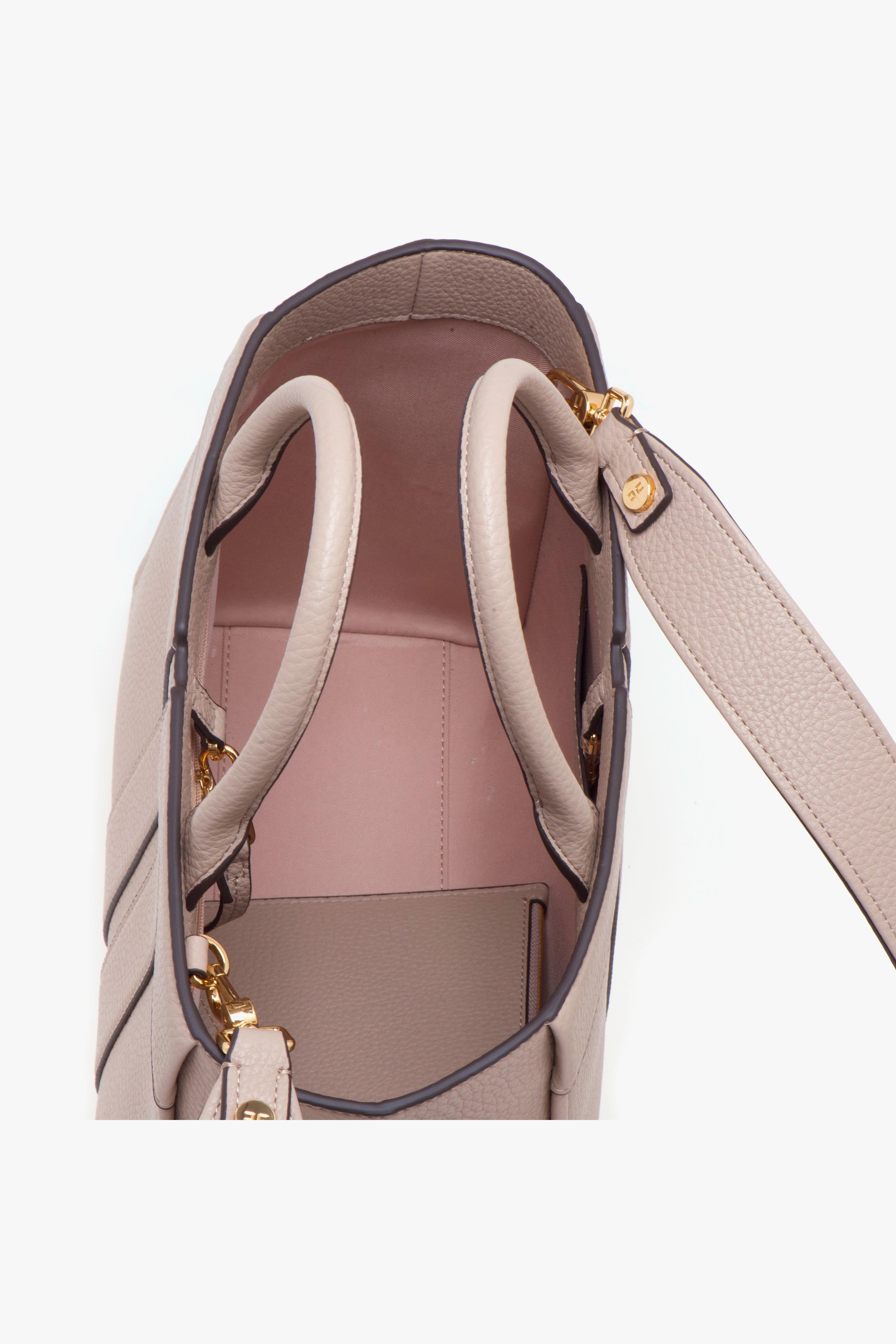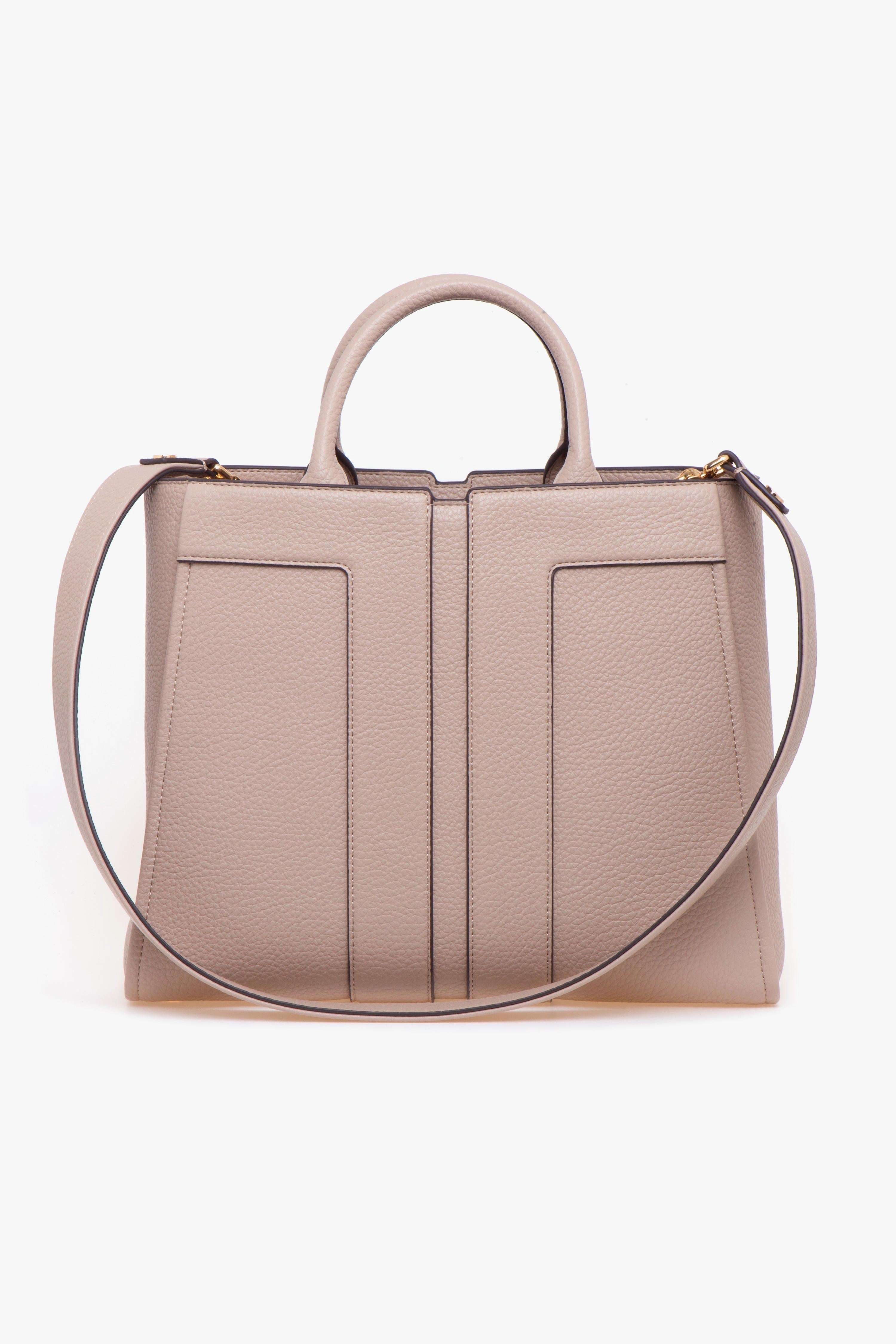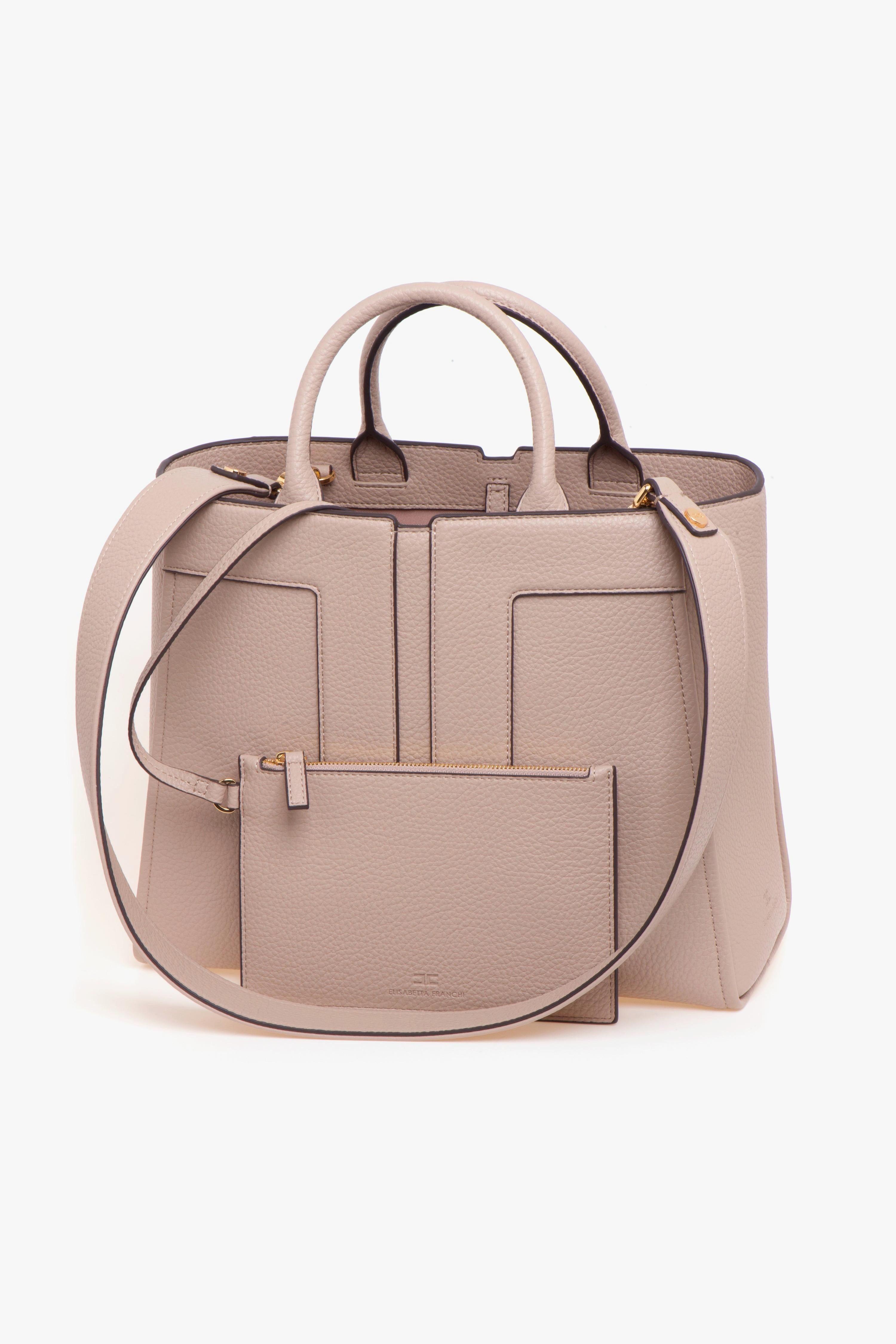 La borsa tote grande Elisabetta Franchi è la scelta ideale per chi cerca un accessorio che unisca praticità e stile in ogni occasione. Realizzata in materiale sintetico con effetto pelle martellata, questa borsa si distingue per il suo design contemporaneo e il maxi logo in rilievo che ne enfatizza l'esclusività. Con dimensioni generose di 34 x 16 x 27 cm, offre uno spazio interno ampio e ben organizzato, caratterizzato da un unico scomparto dotato di una tasca di servizio con zip, perfetta per tenere in ordine gli oggetti essenziali. La presenza di una pochette removibile in coordinato consente di riporre in sicurezza gli oggetti più importanti, aumentando ulteriormente la funzionalità della borsa.La tote è dotata di un manico per la portata a mano e di una tracolla removibile, permettendo diverse modalità di utilizzo per adattarsi a ogni situazione. La fodera interna in tessuto garantisce un tocco di eleganza e cura nei dettagli.Per un abbinamento di stile, si consiglia di indossare la borsa con un completo casual composto da pantaloni palazzo e una blusa leggera. Questo look non solo esalta la borsa, ma crea anche un’armonia visiva perfetta per ogni occasione, dal lavoro al tempo libero. La borsa tote grande Elisabetta Franchi è un must-have per ogni donna che desidera esprimere la propria personalità con classe. # Fodera in tessuto. # Misure: 34 x 16 x 27 cm.# Tracolla removibile.