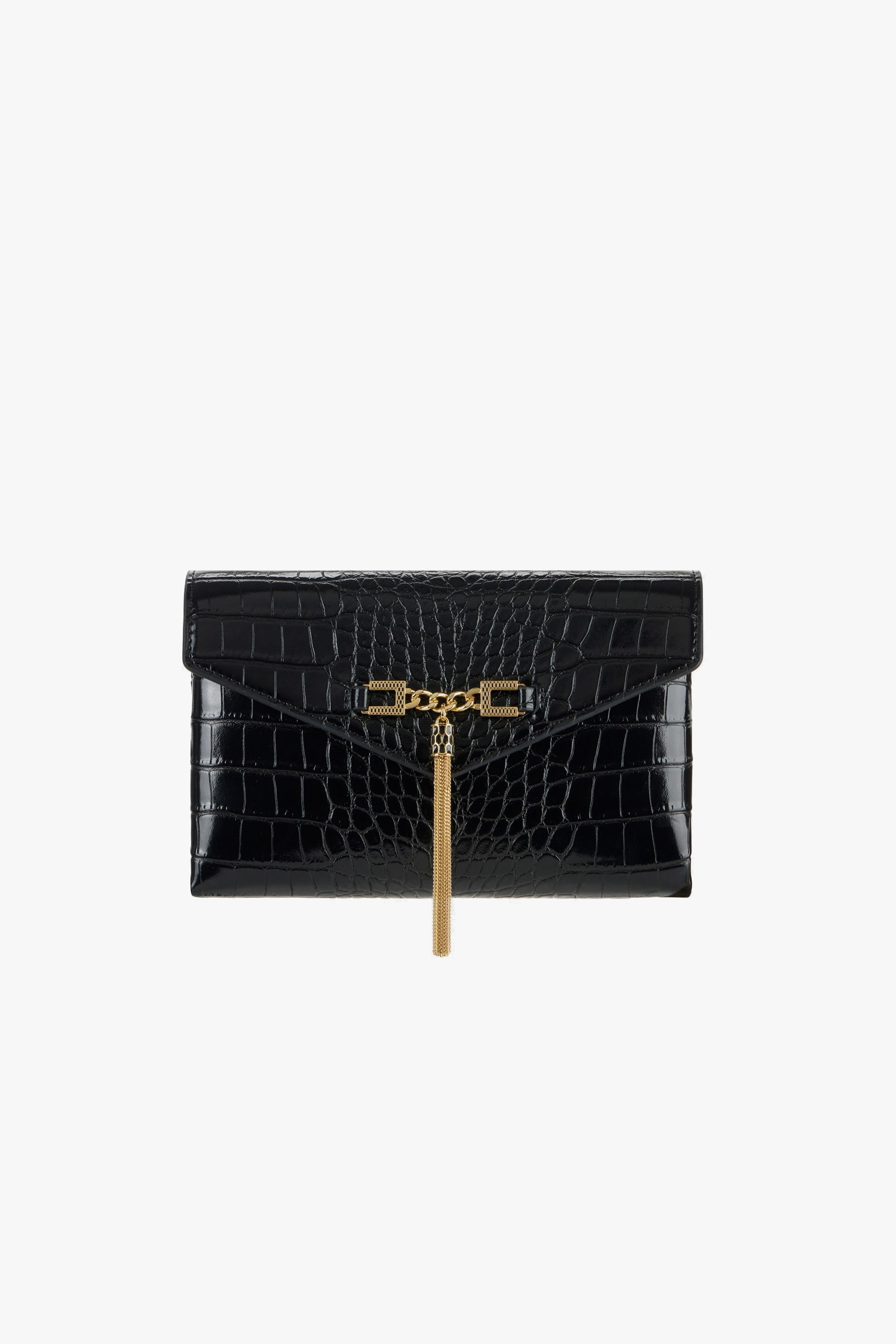 Questa tracolla con catena groumette di Elisabetta Franchi (codice BS56A57E2) esprime una femminilità decisa e raffinata. Realizzata in materiale effetto pelle con stampa cocco, si distingue per l'accessorio con nappina in metallo applicato davanti, dettaglio luminoso che impreziosisce il design compatto e contemporaneo. La chiusura con patta sottolinea la pulizia delle linee e un design che si ispira ad una busta, mentre le dimensioni ridotte (14 × 22 × 3,5 cm) la rendono ideale per le occasioni in cui servono eleganza e praticità. Un accessorio versatile, perfetto per aggiungere un tocco sofisticato ai look da giorno e da sera.Può essere portata a mano oppure a tracolla. Caratteristiche principali:# Materiale: 60% poliuretanica, 40% poliestere.# Dettagli: stampa cocco, catena Groumette dorata, logo Elisabetta Franchi.# Chiusura: con patta.# Dimensioni: 14 × 22 × 3,5 cm.# Stile: elegante e versatile, perfetta per look day-to-night.