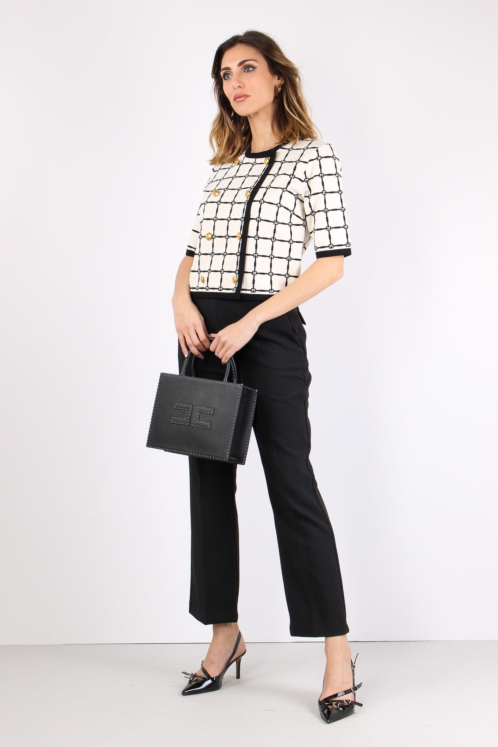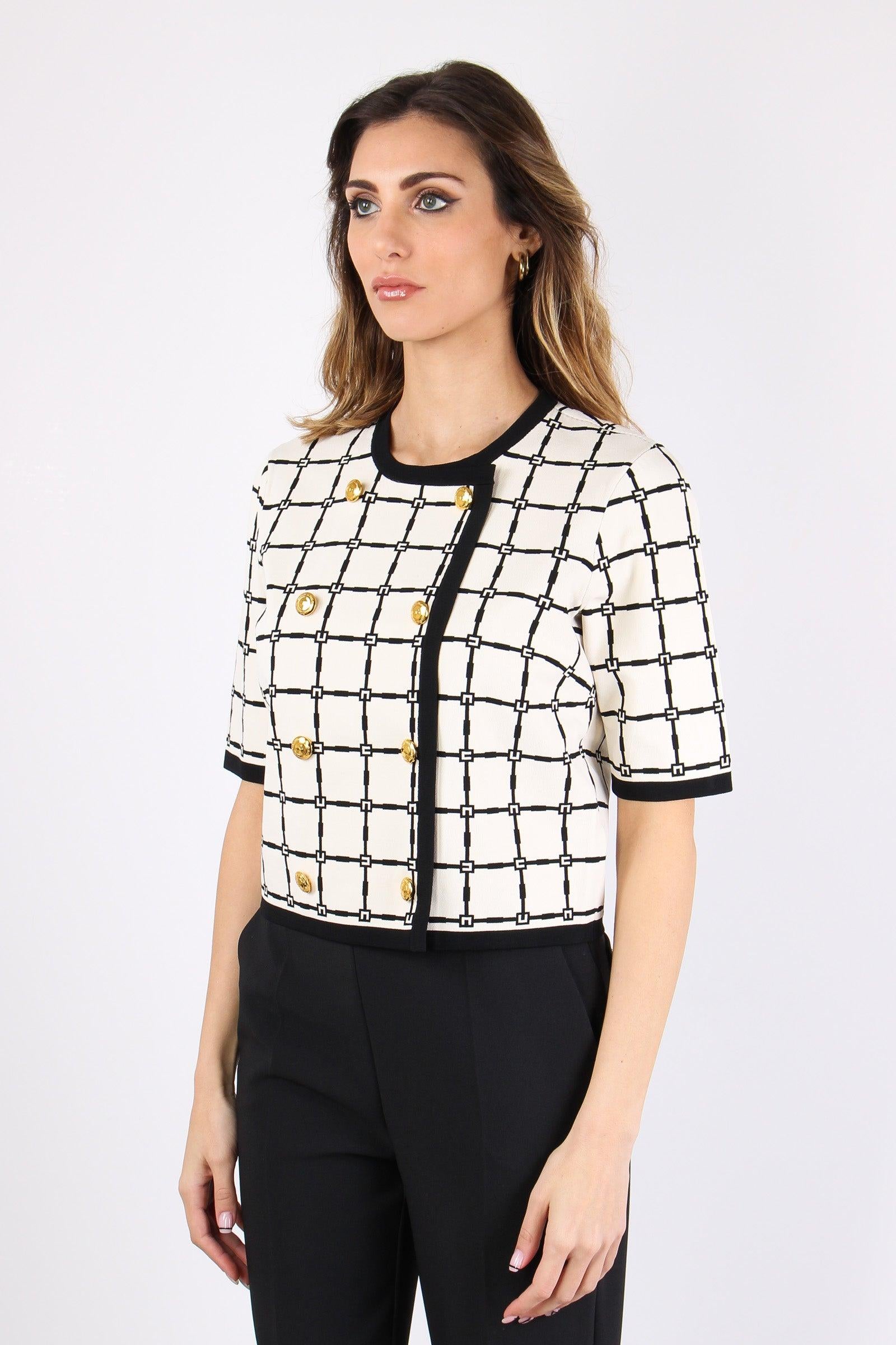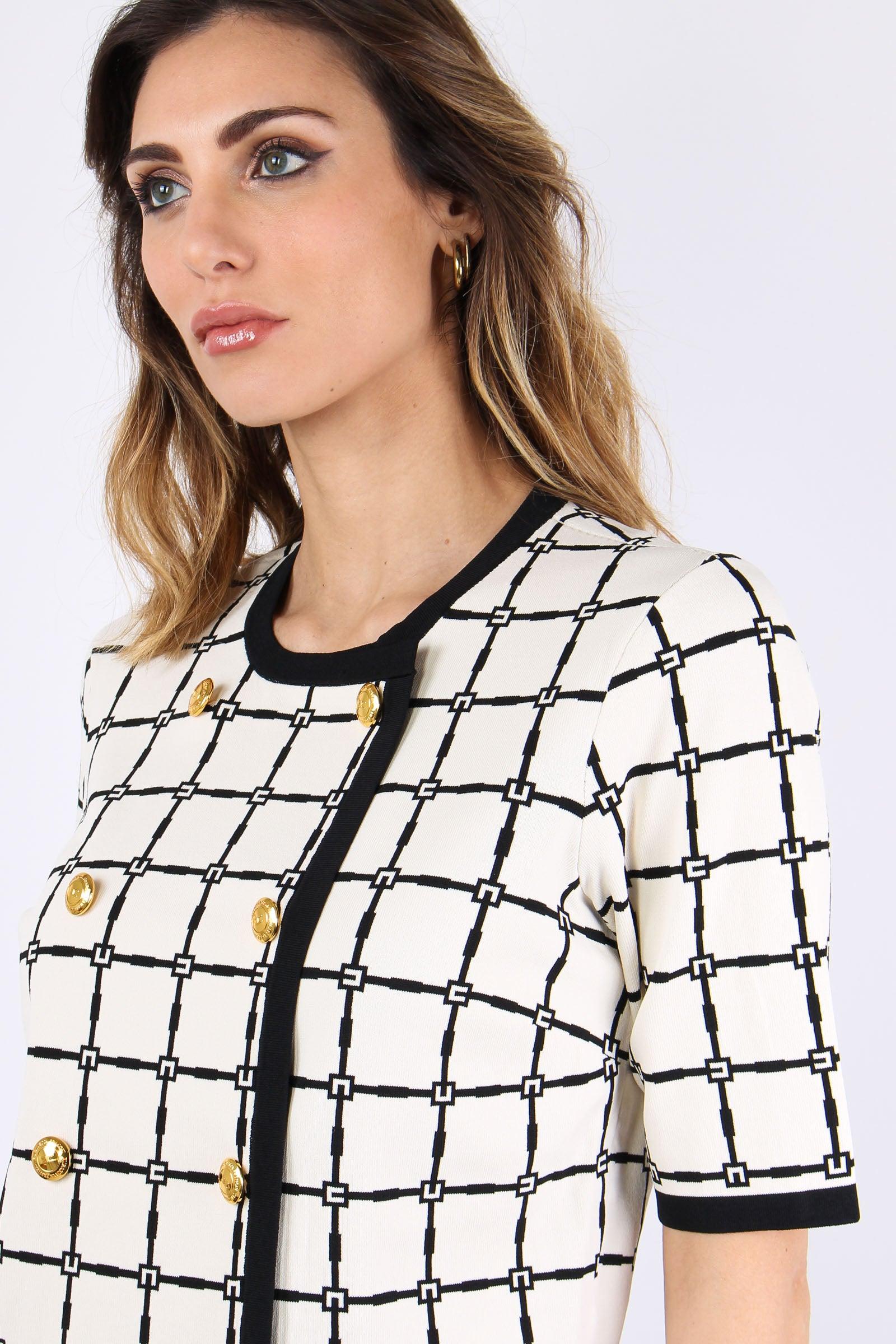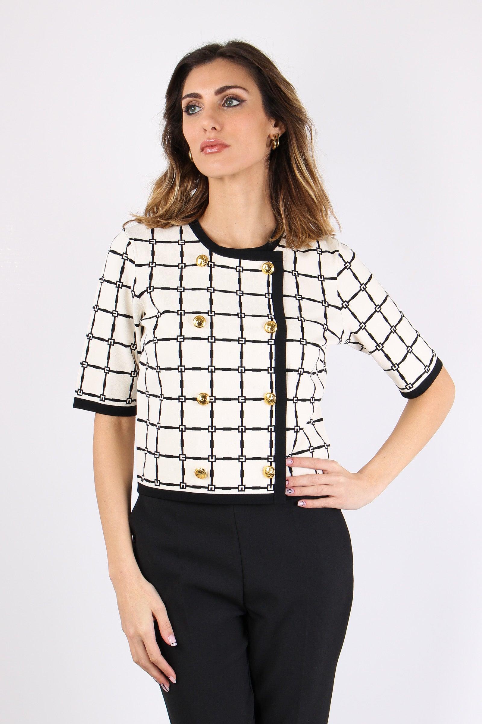 elisabetta franchi Maglia Logo Bottoni Oro Burro/nero