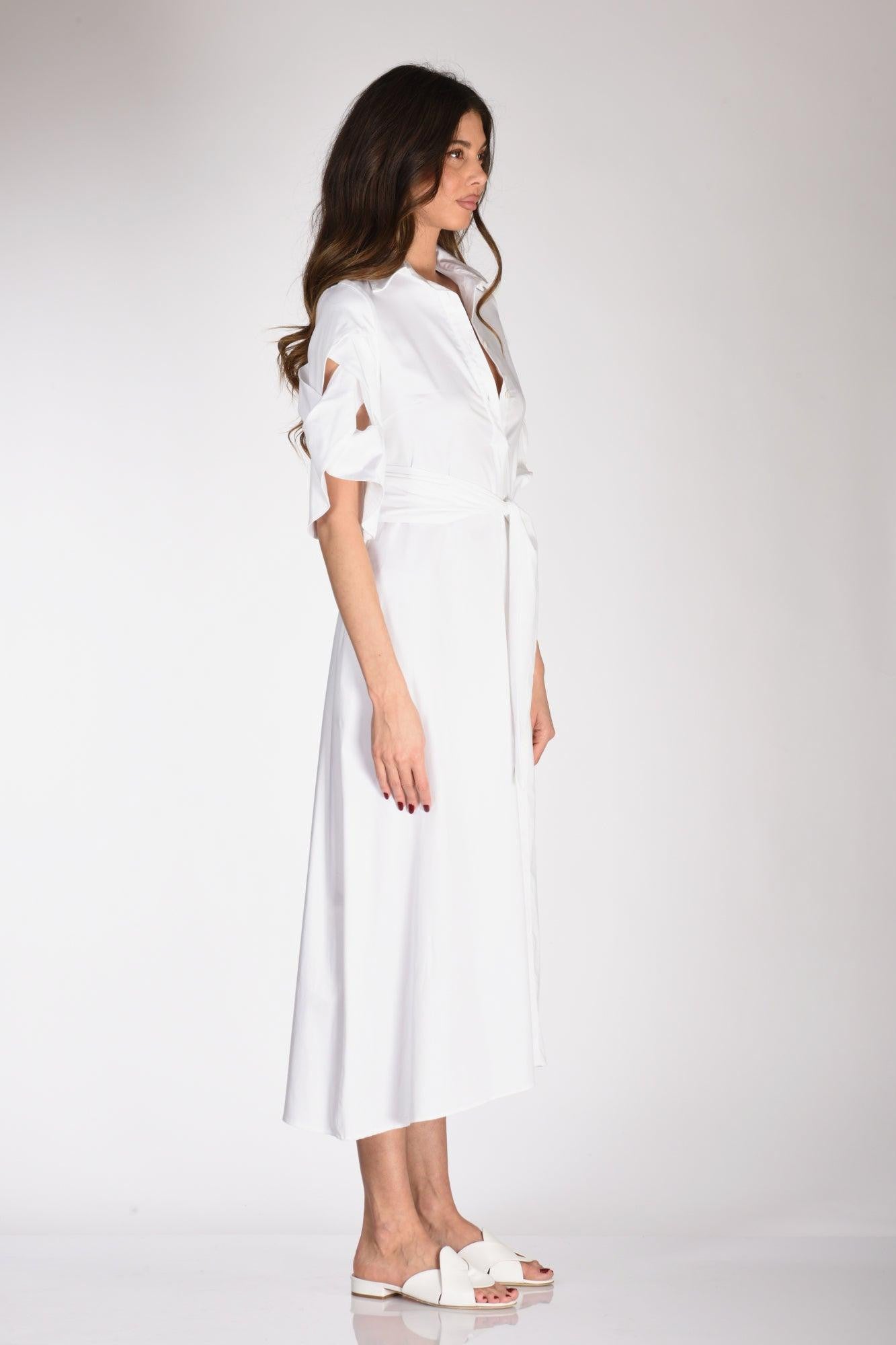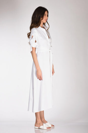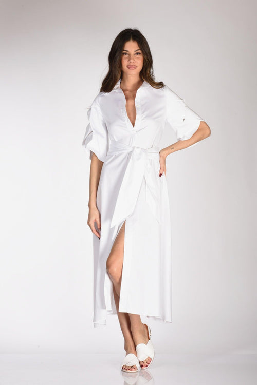 - La gonna svasata fluisce delicatamente lungo il corpo, terminando con un fondo spacco centrale frontale che aggiunge movimento e raffinatezza alla camminata.