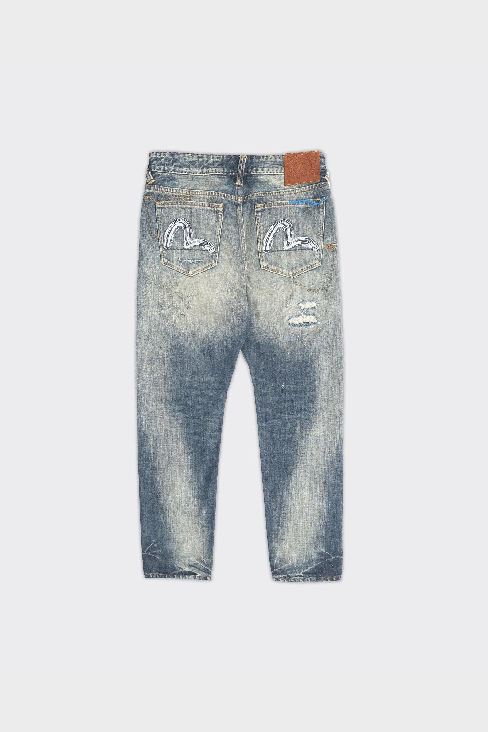 evisu Jeans 7-Pocked Washed Emb Seagull Denim Indigo