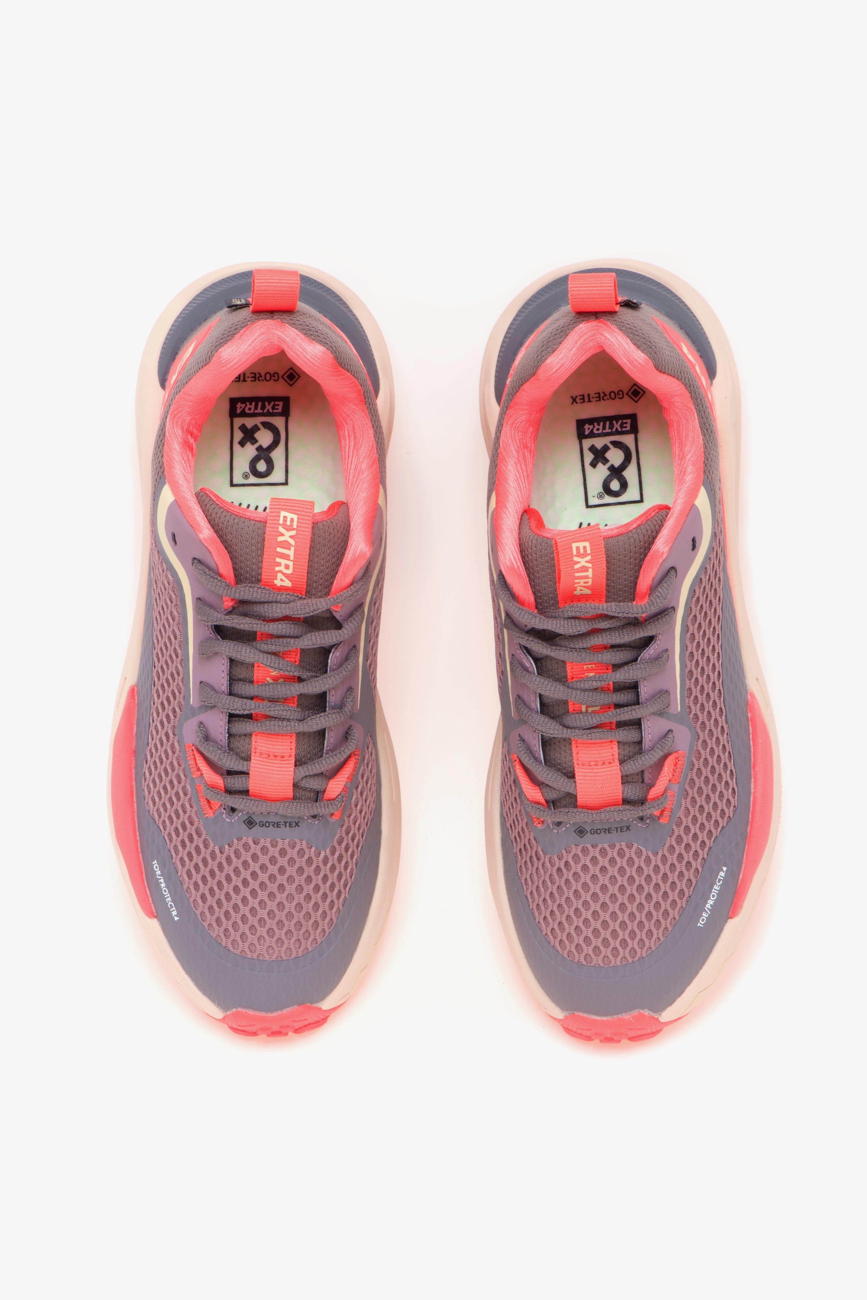 Sneaker &XTR4 Kaizen XL GTX 1.01 in tessuto retinato termosaldato, pensata per chi vive la città con attitudine trail.Il profilo athleisure a taglio basso unisce design aerodinamico e protezione tecnica: la tomaia in mesh strutturato one-piece limita i punti di attrito e migliora la traspirazione, mentre la pellicola in TPU sulla punta aumenta la resistenza nelle aree più sollecitate. La membrana GORE-TEX Invisible Fit è integrata direttamente nella tomaia per garantire impermeabilità e traspirabilità anche sotto stress dinamico. Sotto il piede lavora una suola a 5 componenti con tasselli a V da 4 mm per trazione superiore e intersuola ultraleggera in EVA, coadiuvata da cuscinetti ammortizzanti su tallone e avampiede e da un inserto centrale in TPU che stabilizza la rullata. Il collarino imbottito e il sottopiede Rapid-Tech (microsfere EVA + schiuma PU) completano un comfort reattivo per tutta la giornata. Il logo EXTR4 e i dettagli tecnici ne sottolineano il carattere sportivo e deciso.Caratteristiche principali:# Modello: &XTR4 Kaizen XL GTX 1.01 · Athleisure donna, taglio basso.# Tomaia: mesh strutturato one-piece termosaldato.# Protezione: pellicola TPU su punta per anti-abrasione.# Membrana: GORE-TEX Invisible Fit integrata, impermeabile e traspirante.# Comfort: collarino imbottito; sottopiede Rapid-Tech (microsfere EVA + schiuma PU).# Suola a 5 componenti: tasselli a V 4 mm per grip; intersuola EVA ultraleggera; cuscinetti ammortizzanti su tallone e avampiede; inserto TPU centrale per stabilità dinamica.# Chiusura: lacci.# Altezza tacco/intersuola: 3,8 cm.# Fodera: GORE-TEX Invisible Fit.# Sottopiede: Fussbett tessuto + E-TPU, estraibile.# Tomaia materiali: tessuto rete / pelle sintetica.# Colore: rosa · Genere: donna.# Articolo: 8705500 · Stagione: AI.