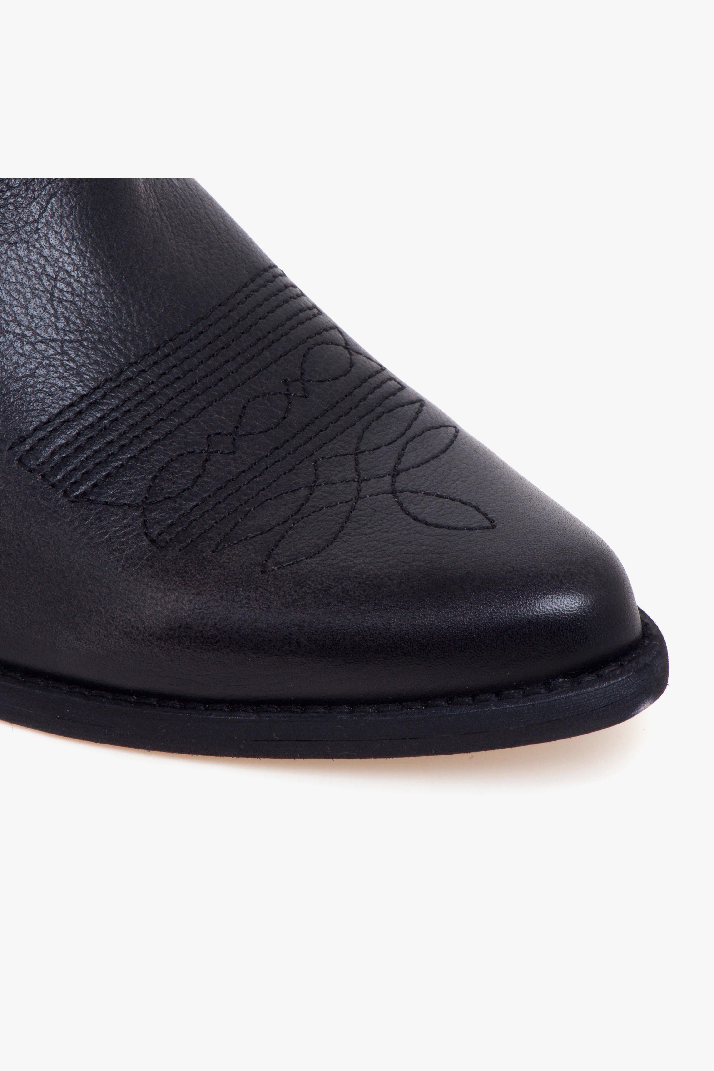 Stivale texano dallo spirito autentico, firmato Felmini e realizzato in pelle lavata con finitura effetto vintage che ne esalta il carattere vissuto. La tomaia è impreziosita da ricami tono su tono sulla punta, un dettaglio raffinato che richiama la tradizione western con un tocco più delicato e femminile. Il gambale a tubo offre una calzata facile e uno stile essenziale, mentre il tacco da 35 mm assicura comfort e stabilità durante tutta la giornata.Completano il design la fodera in tessuto, il sottopiede in pelle e la suola in gomma, elementi che garantiscono una calzatura leggera e versatile, perfetta per accompagnare ogni passo con personalità.Ideale da indossare con un abito midi stampato o con jeans dritti e una camicia in denim, per un look boho-chic dal gusto contemporaneo.# Gambale a tubo. # Tomaia in pelle. # Fodera in tessuto. # Sottopiede in pelle. # Suola in gomma. # tacco 35 mm.