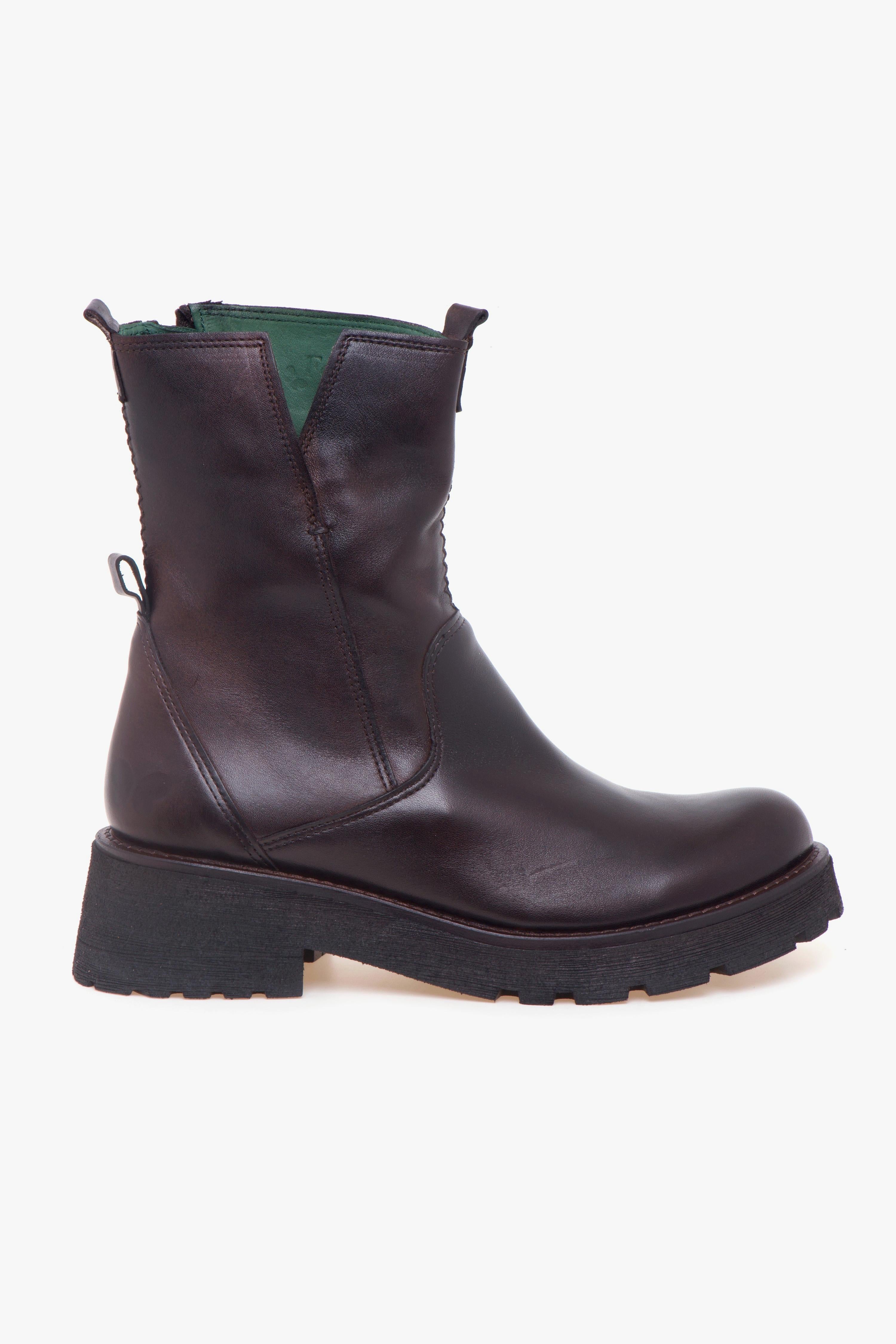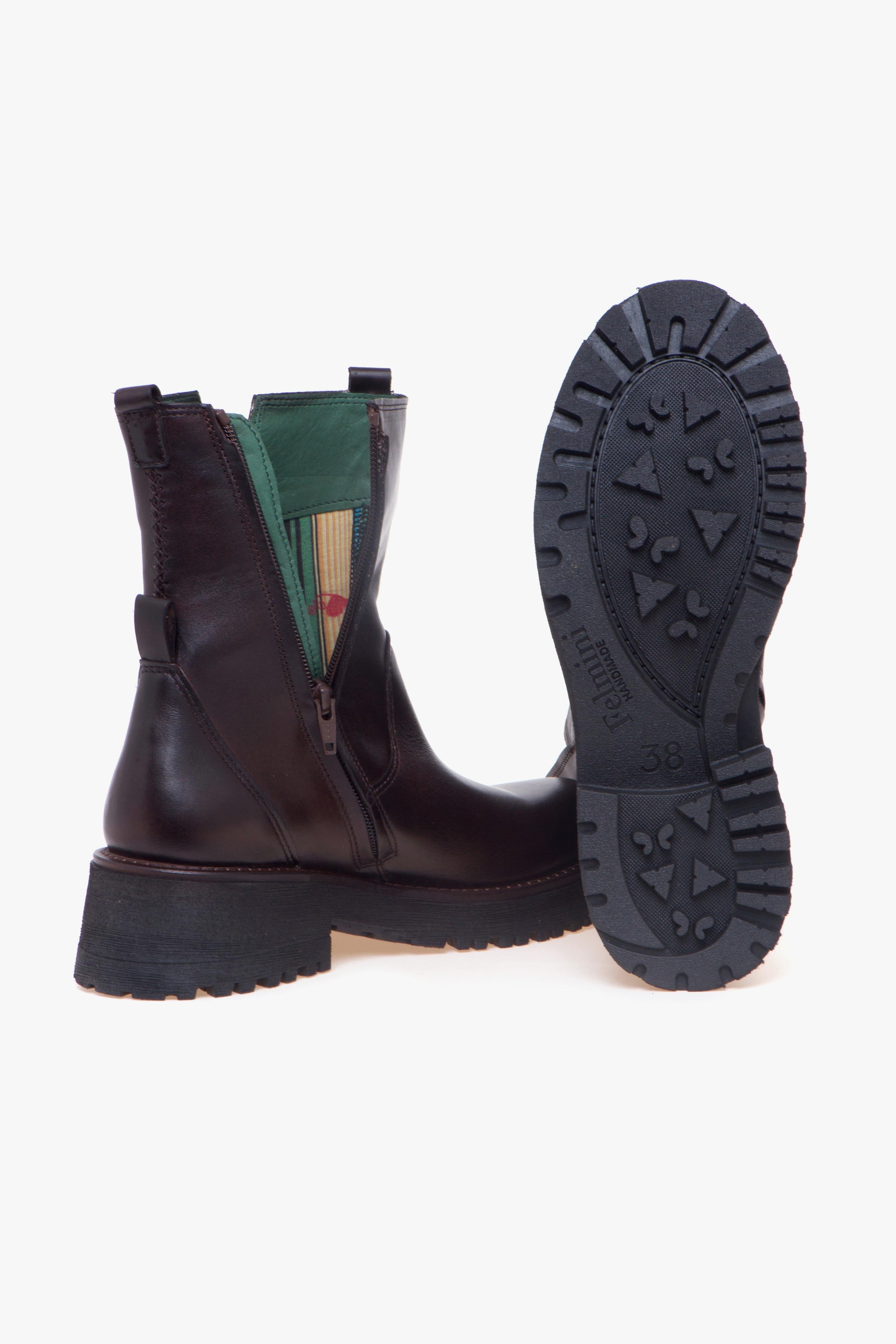 Tronchetto Felmini in pelle dal look essenziale, costruito su una forma arrotondata che accompagna la pianta e rende la calzata confortevole. Il gambale segue la linea della caviglia ed è impreziosito da un piccolo spacco laterale esterno; la zip sul lato interno agevola la calzata e mantiene pulito il profilo. Sotto, la suola in gomma con battistrada a carrarmato isola dal terreno, resta leggera e offre grip ottimale per l’uso quotidiano. Interni curati con fodera in pelle completata dall’iconico tessuto Felmini a righe e sottopiede in pelle.Caratteristiche principali:# Tomaia in pelle con gambale avvolgente e spacco laterale esterno.# Zip interna per calzata rapida.# Forma arrotondata per maggiore comfort.# Suola in gomma con battistrada a carrarmato: isolamento,# leggerezza e aderenza.# Fodera in pelle con tessuto Felmini a righe.# Sottopiede in pelle.# Design essenziale, ideale tutti i giorni.
