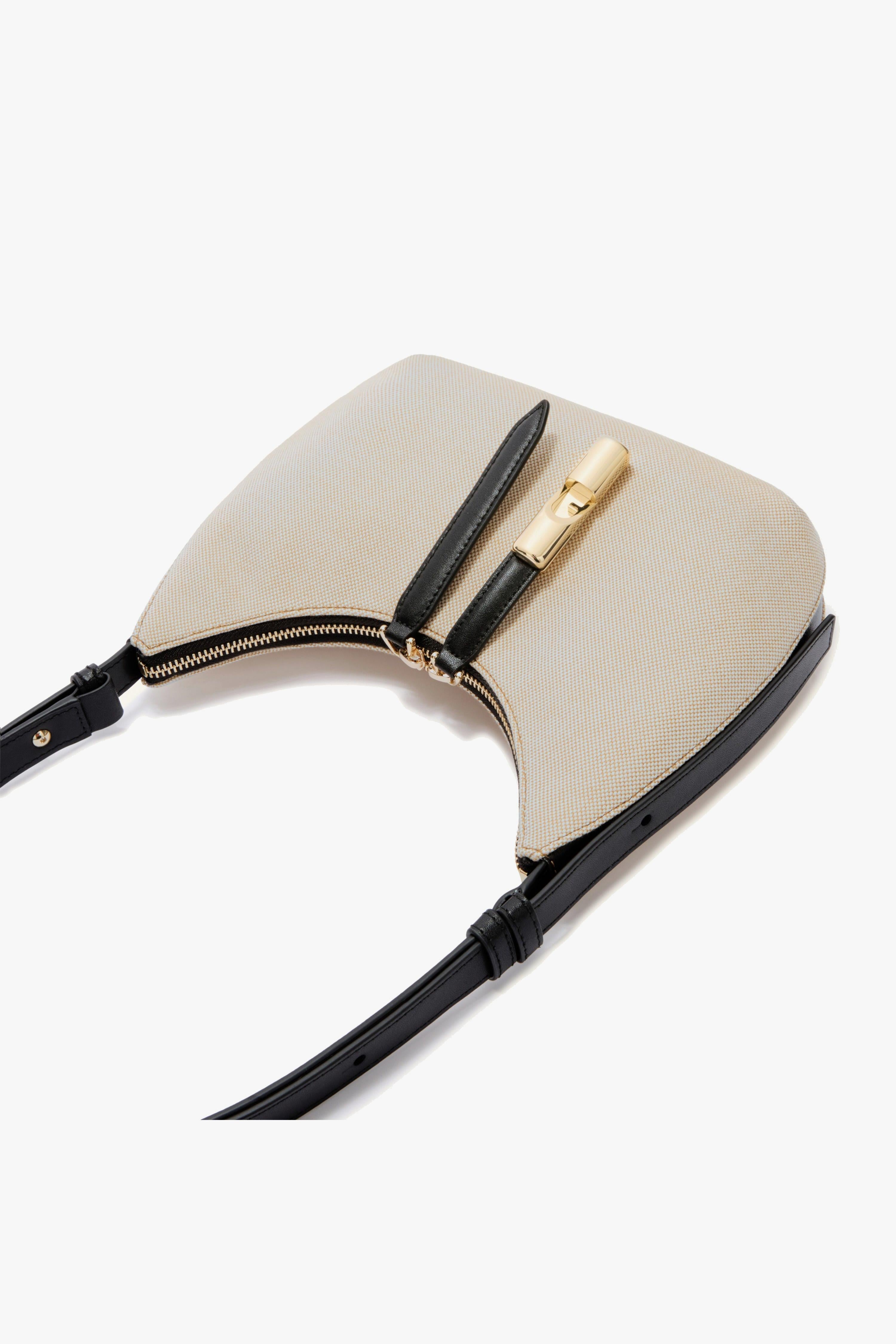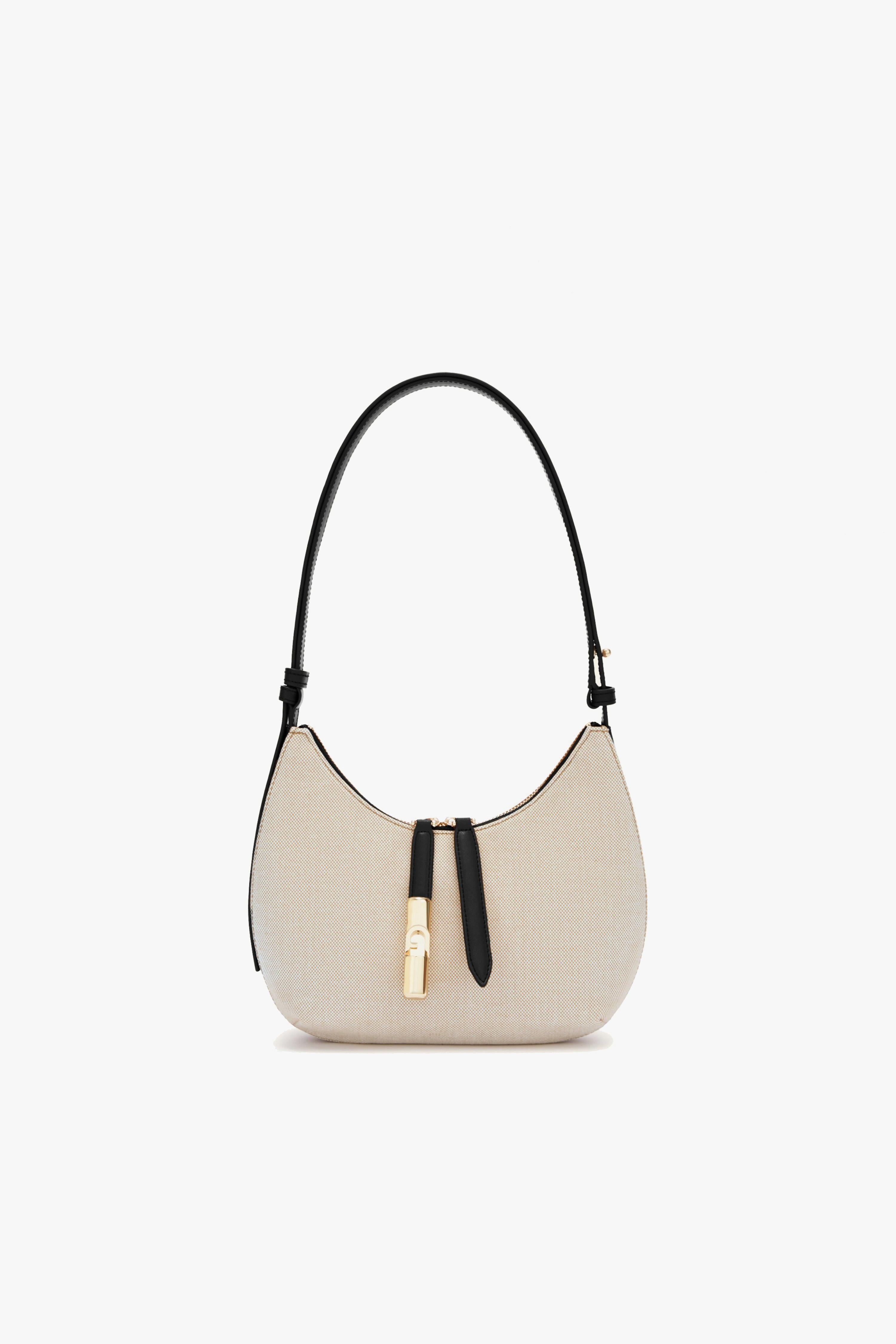 L'equilibrio tra leggerezza e struttura dà forma alla borsa a spalla Furla Nuvola, un modello compatto dal profilo stondate e armonioso. La combinazione di tela leggera e dettagli in pelle liscia crea un raffinato gioco materico, mentre la chiusura a doppio cursore si distingue per l’elegante accessorio cilindrico lucido con logo Arco, firma distintiva della maison. L’interno, foderato in tessuto e pelle, è progettato per contenere l’essenziale grazie a uno scomparto principale con tasche interne pratiche. Il manico regolabile completa un design pensato per accompagnare con discrezione la quotidianità.Consiglio di stile: perfetta con abiti chemisier e sandali flat, per un’eleganza disinvolta nei contesti urbani e vacanzieri.# Unico scomparto chiuso con zip a doppio cursore.# Tasca interna aperta a parete.# Tasca interna con chiusura a zip sul lato interno opposto.# Manico in pelle liscia regolabile.# Fodera in tessuto e pelle. # Dimensioni: 22 x 21 x 7,5 cm.