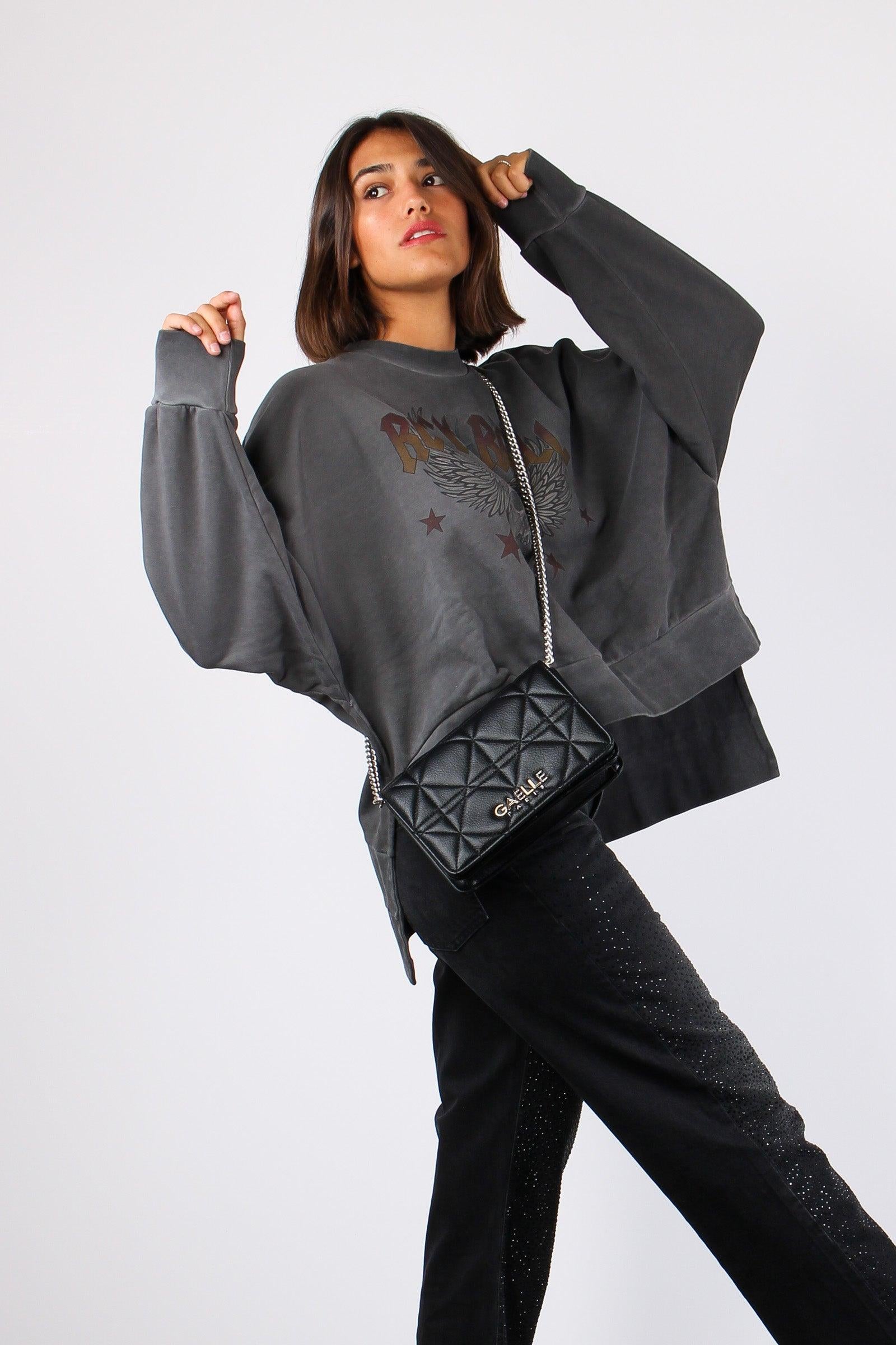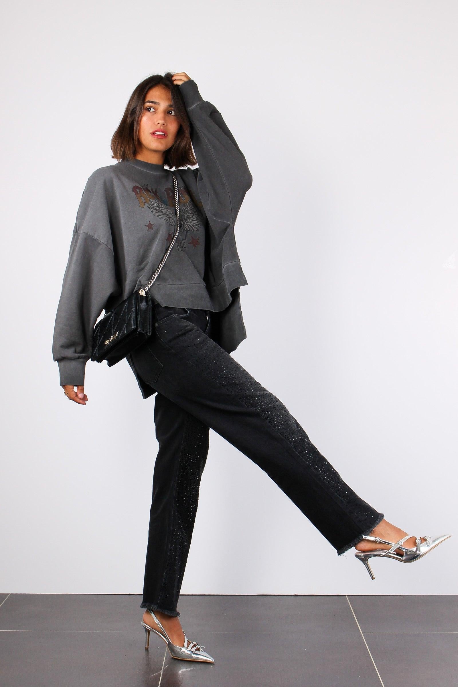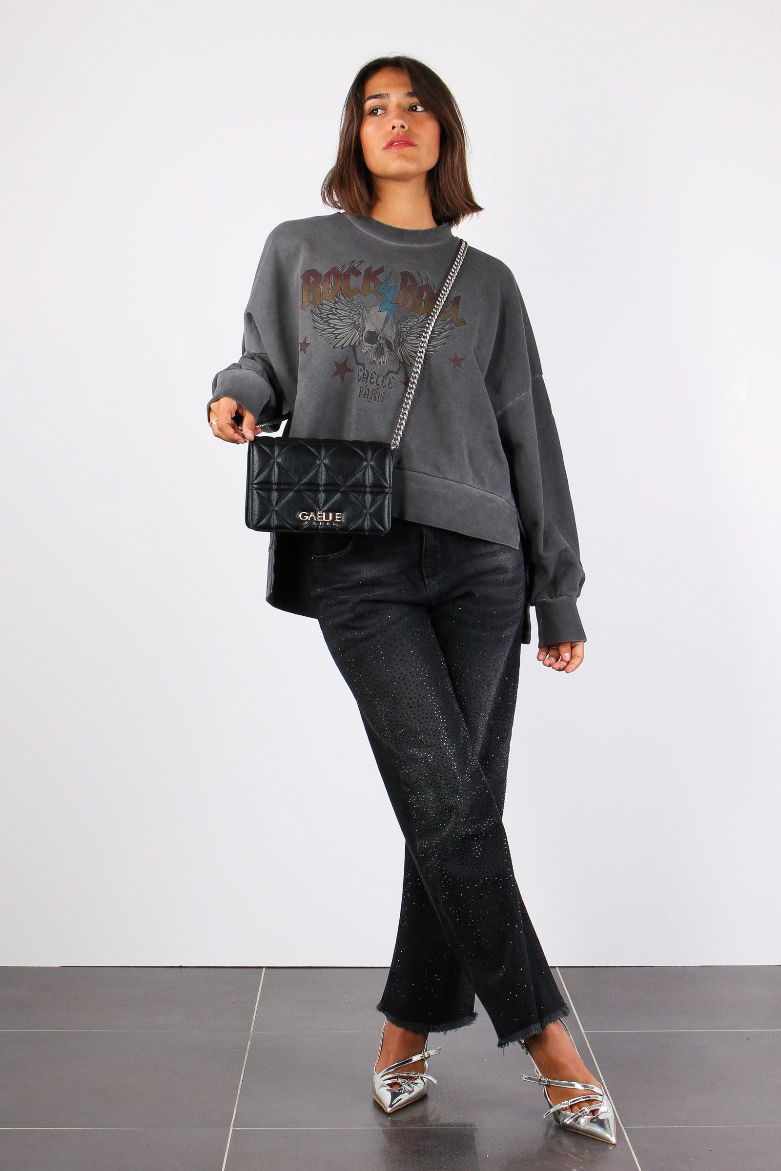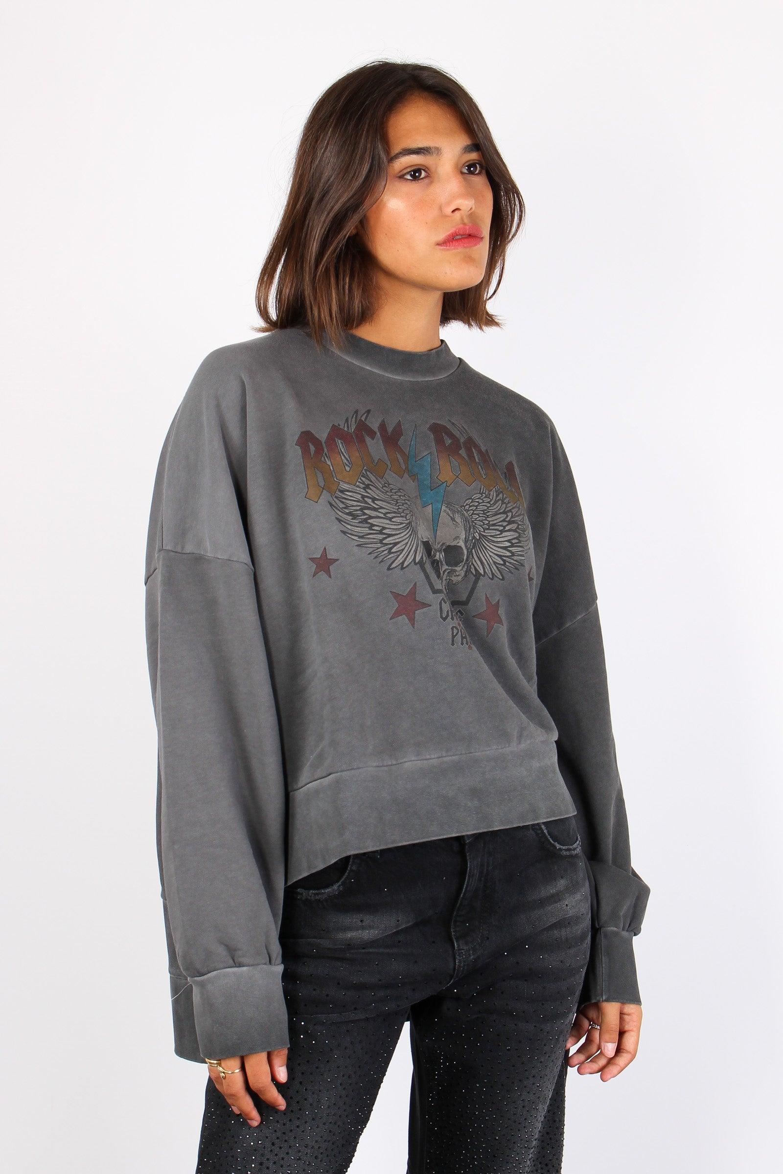 gaelle paris Felpa Vintage Rock & Roll Nero Slavato