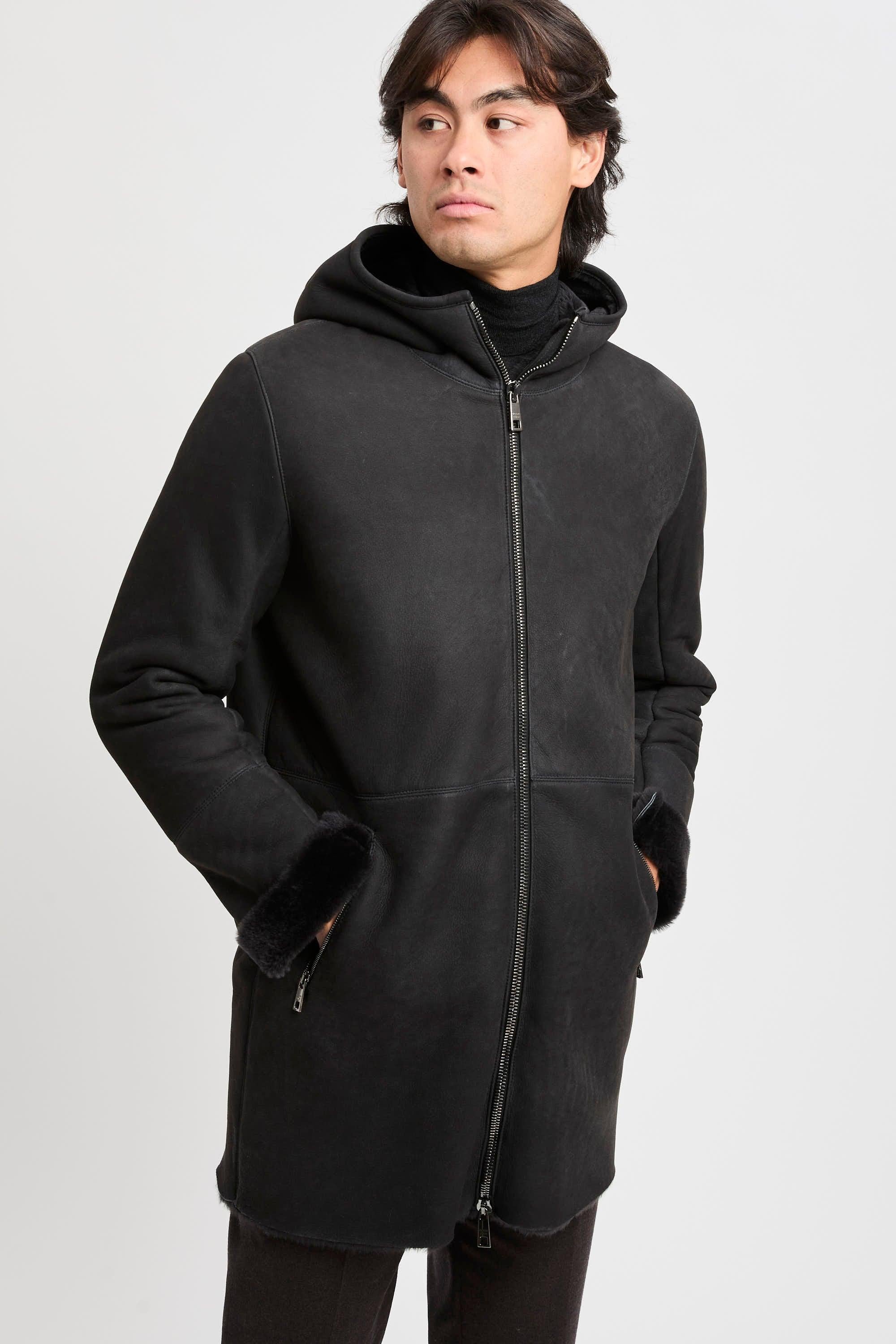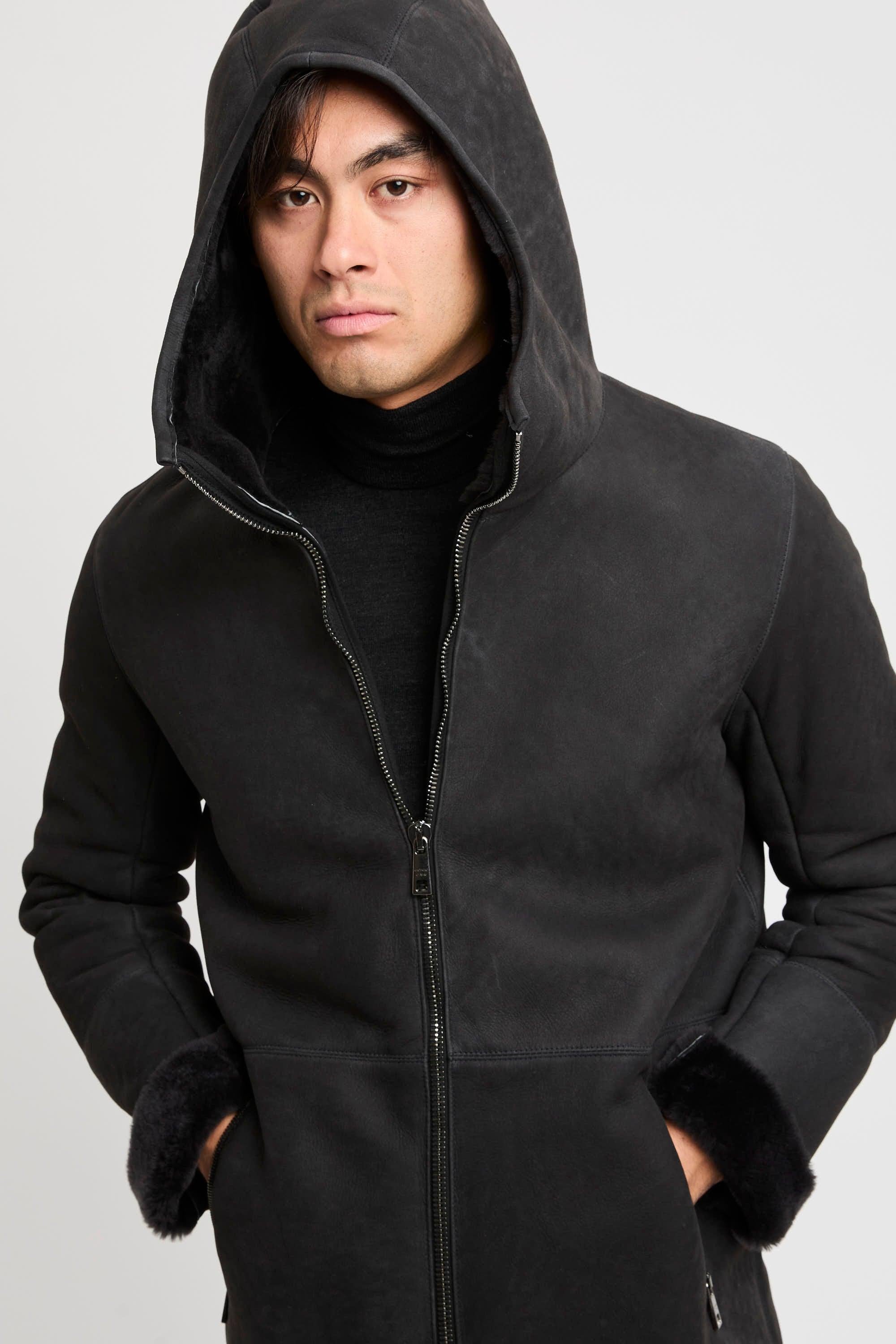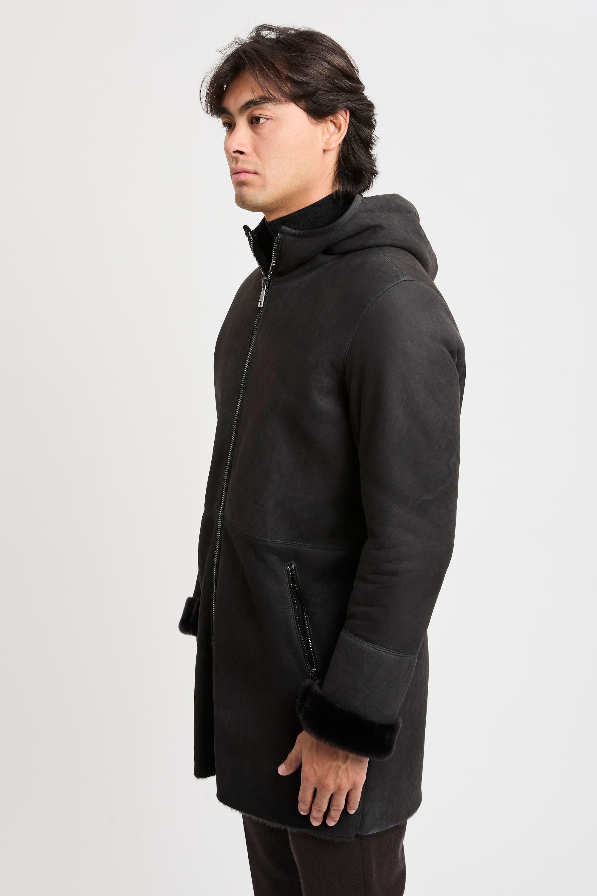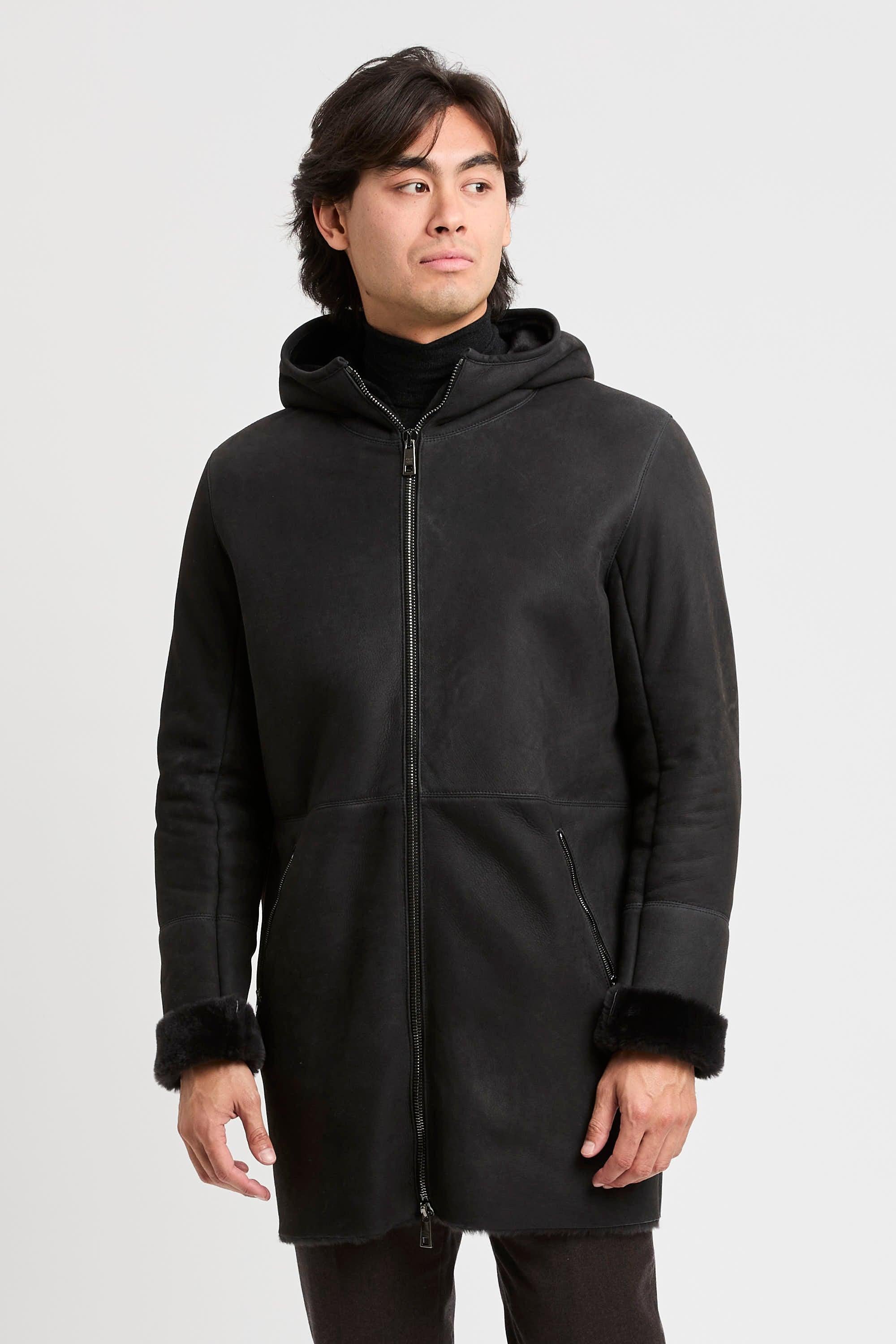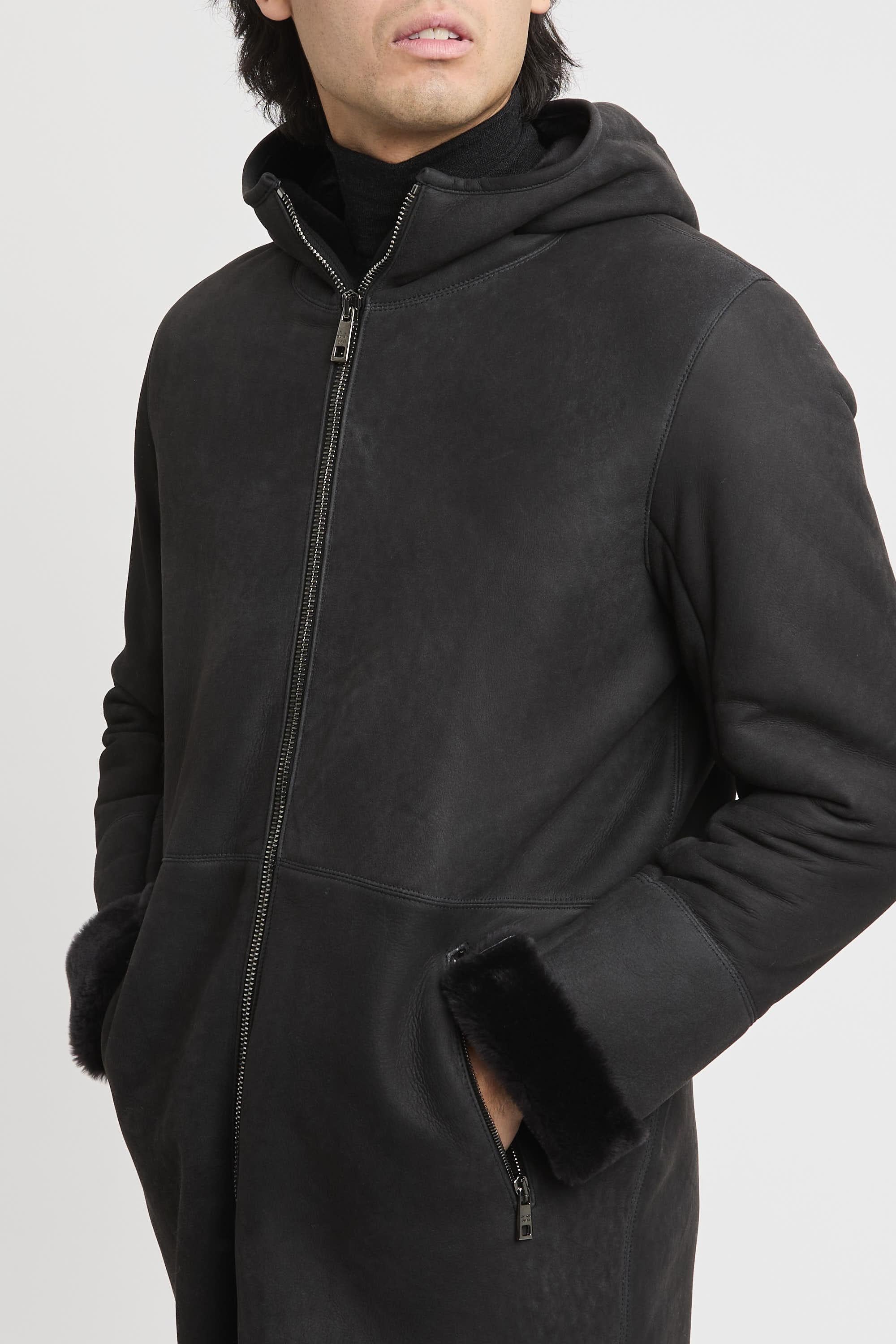 giorgio brato Montone lungo con cappuccio in pelle d'agnello