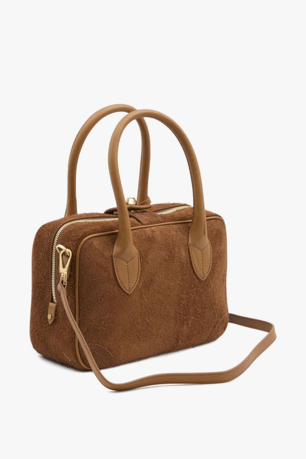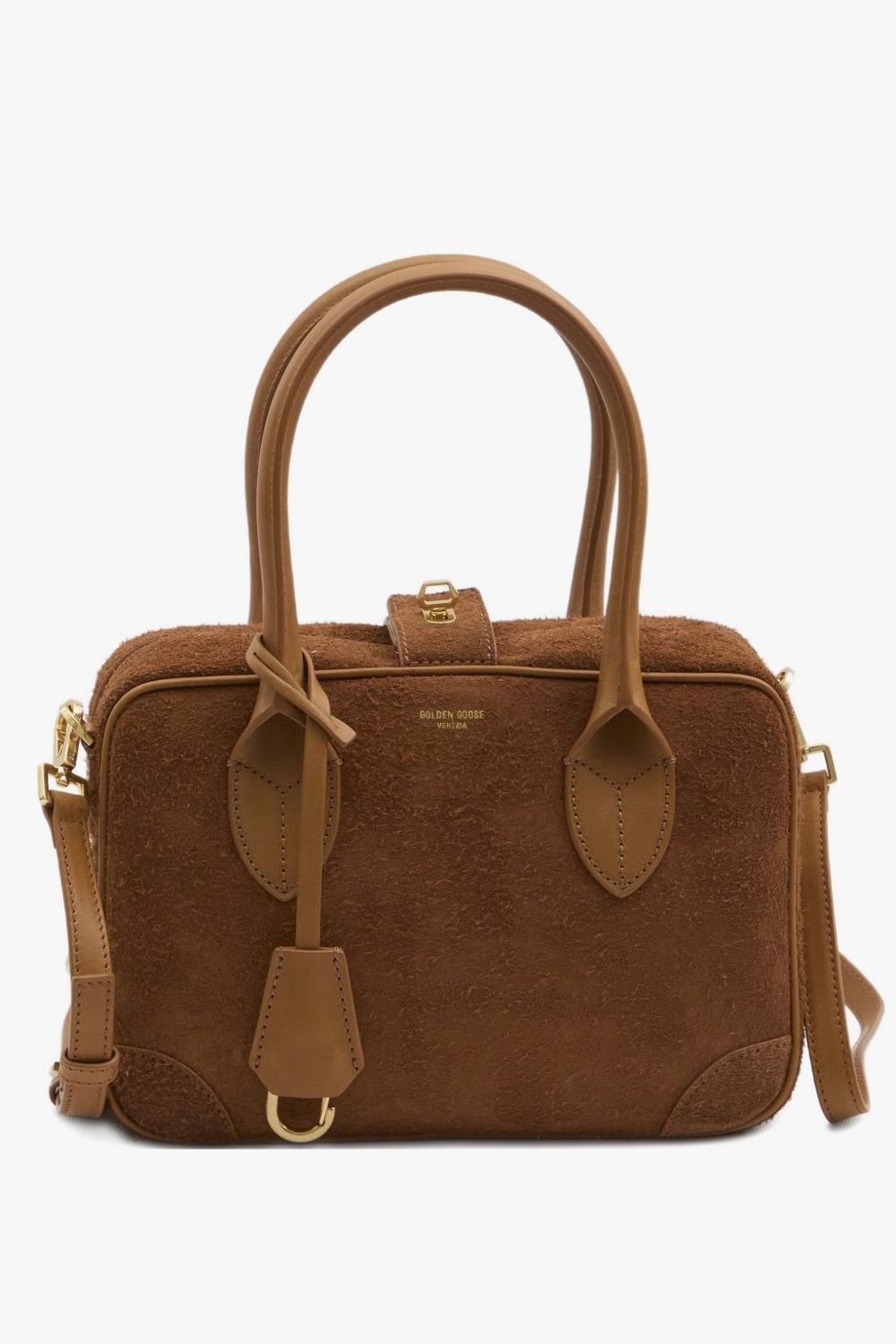 Proposta in tonalità marrone, presenta doppio manico, tracolla rimovibile e regolabile e una chiusura a girello, per la massima praticità senza rinunciare allo stile. La fodera interna in cotone e i piedini in metallo completano una borsa versatile, perfetta per look eleganti o casual chic.