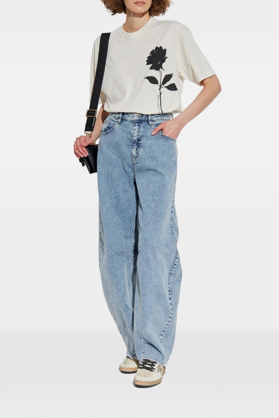 Proposta in bianco, è impreziosita da una stampa con rose che dona un tocco romantico e raffinato, mantenendo l’inconfondibile spirito casual del brand. Il girocollo e le maniche corte completano un modello essenziale ma dal carattere deciso, perfetto per look quotidiani dallo stile effortless.