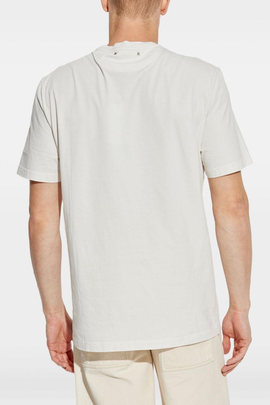 Proposta in tonalità bianco opaco, presenta una grafica con logo e decorazioni metalliche che riflettono lo spirito audace e sofisticato di Golden Goose. Il girocollo e le maniche corte ne completano il design minimal ma distintivo, perfetto per outfit casual o abbinamenti più ricercati.