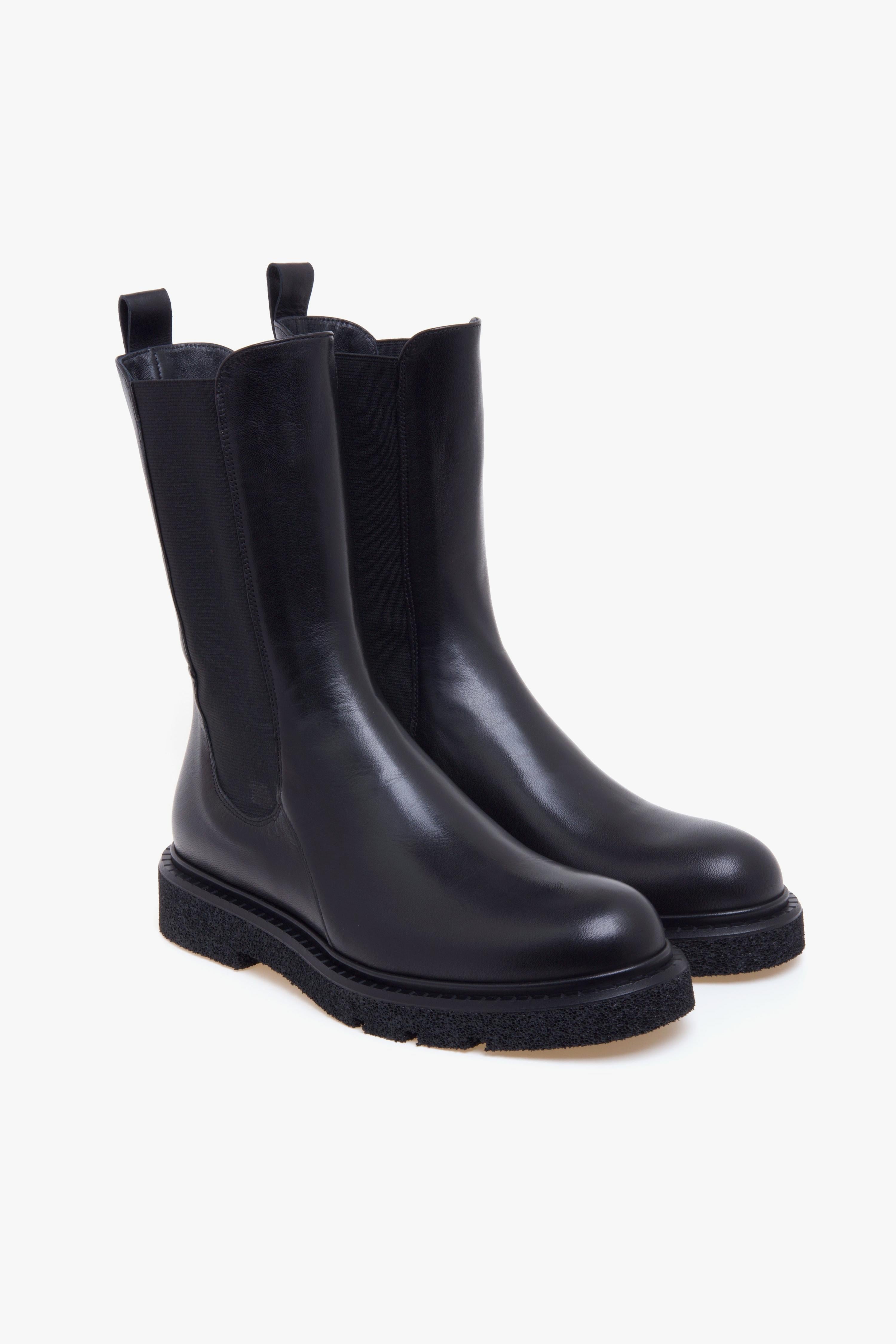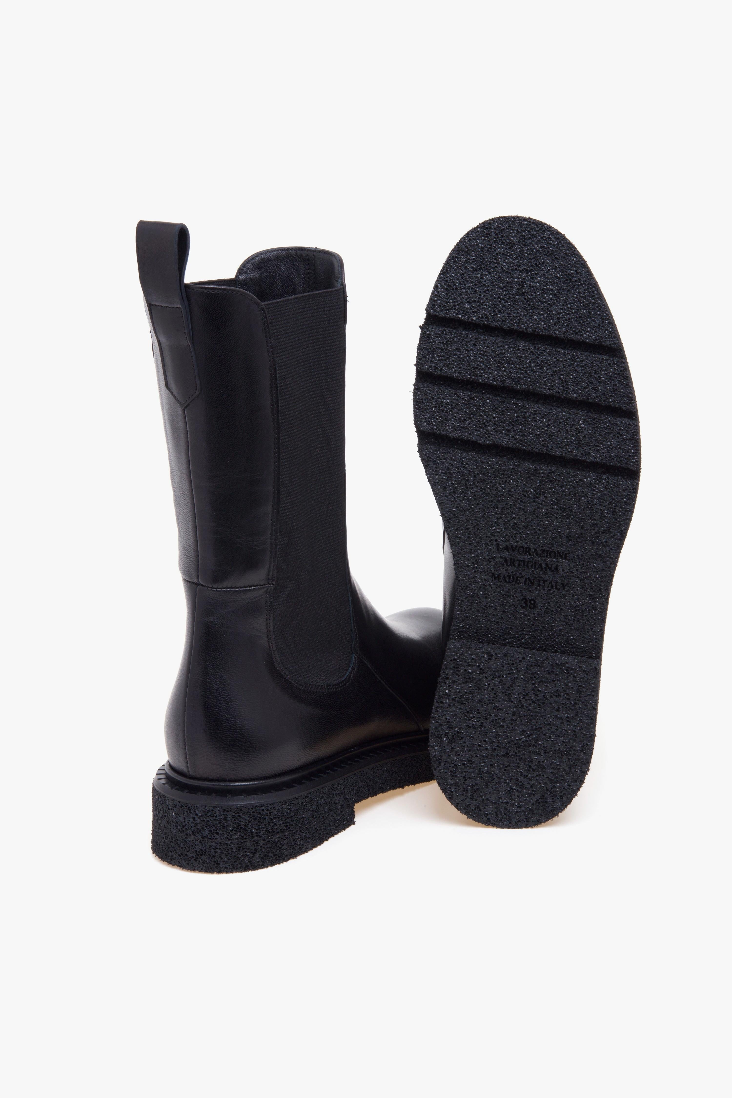 Linee pulite, materiali morbidi e comfort quotidiano definiscono questo Chelsea boot dallo stile contemporaneo.Il Chelsea boot Guglielmo Rotta, realizzato in morbida nappa nera, si distingue per il gambale a 3/4 che avvolge con eleganza la caviglia e parte del polpaccio, garantendo una vestibilità stabile e avvolgente. I doppi elastici laterali e il laccetto posteriore facilitano la calzata, mantenendo l’essenzialità tipica del modello.La suola in gomma Rubrex, estremamente leggera e flessibile, è completata da un guardolo in cuoio che aggiunge un dettaglio raffinato alla struttura casual. L’interno è interamente foderato in pelle, così come il sottopiede, per offrire traspirabilità, comfort e una sensazione naturale a contatto con il piede.Un modello versatile, adatto a molteplici contesti e facile da abbinare con look urbani e disinvolti, senza rinunciare al gusto per il dettaglio.Caratteristiche principali:# Tomaia in nappa nera morbida.# Gambale a 3/4 con doppi elastici laterali e laccetto posteriore.# Fodera e sottopiede in pelle.# Suola in gomma Rubrex leggera e flessibile.# Guardolo in cuoio.# Made in ItalyConsigli di stile:Iindossalo con pantaloni sartoriali alla caviglia, una camicia in crêpe o viscosa fluida e un cappotto dritto monopetto. Una combinazione elegante e confortevole, perfetta per chi desidera uno stile essenziale e sempre curato.Oppure, abbinalo a gonna midi in maglia o denim strutturato, un pullover oversize e una giacca bomber corta o cappotto over in lana spazzolata. Il mix tra proporzioni morbide e linea compatta dello stivale crea un look urbano e perfettamente in linea con i trend più attuali.