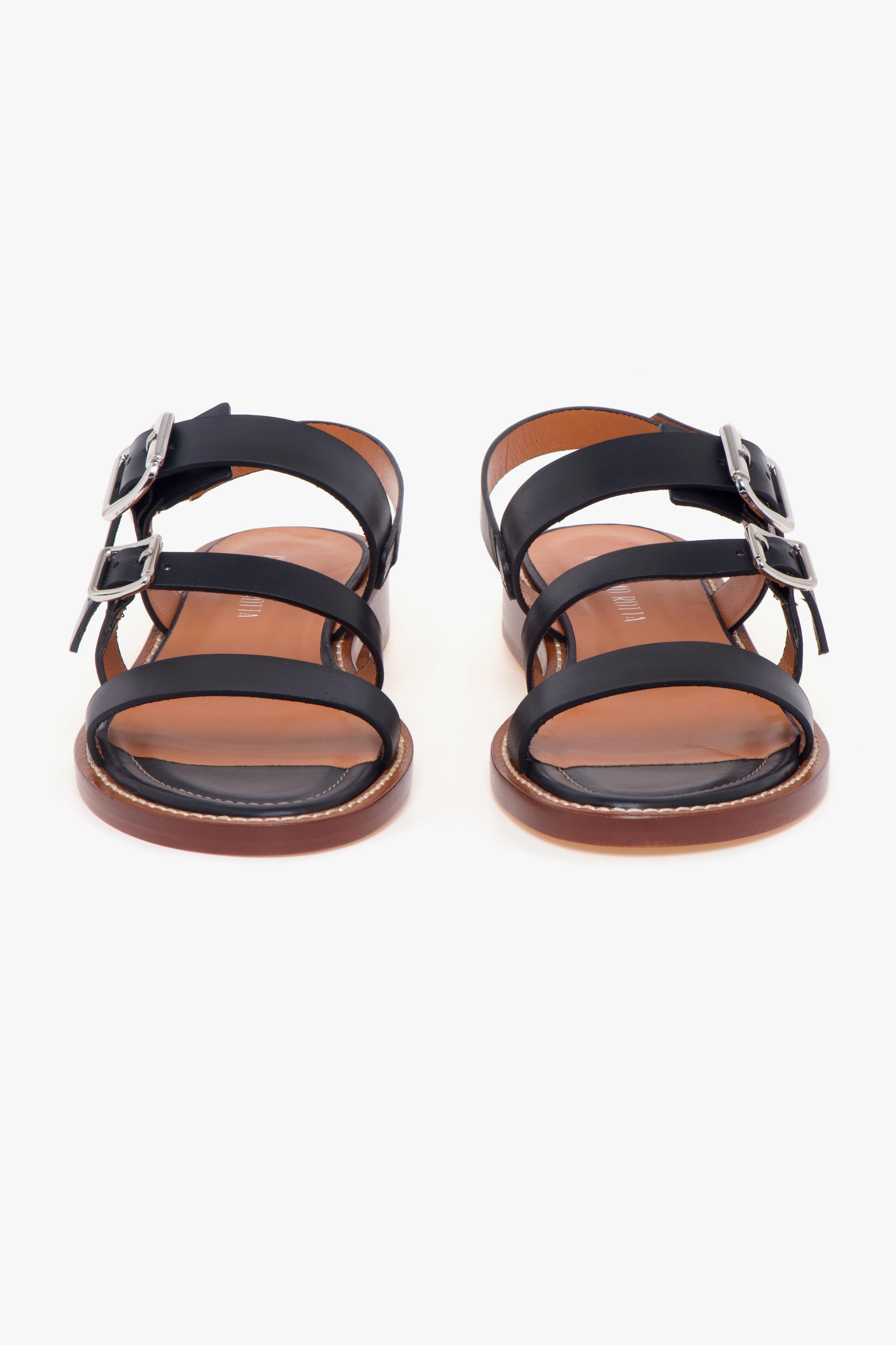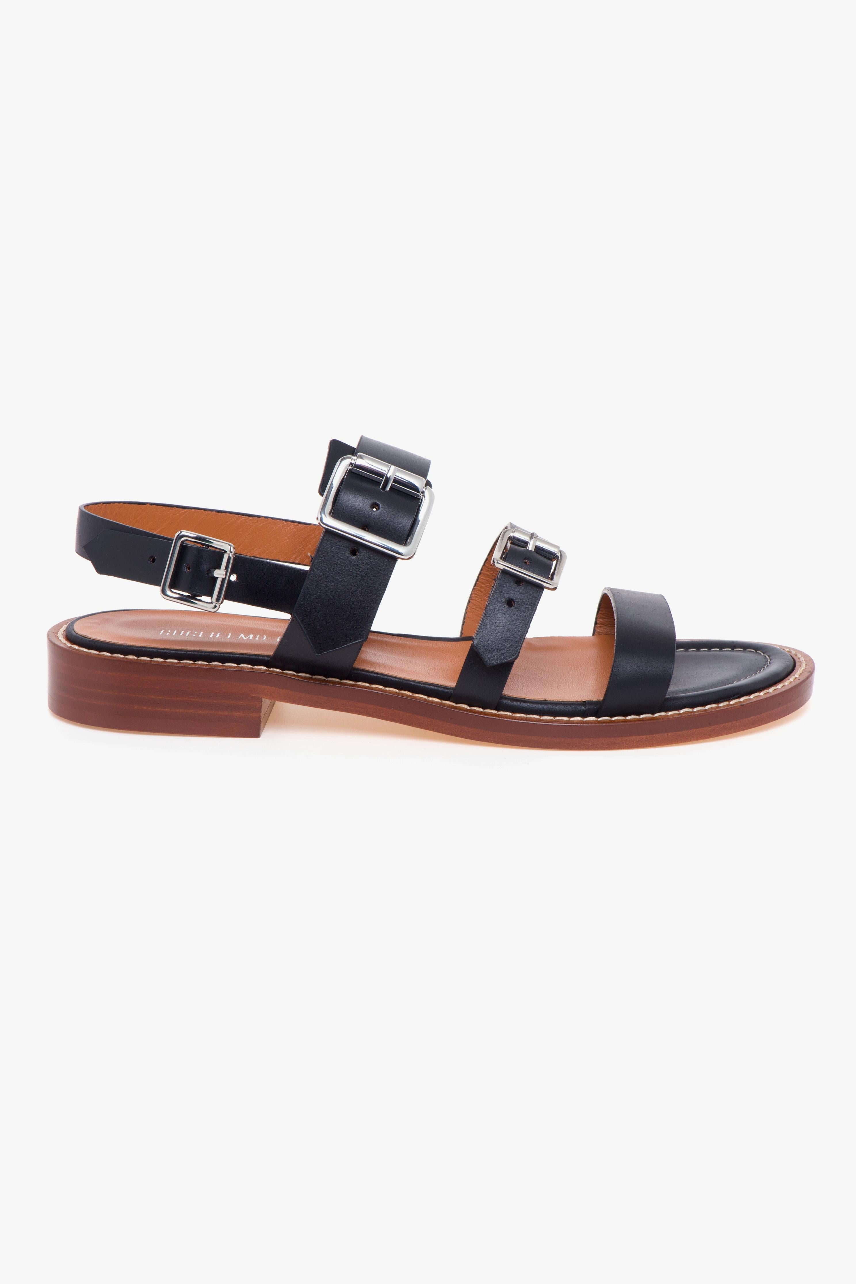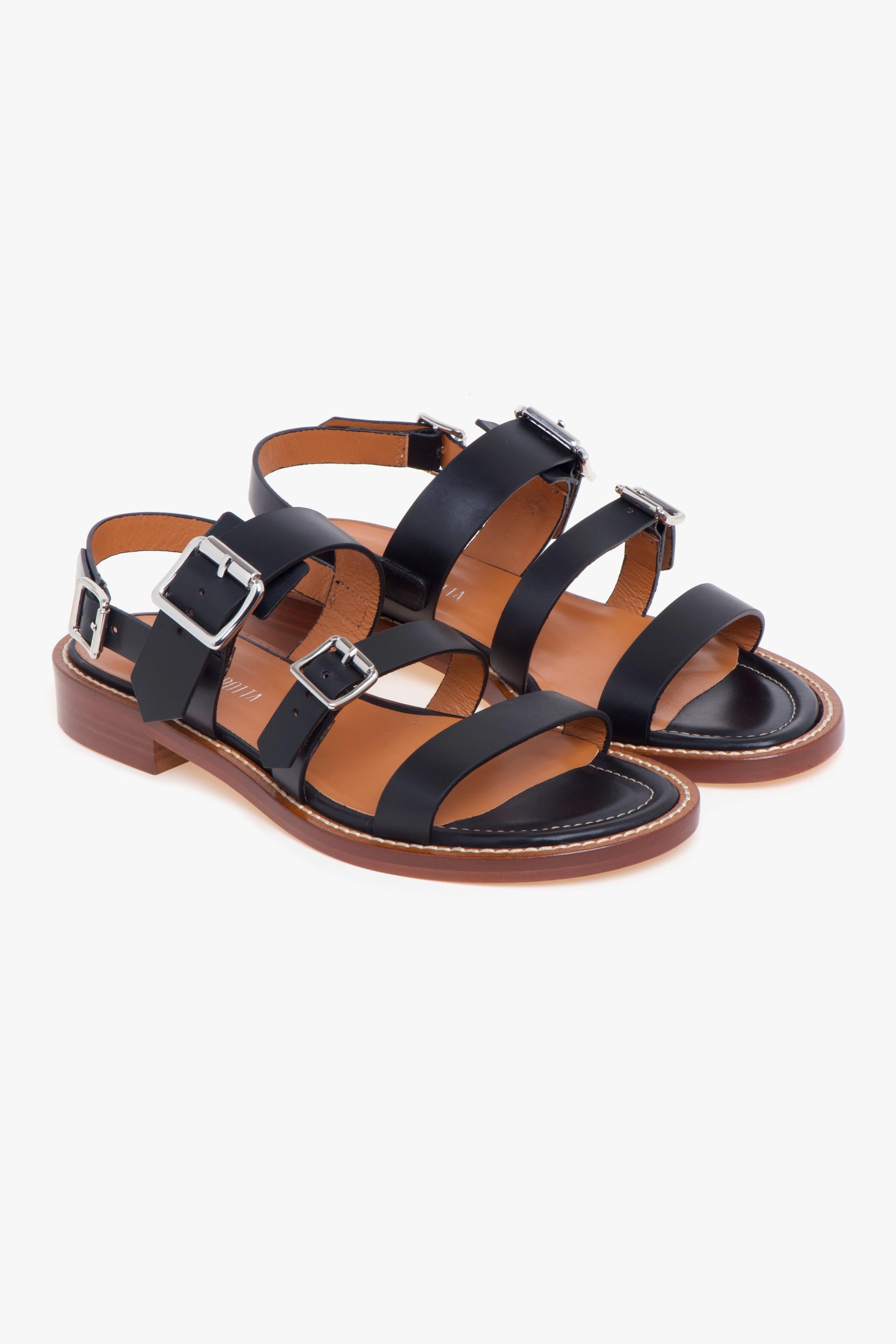 Il sandalo basso in pelle Guglielmo Rotta si distingue per il suo design essenziale ma ricercato, ideale per chi cerca comfort e stile in un’unica calzatura. La tomaia in pelle a taglio vivo conferisce un aspetto pulito e raffinato, mentre i tre cinturini regolabili, due sul collo del piede e uno sul tallone, garantiscono una calzata personalizzabile e sicura.Il sottopiede in pelle, impreziosito da un delicato profilo in cuoio con ricamo a contrasto, offre una piacevole sensazione di comfort, mentre la suola in cuoio con tacco di 25 mm aggiunge una leggera altezza senza rinunciare alla stabilità.Questa calzatura, realizzata artigianalmente in Italia, è un'ottima scelta per completare un look fresco e sofisticato, perfetta da abbinare con un paio di pantaloni leggeri o un abito estivo per un tocco di eleganza discreta.# Tomaia in pelle.# Fodera in pelle.# Sottopiede in pelle. # Suola in cuoio. # Produzione artigianale. # Made in Italy.