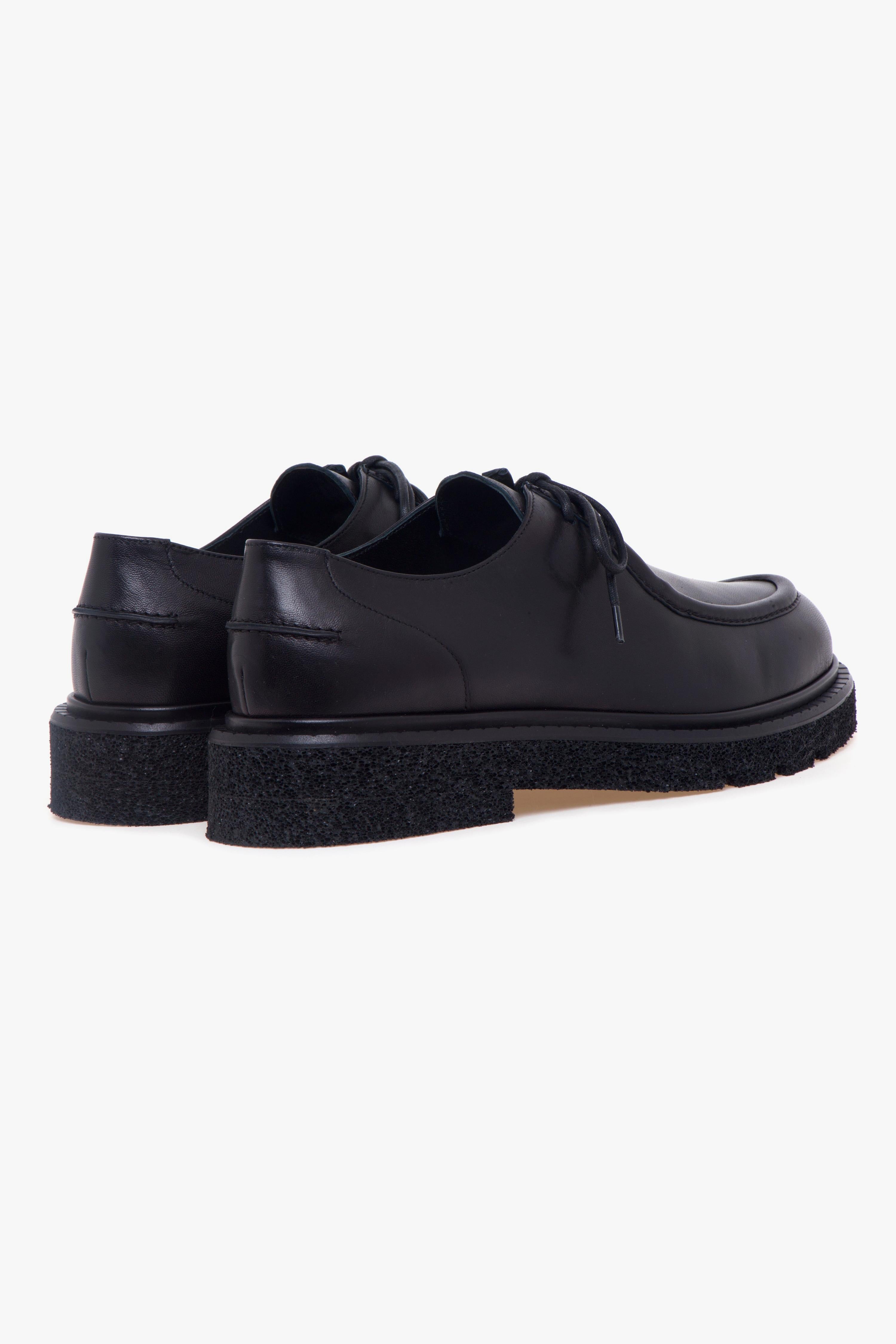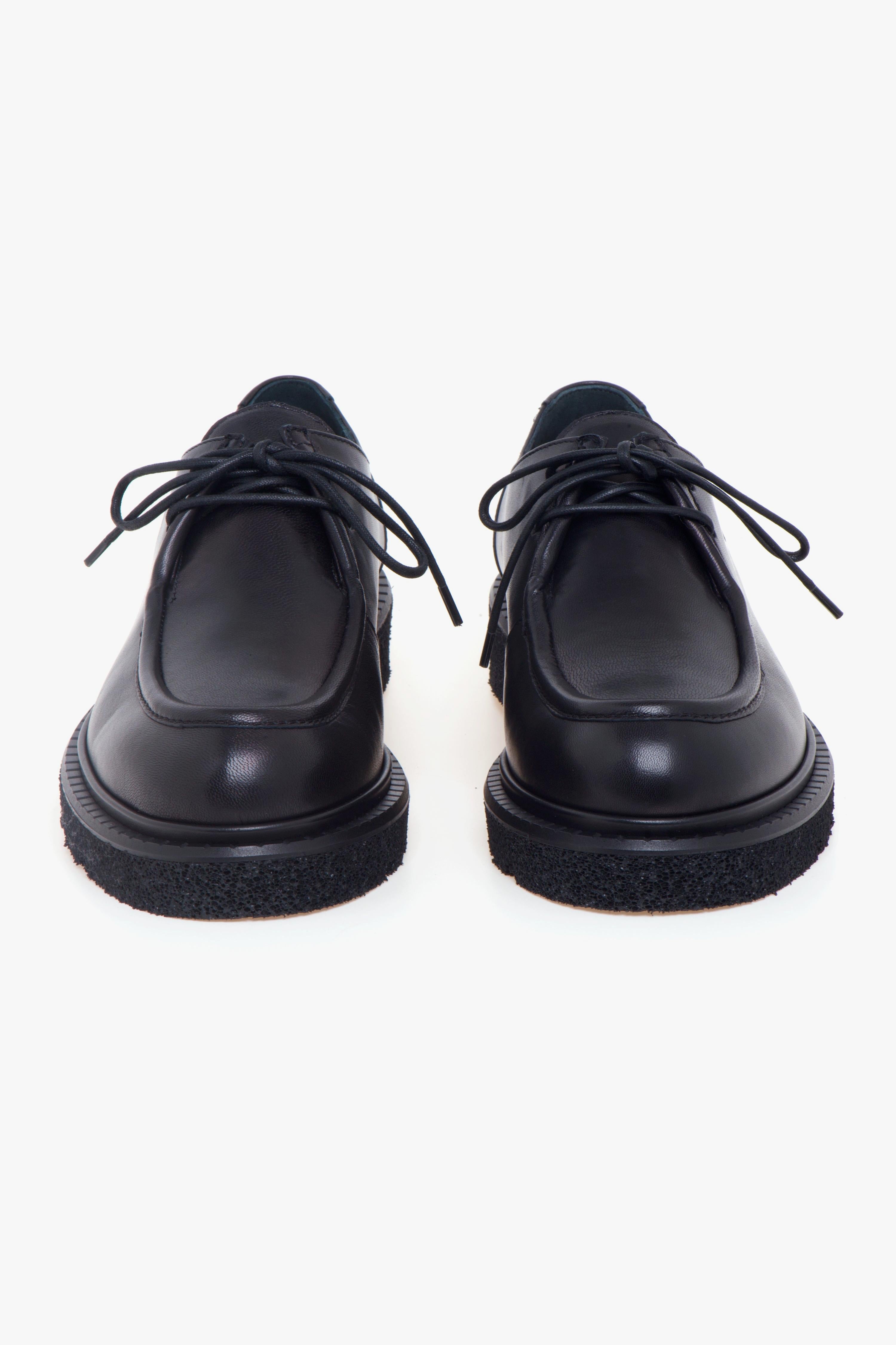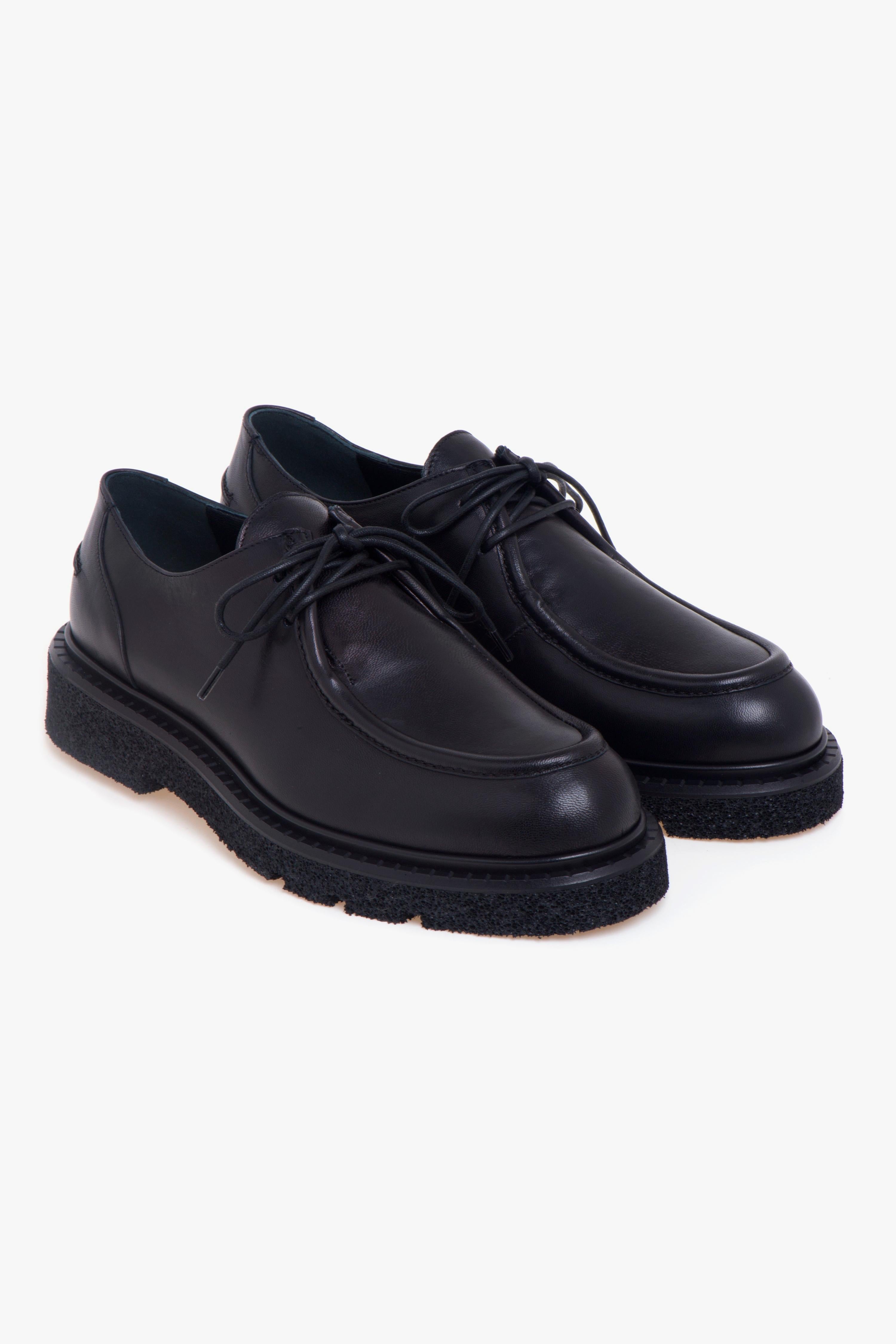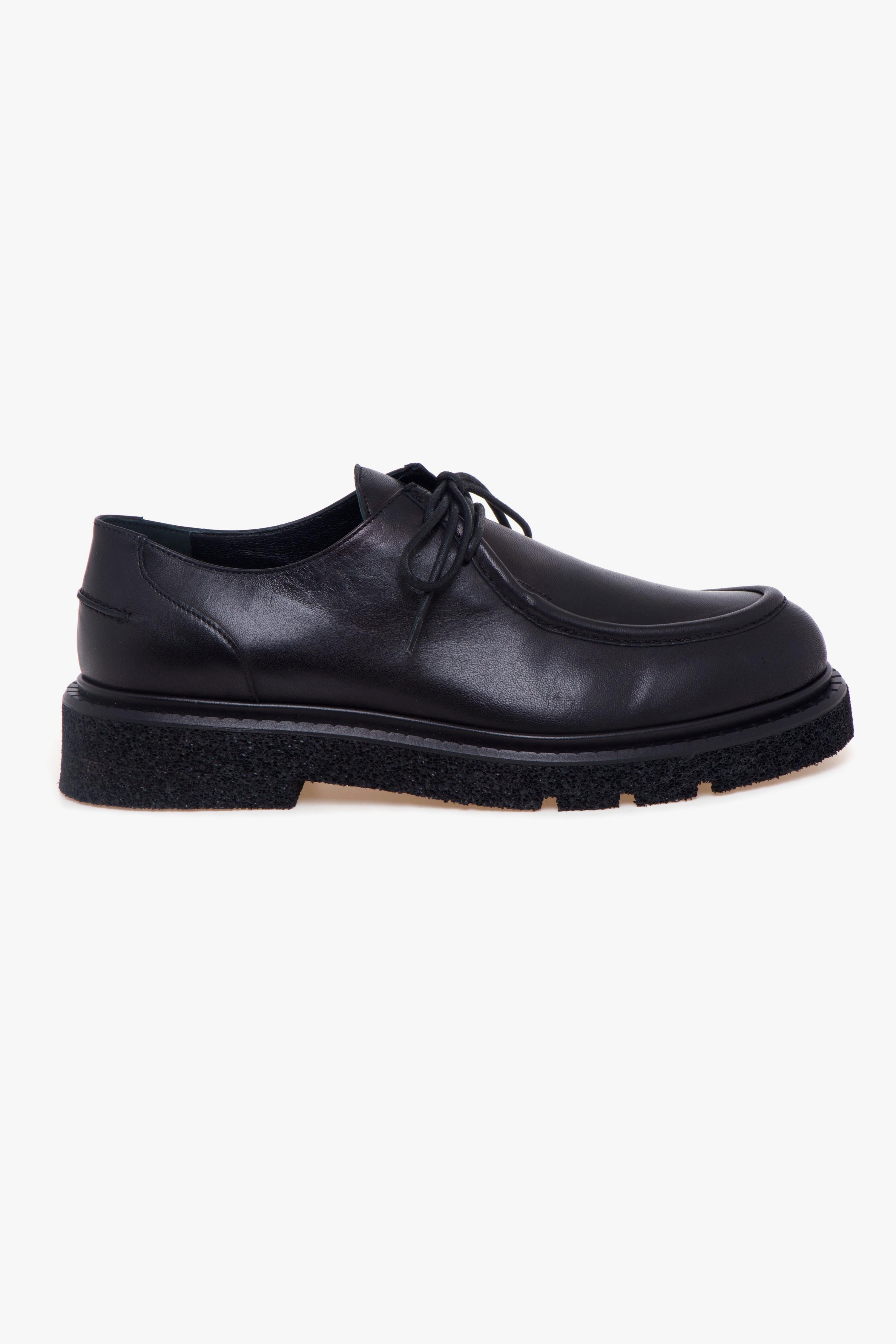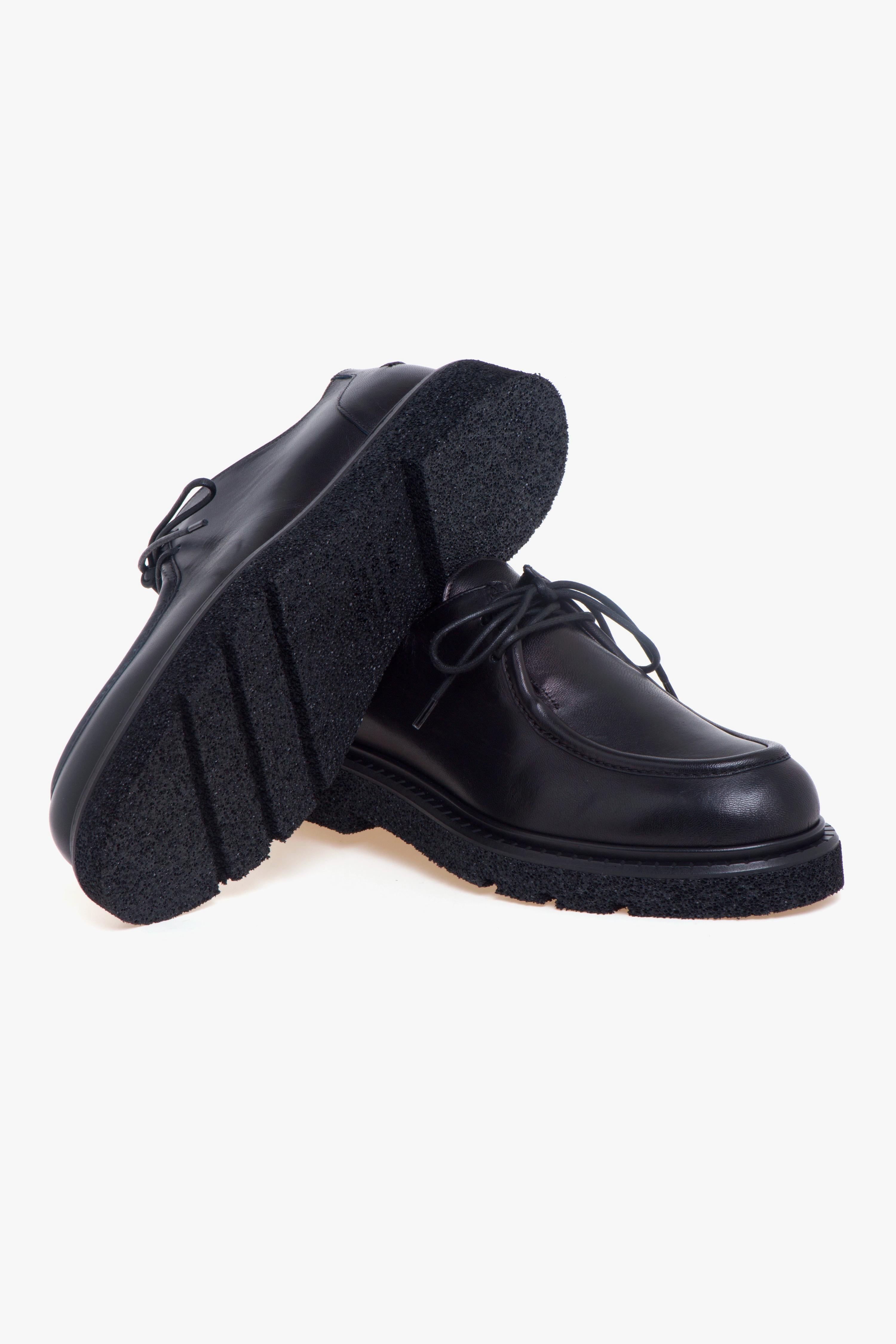 Carattere deciso e versatilità quotidiana si incontrano in una stringata che unisce stile classico e sensibilità contemporanea.Realizzata in morbida nappa nera, questa scarpa firmata Guglielmo Rotta è valorizzata dalla distintiva cucitura norvegese, un dettaglio artigianale che dona grinta al design mantenendo un’eleganza sobria e discreta.La costruzione interna è pensata per garantire benessere durante l’intera giornata: fodera e sottopiede sono interamente in pelle, per assicurare traspirabilità e comfort, mentre la suola in gomma Rubrex, leggera e flessibile, accompagna il passo con stabilità e naturalezza.Perfetta per chi ama uno stile pulito con un tocco audace, questa stringata si adatta con disinvoltura sia a look professionali che a contesti più rilassati.Caratteristiche principali:# Tomaia in nappa nera.# Cucitura norvegese per un dettaglio distintivo.# Fodera e sottopiede in pelle.# Suola in gomma Rubrex leggera e flessibile.# Made in Italy.Consigli di stile:ideale con pantaloni sartoriali e una blusa fluida o un dolcevita in filato sottile, completando il look con un capospalla classico. Una proposta che unisce praticità ed eleganza per ogni giorno.Oppure, ottime da abbinare con jeans straight fit o pantaloni cropped, una camicia oversize o felpa boxy e una giacca in pelle o bomber corto. Il contrasto tra la struttura della scarpa e la morbidezza dei volumi segue i trend più attuali con naturalezza.