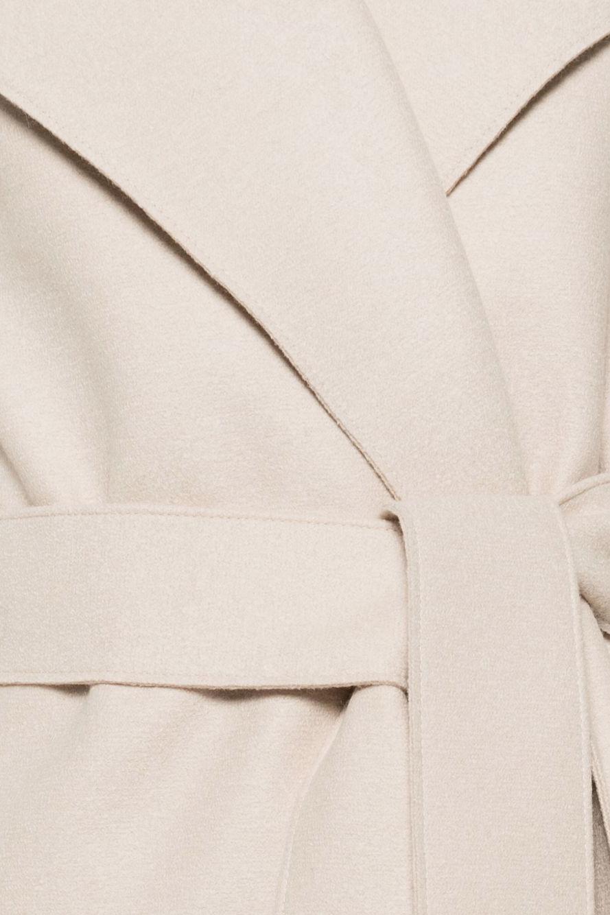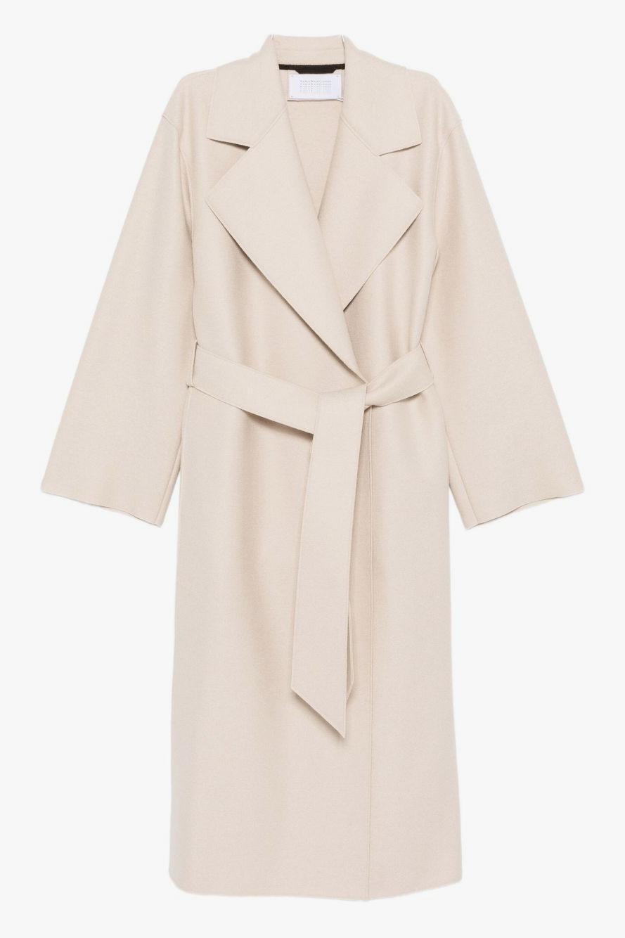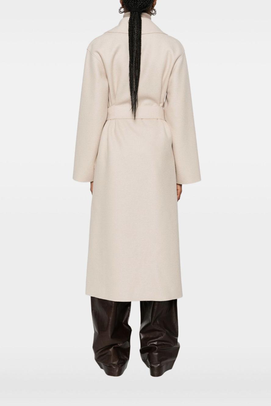 Il cappotto con cintura di Harris Wharf London, proposto nella delicata nuance beige mandorla, è un capo iconico che rappresenta alla perfezione l’estetica minimal e raffinata del brand. Realizzato in lana vergine 100% con finitura in feltro, offre una texture compatta e morbida, capace di garantire comfort e un look impeccabile.