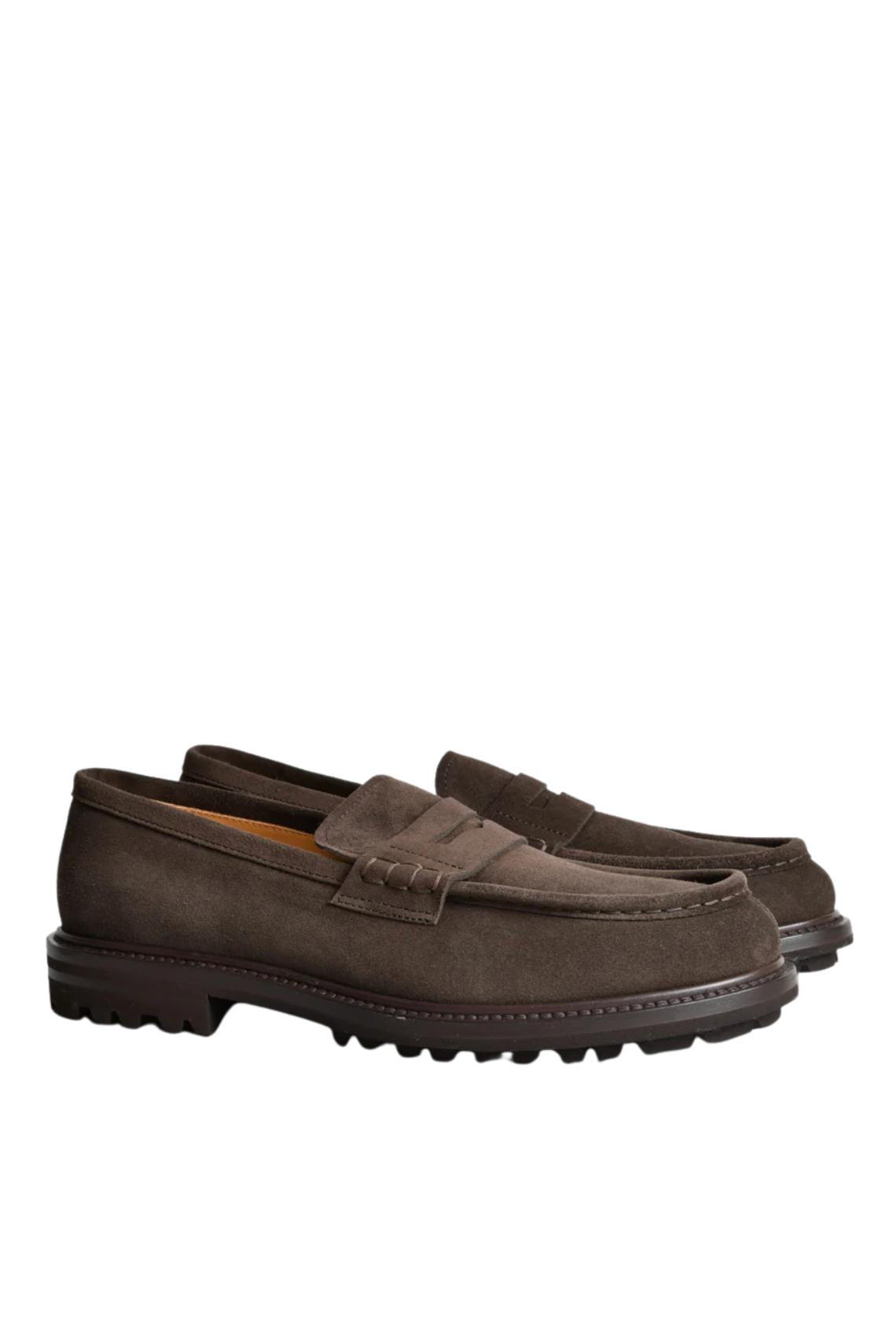 Un modello classico ma allo stesso tempo grintoso e contemporaneo. Questo mocassino con fascetta, è realizzato in pregiato suede di color marrone scuro, e foderato in morbido vitello naturale. La suola è in gomma carro. Un modello che assicura durabilità e resistenza allo scivolamento.