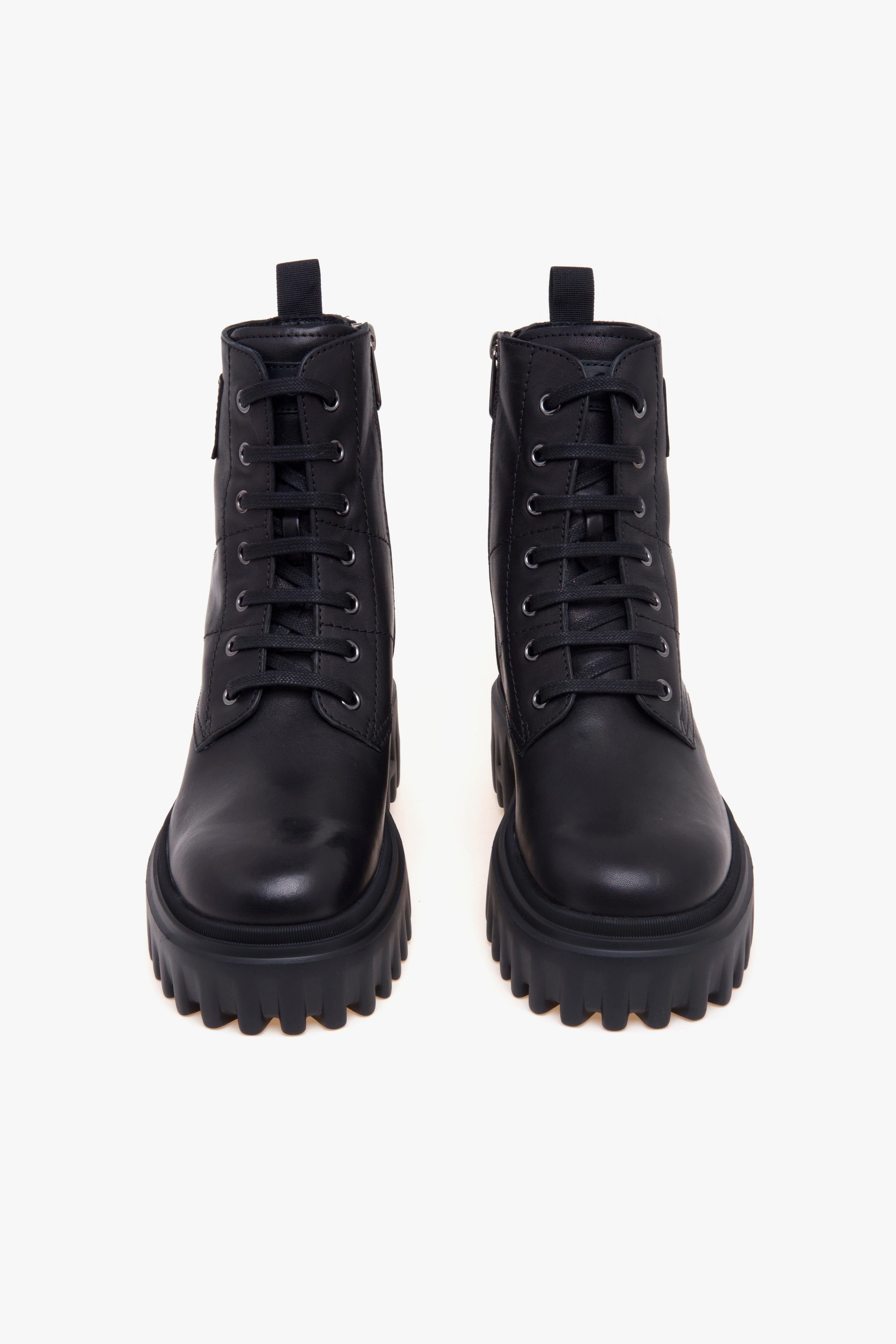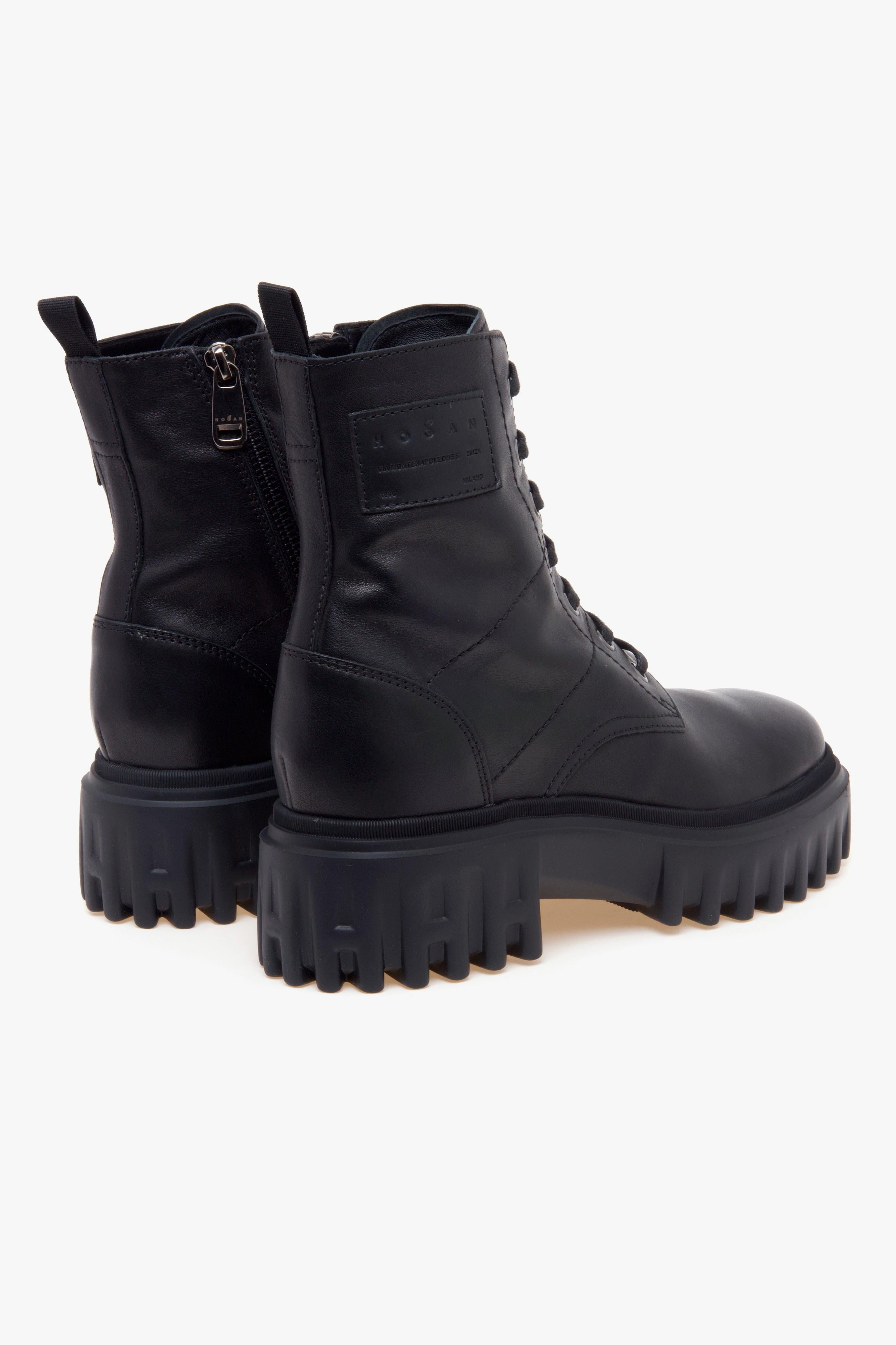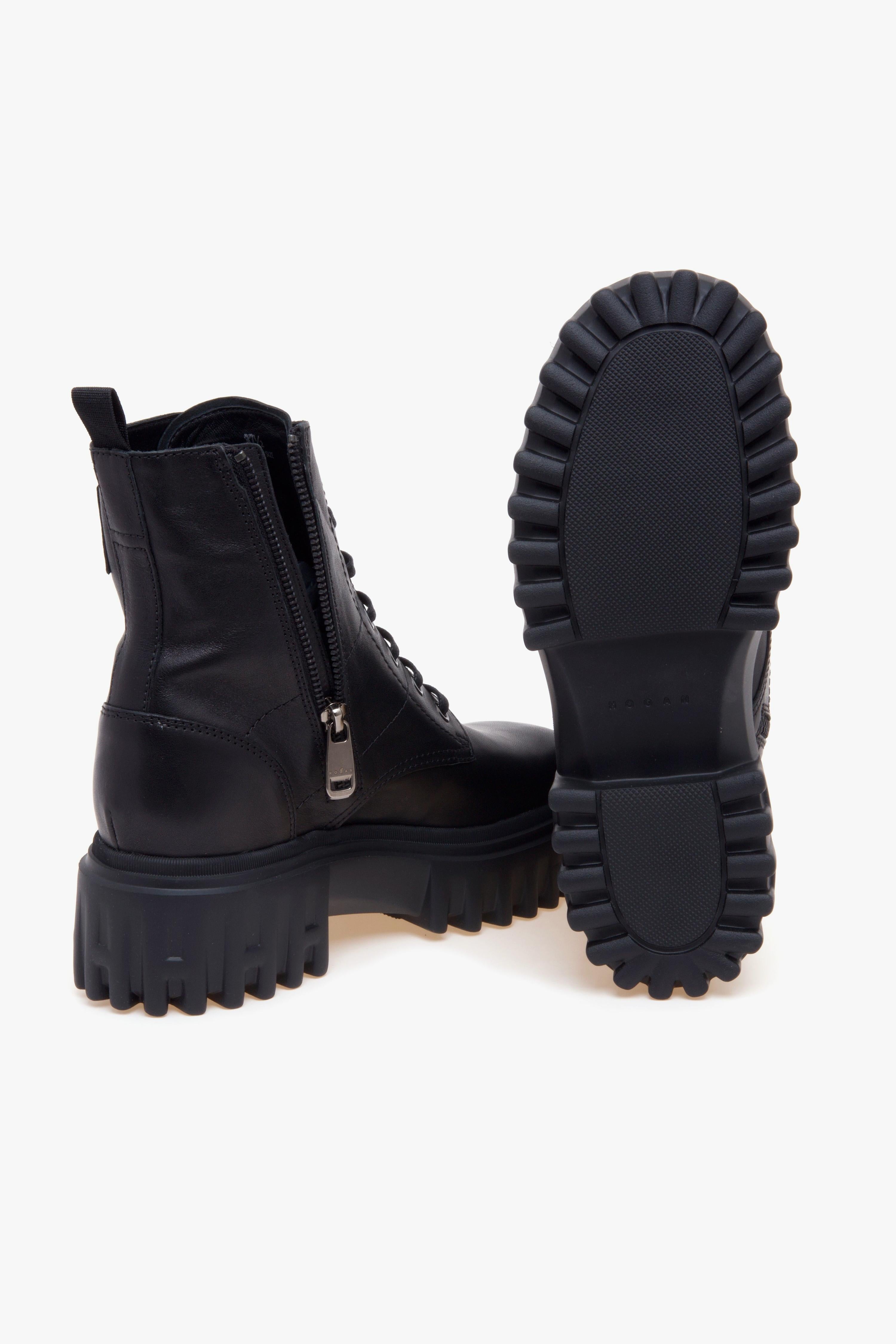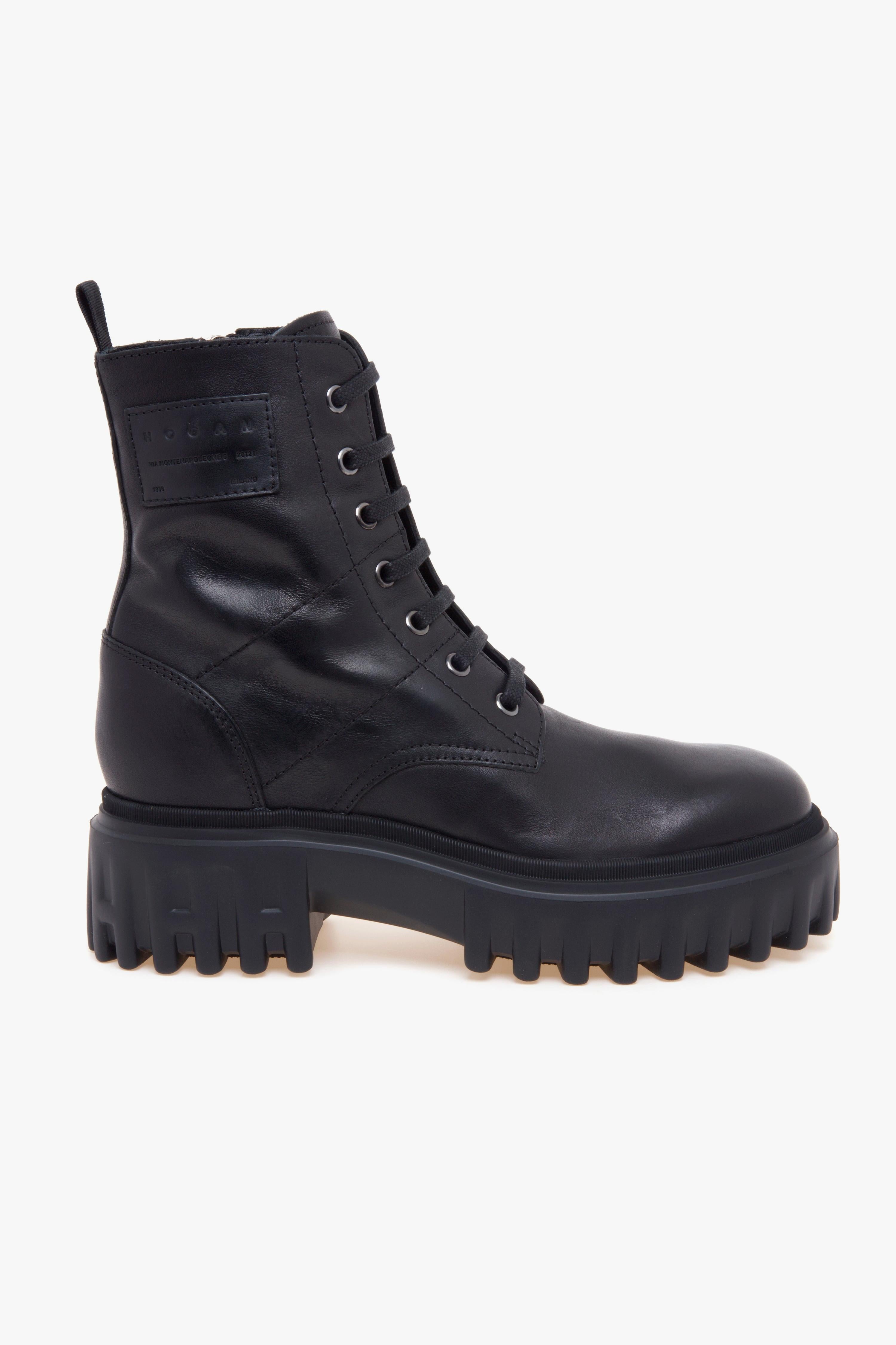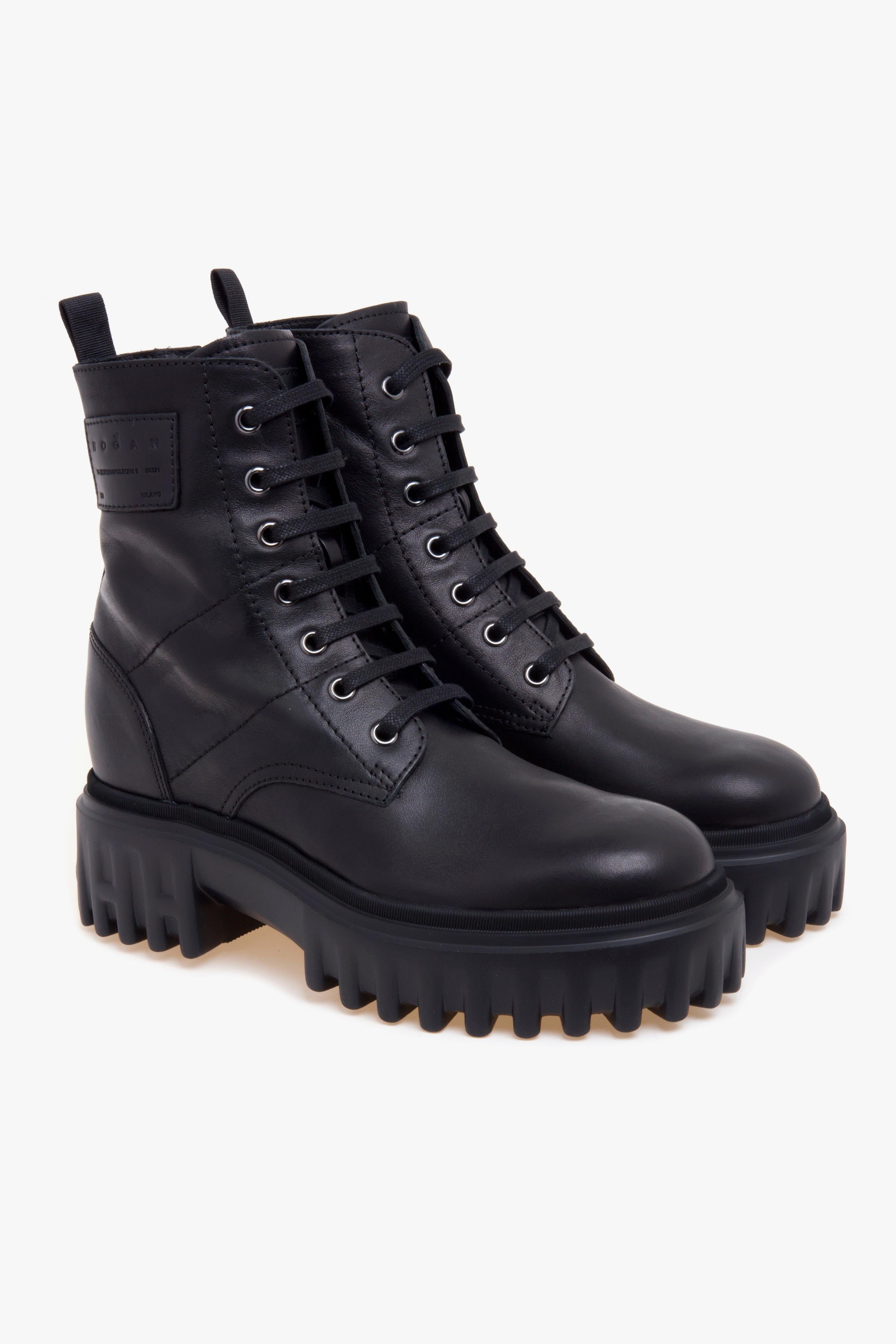 il nuovo combat boot in pelle firmato Hogan combina l’appeal deciso del mondo military con l’eleganza sobria che contraddistingue il brand. La tomaia, realizzata in pelle morbida e dal look opaco, lo rende estremamente versatile e facile da abbinare. A impreziosire il gambale, un inserto realizzato in pelle con logo Hogan stampato e applicato lateralmente per un tocco di personalità che non passa inosservato.La suola in gomma leggera riprende l’iconico design della sneaker H-Stripes, con motivo a righe verticali che si estende fino al tacco, dove le scanalature si trasformano in una “H” stilizzata. Un dettaglio tecnico ed estetico che valorizza la calzatura con un gioco tridimensionale sofisticato.La struttura compatta dell’anfibio garantisce una calzata stabile e sicura, mentre la fodera interna in pelle assicura comfort e traspirabilità anche durante l’uso prolungato. Il sottopiede in memory foam si adatta alla forma del piede, offrendo un’ammortizzazione su misura e un’ottima sensazione di benessere a ogni passo.Versatile e contemporaneo, è il modello perfetto per chi cerca una calzatura solida ma raffinata, capace di accompagnare look casual e urbani con carattere e personalità.Caratteristiche principali:# Tomaia in pelle.# Inserto laterale in pelle con logo Hogan stampato.# Suola in gomma leggera con motivo a righe verticali e “H” stilizzata sul tacco.# Fodera in pelle traspirante.# Sottopiede in memory foam per comfort personalizzato.# Made in ItalyIdeale per la stagione fredda, l’anfibio Hogan unisce funzionalità, stile e artigianalità italiana in una proposta dal forte impatto visivo.
