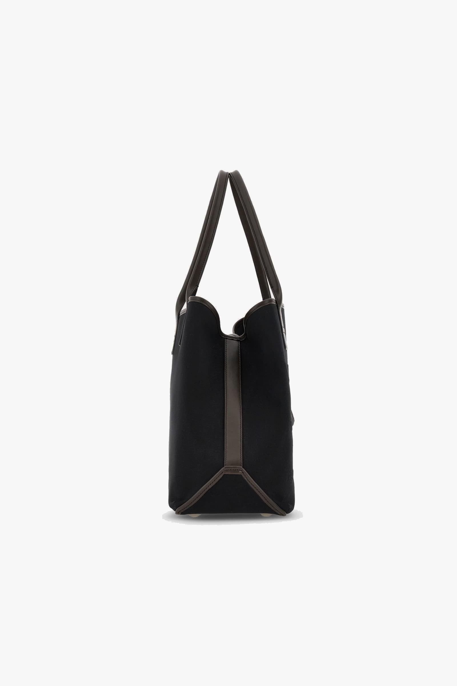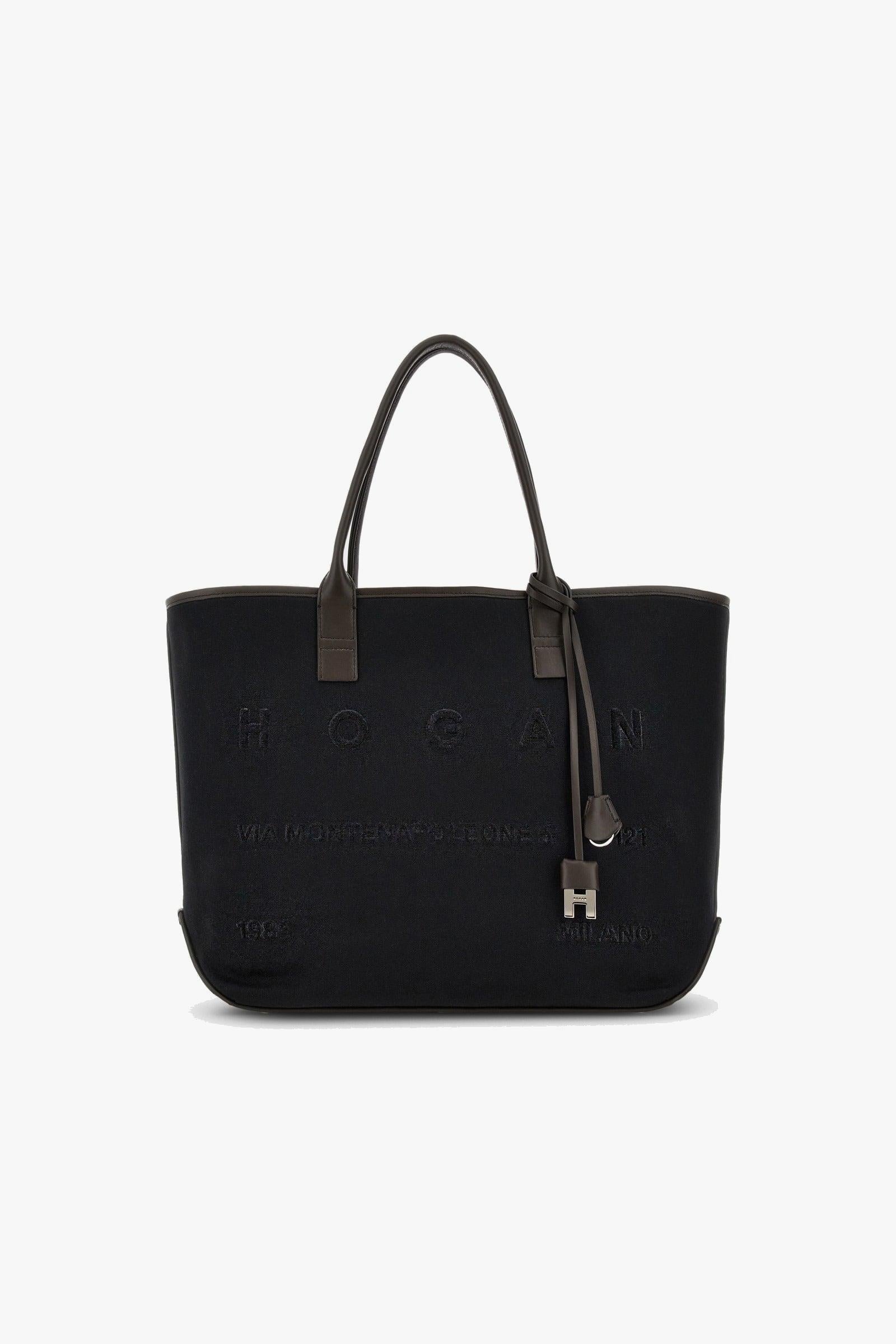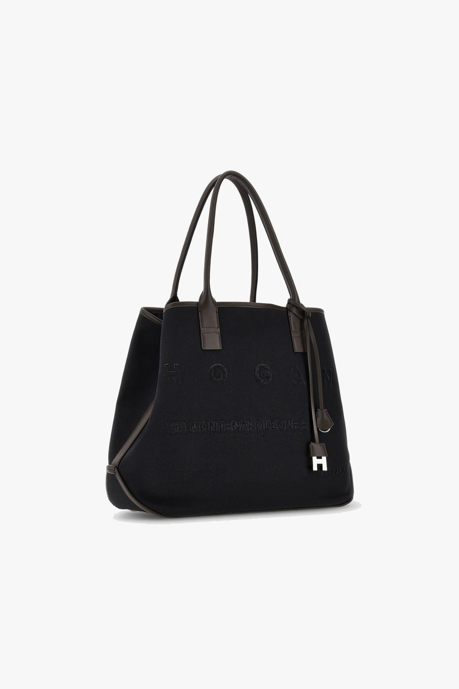 La shopping bag Hogan Script si evolve in una versione dal carattere più dinamico e leggero, realizzata in tessuto ed impreziosita con inserti in pelle che ne definiscono struttura e raffinatezza. Un modello versatile, perfetto per completare look quotidiani con stile e funzionalità.Ampia e organizzata, la borsa presenta un vano centrale regolabile con laccetti, ideale per modulare lo spazio interno secondo le esigenze della giornata. Il manico fisso in pelle liscia garantisce comfort e solidità, mentre la base rinforzata in pelle con piedini metallici assicura stabilità e protezione durante l’uso.L’identità del brand si esprime attraverso il logo in rilievo con l’indirizzo Hogan sulla parte frontale, dettaglio discreto ma distintivo. Completano il design il charm H-Fob in metallo rivestito e il pendente portachiavi, accessori pratici e decorativi che arricchiscono il look con funzionalità extra.Dotata di bustina interna removibile, questa shopping bag è la compagna ideale per affrontare la routine urbana con eleganza informale e qualità artigianale.Caratteristiche principali:# Tessuto tecnico con inserti in pelle.# Manico fisso in pelle liscia.# Base rinforzata in pelle con piedini in metallo.# Chiusura con laccetti regolabili.# Logo Hogan in rilievo con indirizzo Monte Napoleone.# Charm H-Fob in metallo e pendente portachiavi con anello.# Bustina interna removibile.# Dimensioni: 50 x 30 x 15,5 cm.# Custodia in tessuto e indicazioni per la cura incluse.# Made in Italy.Una borsa dall’anima urbana, pensata per chi cerca leggerezza, capienza e dettagli sofisticati in un’unica soluzione di stile.