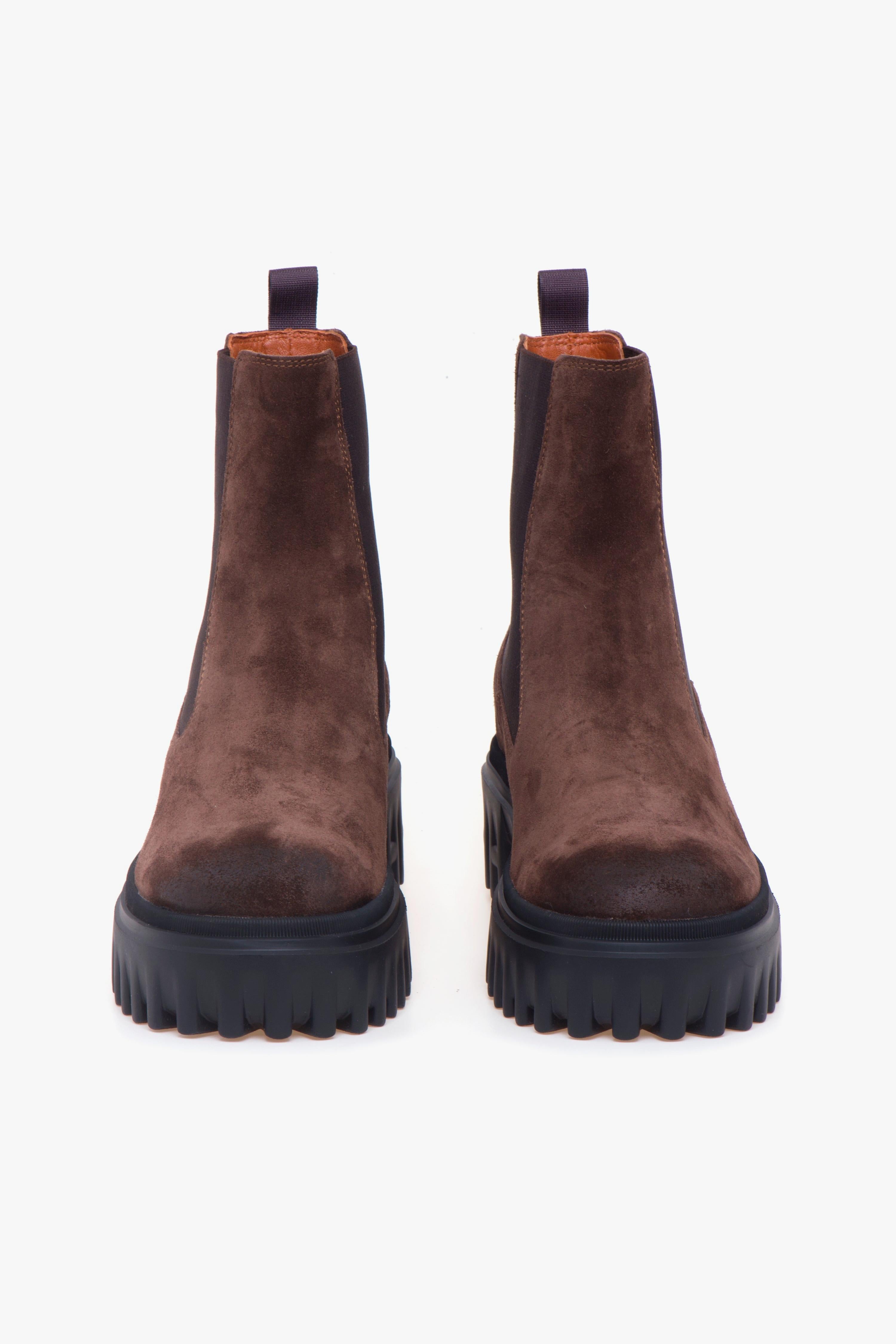 Il nuovo Chelsea boot firmato Hogan è realizzato in camoscio premium e combina l’essenzialità del design classico con dettagli innovativi che ne esaltano unicità e attualità. La tomaia presenta una sfumatura leggermente più scura su punta e tallone, che valorizza la texture del materiale e conferisce un aspetto raffinato e ben rifinito.Elemento distintivo del modello è la suola in gomma ispirata all’iconica sneaker H-Stripes: il motivo a righe verticali si estende fino al tacco, dove si trasforma in una “H” stilizzata che richiama il logo del brand. Un dettaglio originale che unisce estetica e identità visiva in modo elegante e moderno.I due elastici laterali, tono su tono con la tomaia, rendono la calzata semplice e garantiscono un’ottima aderenza al piede, mantenendo lo stile essenziale e pulito che caratterizza il Chelsea boot.All’interno, la fodera in pelle morbida e traspirante assicura il giusto microclima, mentre il sottopiede in memory foam offre una calzata ammortizzata e su misura, pensata per un comfort prolungato durante tutta la giornata.Leggero, sofisticato e incredibilmente versatile, questo Chelsea boot rappresenta una sintesi perfetta tra artigianalità italiana e design urbano contemporaneo.Caratteristiche principali:# Tomaia in camoscio ingrassato su punta e tallone.# Elastici laterali tono su tono per una calzata facilitata.# Suola in gomma leggera con motivo a righe verticali e “H” ripetuta sul tacco.# Fodera interna in pelle.# Sottopiede in memory foam per massimo comfort.# Made in Italy.Perfetto per la stagione autunno-inverno, questo Chelsea boot Hogan aggiunge un tocco di eleganza funzionale a ogni look.