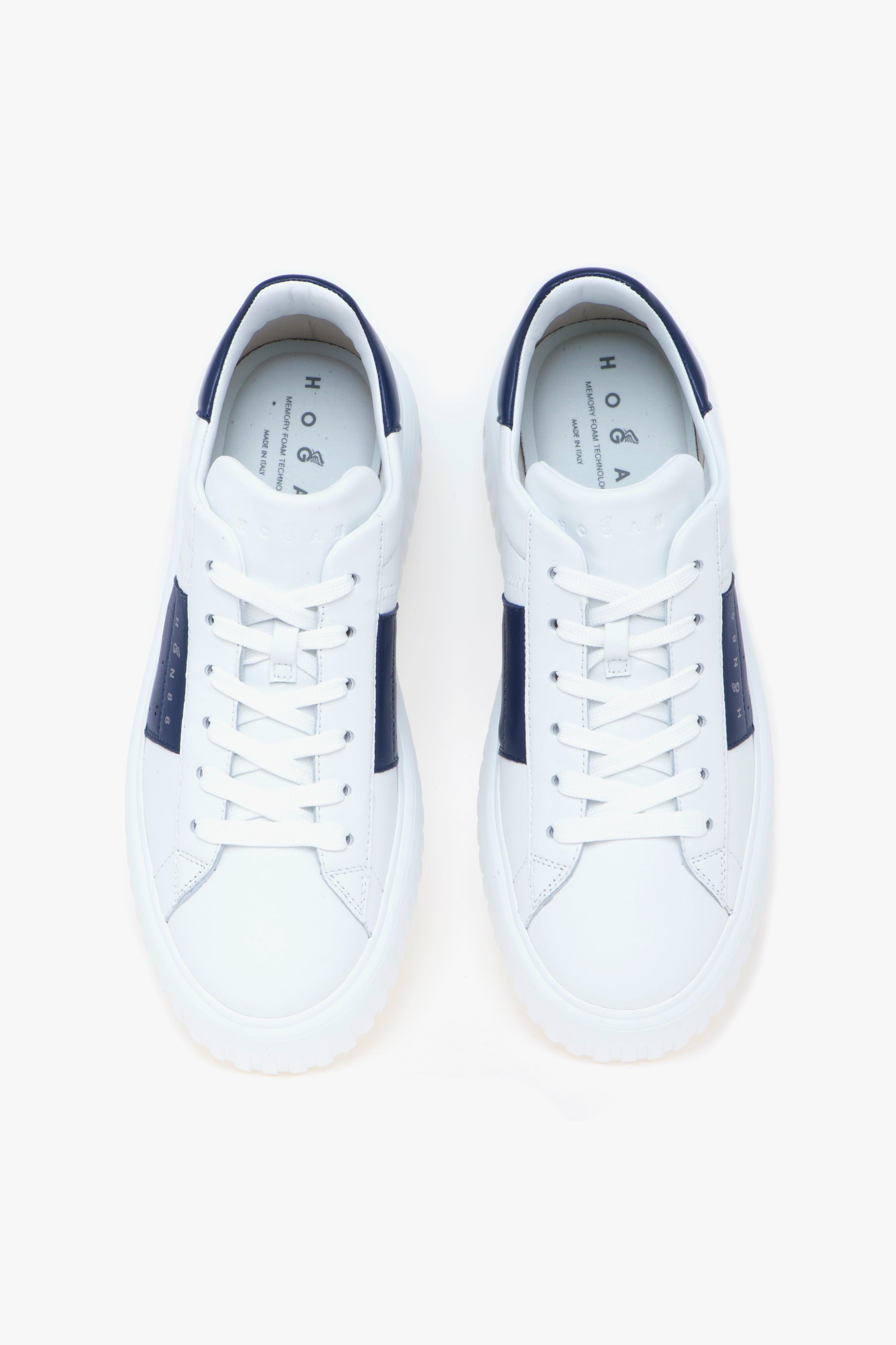 Hogan H-Stripes è una sneaker in pelle che combina semplicità e design innovativo con dettagli stilistici che la rendono unica e riconoscibile a ogni passo. Presenta una innovativa suola in gomma extra light, leggera e flessibile, che garantisce una camminata comoda e sicura mentre il motivo a righe verticali aggiunge un tocco moderno e di design. Lateralmente, al posto dell'iconica "H" imbottita, è presente una fascia in pelle dal colore a contrasto impreziosita con stampato il nuovo logo Hogan che le conferisce un aspetto distintivo e sofisticato. La sneaker H-Stripes è dotata di un sottopiede in memory foam, che si adatta alla forma del tuo piede, offrendo un supporto personalizzato e un'ammortizzazione superiore. Grazie a questa caratteristica, potrai camminare o stare in piedi per lunghe ore senza avvertire alcun disagio. # Tomaia in pelle. # Fodera in tessuto e pelle. # Sottopiede in memory. # Suola in gomma extra light. # Made in Italy.