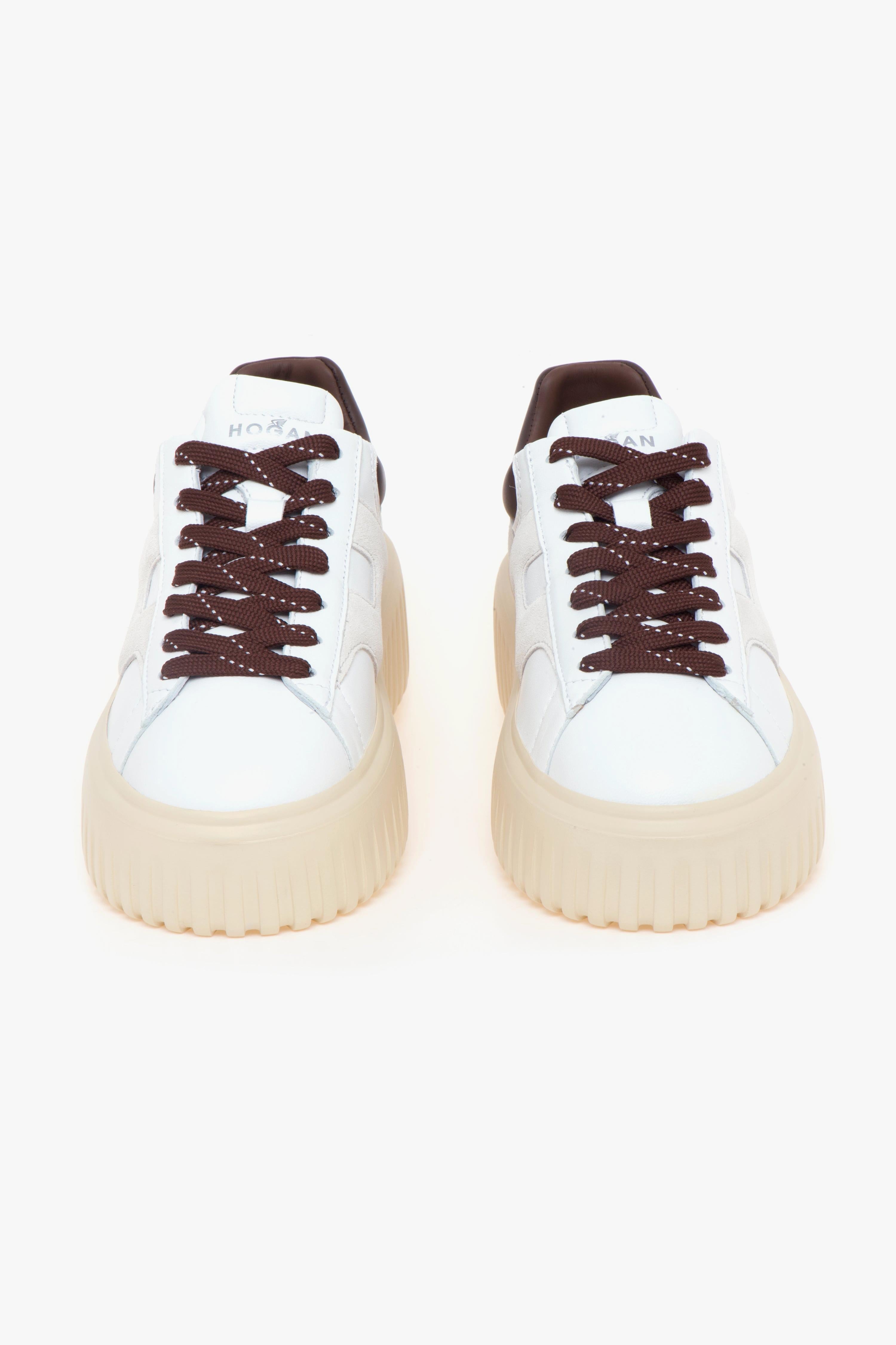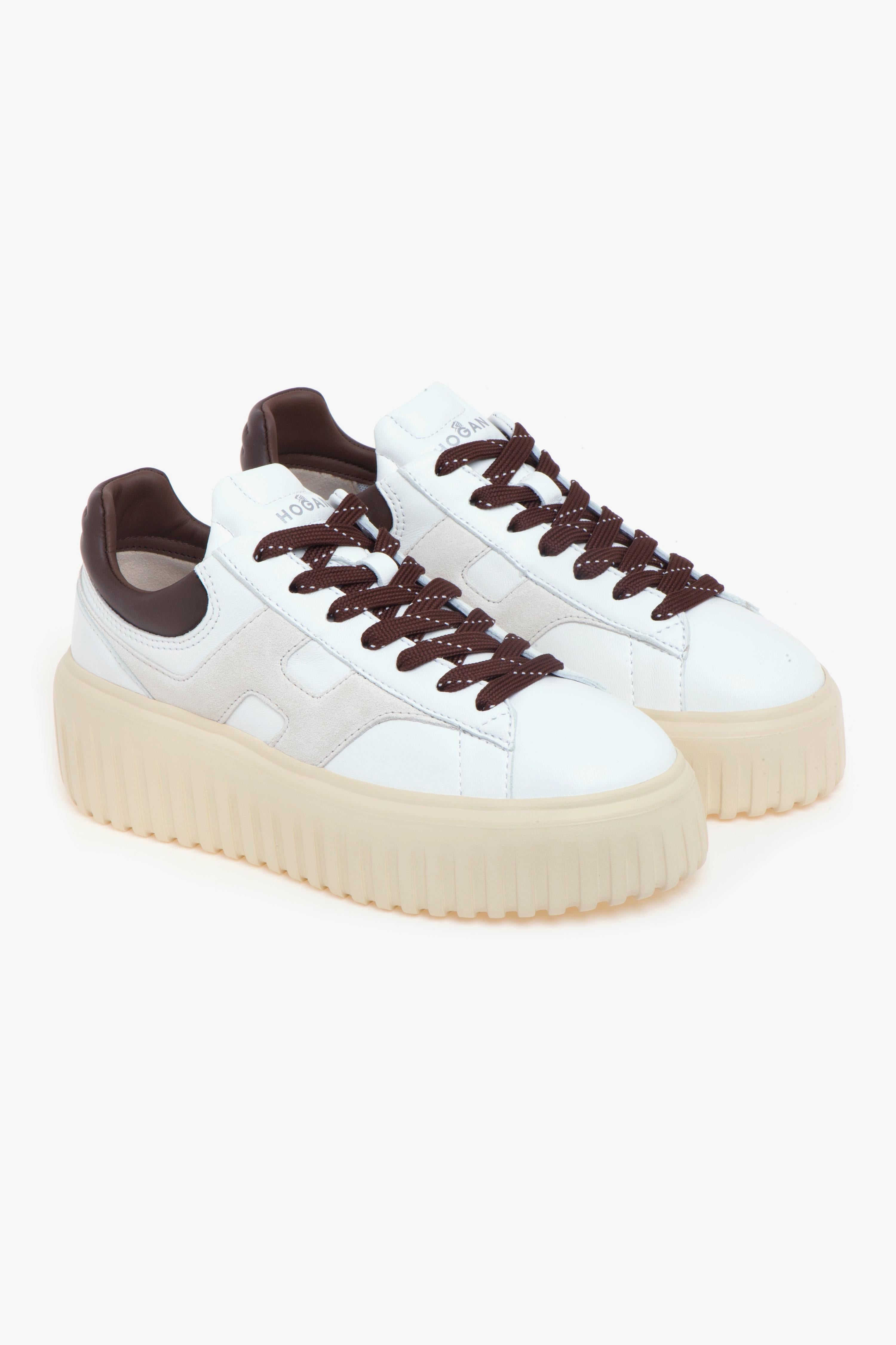 Le nuove Hogan H-Stripes si rinnovano con una combinazione di materiali pregiati e dettagli sofisticati, mantenendo l’inconfondibile design essenziale e contemporaneo che ha reso questo modello un’icona.La tomaia è realizzata in morbida nappa bianca, impreziosita dalla “H” laterale imbottita in camoscio beige, che dona alla sneaker un tocco elegante e ricercato. Il talloncino in pelle Testa di Moro aggiunge un raffinato contrasto cromatico, esaltando la cura per i dettagli tipica del marchio.La calzatura è completata da una suola in gomma extra light color crema, leggera e resistente, con un moderno motivo a righe verticali che le dona un’estetica dinamica.All’interno, il sottopiede in memory foam garantisce un’ammortizzazione superiore, adattandosi alla forma del piede per un comfort prolungato anche dopo molte ore in piedi.Perfette per completare look casual-chic o per aggiungere un tocco sofisticato a outfit più informali, le H-Stripes sono l’ideale per chi desidera unire stile italiano, comodità e versatilità.Caratteristiche principali:# Tomaia in nappa bianca con “H” laterale in camoscio beige.# Talloncino in pelle Testa di Moro.# Suola in gomma extra light color crema, con righe verticali.# Sottopiede in memory foam per comfort su misura.# Fodera interna in tessuto traspirante.# Design e qualità Made in Italy.Scopri la nuova versione delle Hogan H-Stripes e lasciati conquistare da uno stile senza tempo e dal comfort che dura tutto il giorno.