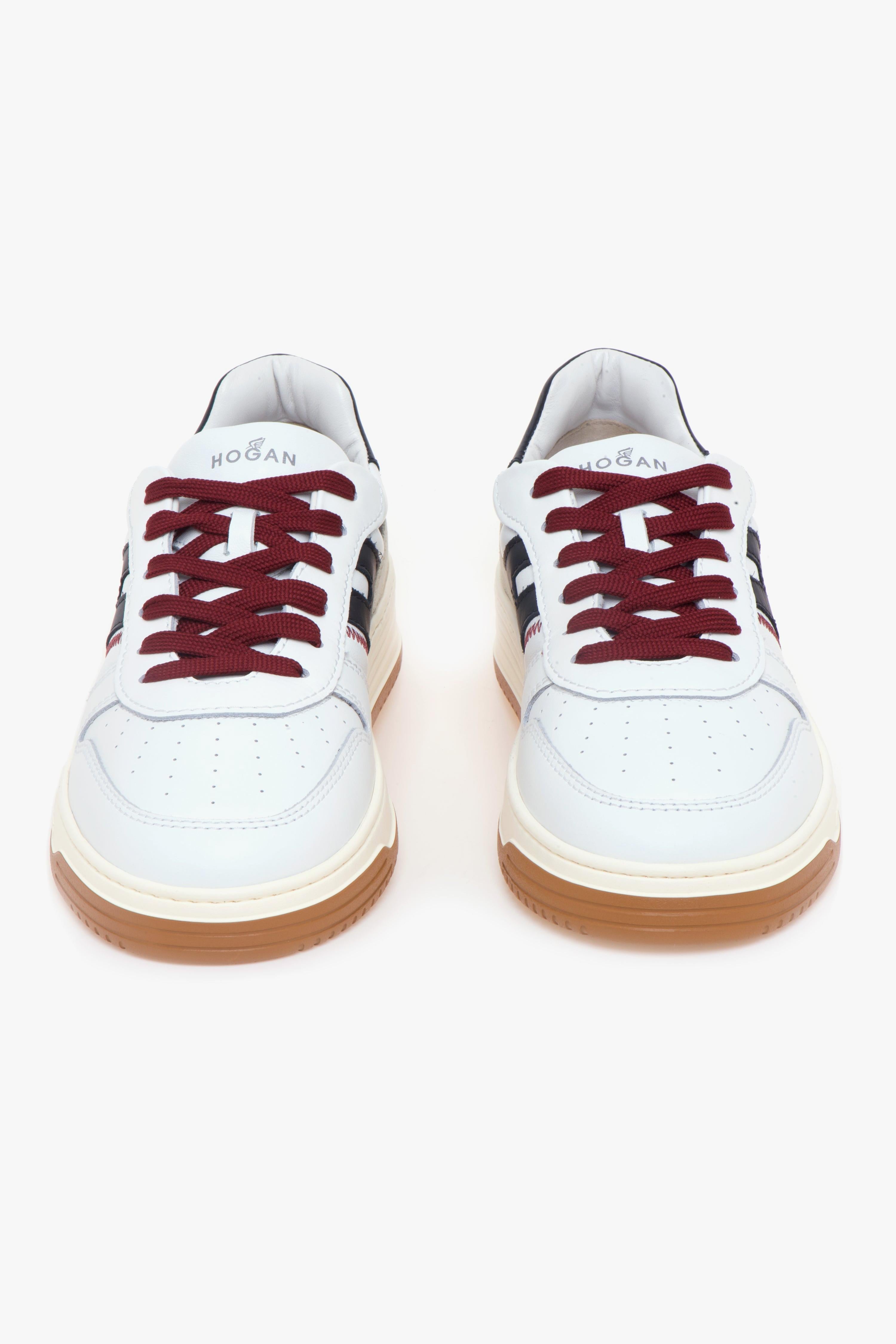 Le Hogan H630 reinterpretano il mondo delle sneaker da basket anni ’80 in chiave contemporanea, fondendo linee rétro e materiali di pregio in un modello pensato per un pubblico trasversale, dinamico e attento al dettaglio.La tomaia, realizzata in nappa bicolore, si distingue per un contrasto elegante e discreto, perfetto per elevare l’estetica della sneaker senza rinunciare alla versatilità. L’iconica “H” laterale si inserisce armoniosamente nella struttura della scarpa, prolungandosi verso il tallone con un segno grafico distintivo che rende omaggio alla tradizione del brand.Pensata per offrire il massimo comfort, la H630 è dotata di fodera in pelle e tessuto, che assicura traspirabilità e morbidezza al contatto con il piede, mentre la soletta in memory foam da 9 mm garantisce una calzata ammortizzata e su misura. La suola in EVA extralight, leggera e flessibile, favorisce una camminata fluida e naturale, migliorando il comfort durante l’uso quotidiano.Caratteristiche principali:# Tomaia in nappa bicolore.# “H” laterale in pelle liscia.# Fodera in pelle e tessuto traspirante.# Sottopiede in memory foam da 9 mm.# Suola in gomma EVA extralight, altezza totale 3,8 cm.# Made in Italy.# Custodia in tessuto e lacci aggiuntivi inclusiConsiglio di stile:La combinazione cromatica e la silhouette sportiva rendono le Hogan H630 perfette sia con jeans o pantaloni cargo, una t-shirt a tinta unita e un bomber leggero, sia abbinate a un look più maturo con chino neutri, maglia in cotone fine e una giacca in pelle o in tessuto tecnico. Una sneaker pensata per adattarsi con naturalezza a stili diversi, dall’easywear quotidiano all’urban smart.