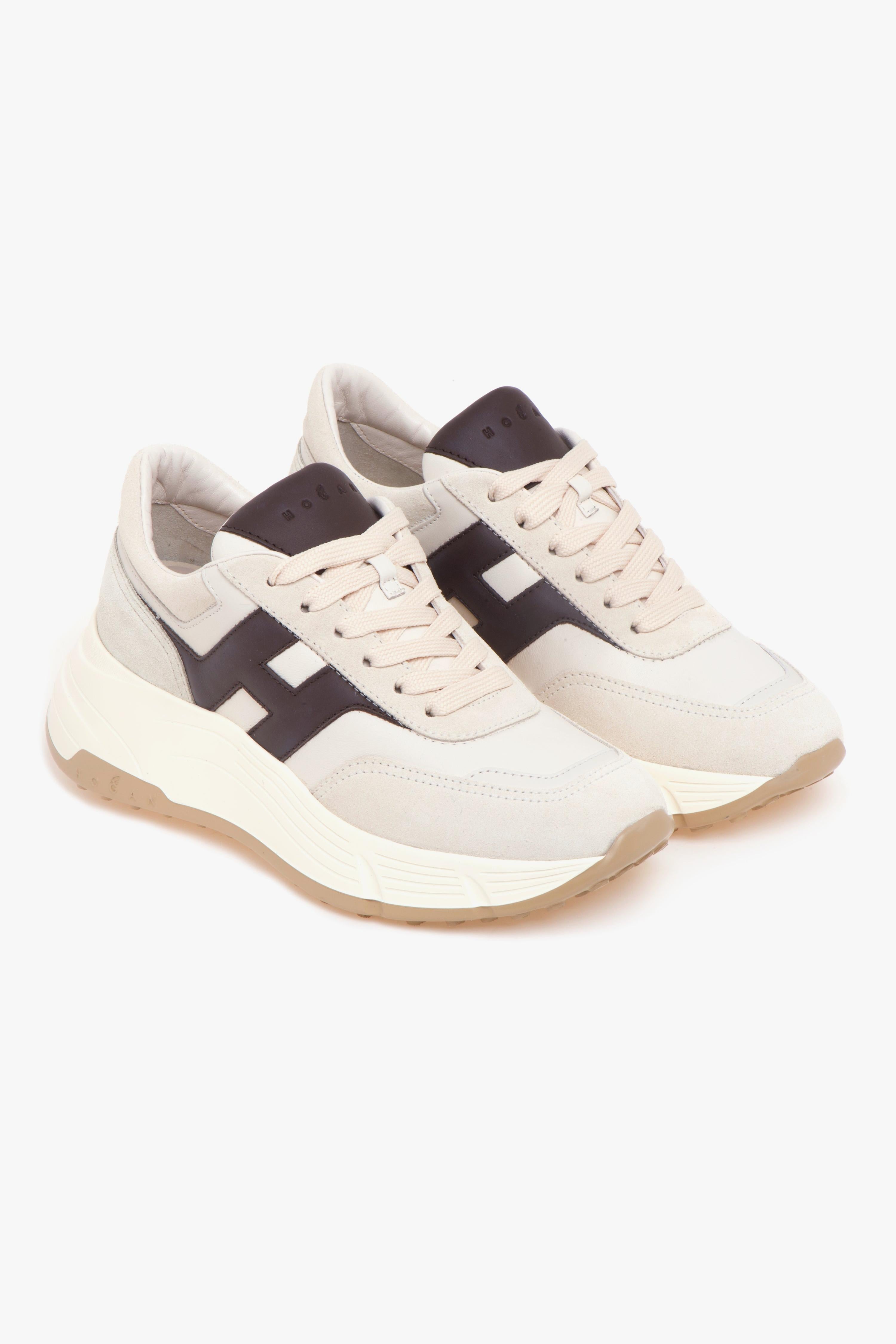 La sneaker Hogan Hi-Fi esprime un’eleganza disinvolta grazie al fondo Hyperlight rialzato, leggero e flessibile, che enfatizza la linea senza appesantire il passo. La tomaia, in pregiato camoscio e nappa tono su tono, è animata dalla maxi “H” a contrasto, firma iconica del brand e punto focale di un design essenziale ma ricercato. All’interno, fodera traspirante e sottopiede in memory-foam avvolgono il piede con un comfort adattivo, mentre la suola di 6,5 cm con micro-tacchetti assicura grip ottimale su ogni superficie. Versatile per natura, Hi-Fi abbina alla perfezione stile urbano e funzionalità Made in Italy, rendendola la sneaker da donna ideale tanto per la giornata in ufficio quanto per il tempo libero.Consiglio di stile: valorizzarla con un pantalone culotte in lana leggera e un blazer boxy, oppure con un abito midi plissé e trench oversize per un look casual-chic dall’impronta contemporanea.# Tomaia in camoscio e pelle.# Fodera in tessuto.# Sottopiede in memory-foam.# Suola leggera in gomma.# Battistrada in colore a contrasto.# Altezza totale della suola: 6,5 cm.# Made in Italy.