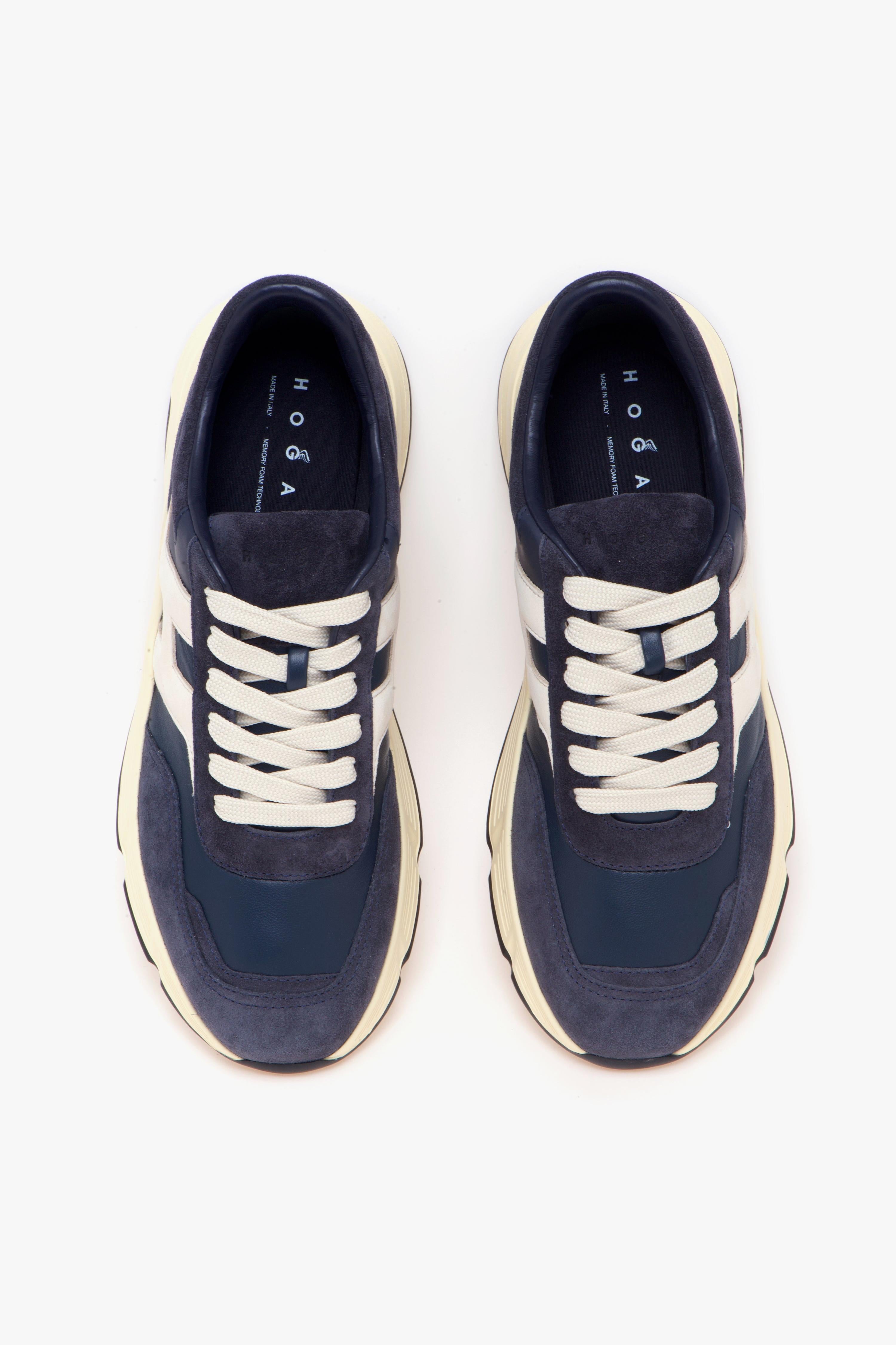 Le Hogan Hyperlight da uomo si rinnovano con un’estetica ancora più essenziale e decisa, ideale per chi predilige uno stile pulito, dinamico e senza eccessi. In questa versione, la sneaker si distingue per l’iconica maxi “H” laterale a contrasto, elemento grafico che dona carattere al design e ne sottolinea l’identità.La tomaia è realizzata in un mix di camoscio e nappa liscia, con dettagli in pelle tono su tono e a contrasto, che conferiscono un aspetto minimal ma ricercato. Le linee fluide e la costruzione leggera richiamano il mondo running, reinterpretato in chiave urbana per offrire uno stile trasversale e versatile.Pensata per l’uso quotidiano, la sneaker è dotata di una fodera in tessuto traspirante e di una soletta in memory foam da 8 mm, che si adatta alla forma del piede e garantisce un comfort duraturo anche durante lunghe giornate in movimento.La suola extralight in gomma con battistrada a tasselli assicura stabilità, aderenza e un passo naturale, mentre l’altezza complessiva di 4,5 cm offre slancio e supporto senza appesantire il profilo della calzatura.Caratteristiche principali:# Tomaia in camoscio e nappa liscia.# Maxi H laterale a contrasto in nabuck.# Fodera in tessuto traspirante.# Sottopiede in memory foam da 8 mm# Suola in gomma extralight con tasselli.# Altezza totale: 4,5 cm.# Made in Italy.# Lacci aggiuntivi e custodia in tessuto inclusi.Consiglio di stile:Per un look sportivo e rilassato, sono ideali con pantaloni jogger tecnici, una t-shirt a tinta unita e una giacca leggera in softshell. In alternativa, indossale con jeans dritti o chinos in cotone pesante, maglia in lana a collo alto o un pullover in merino, abbinati a un cappotto corto in panno o a una giacca trapuntata. Una combinazione che valorizza la sneaker in chiave urbana, ideale per affrontare le giornate più fresche con comfort e stile.