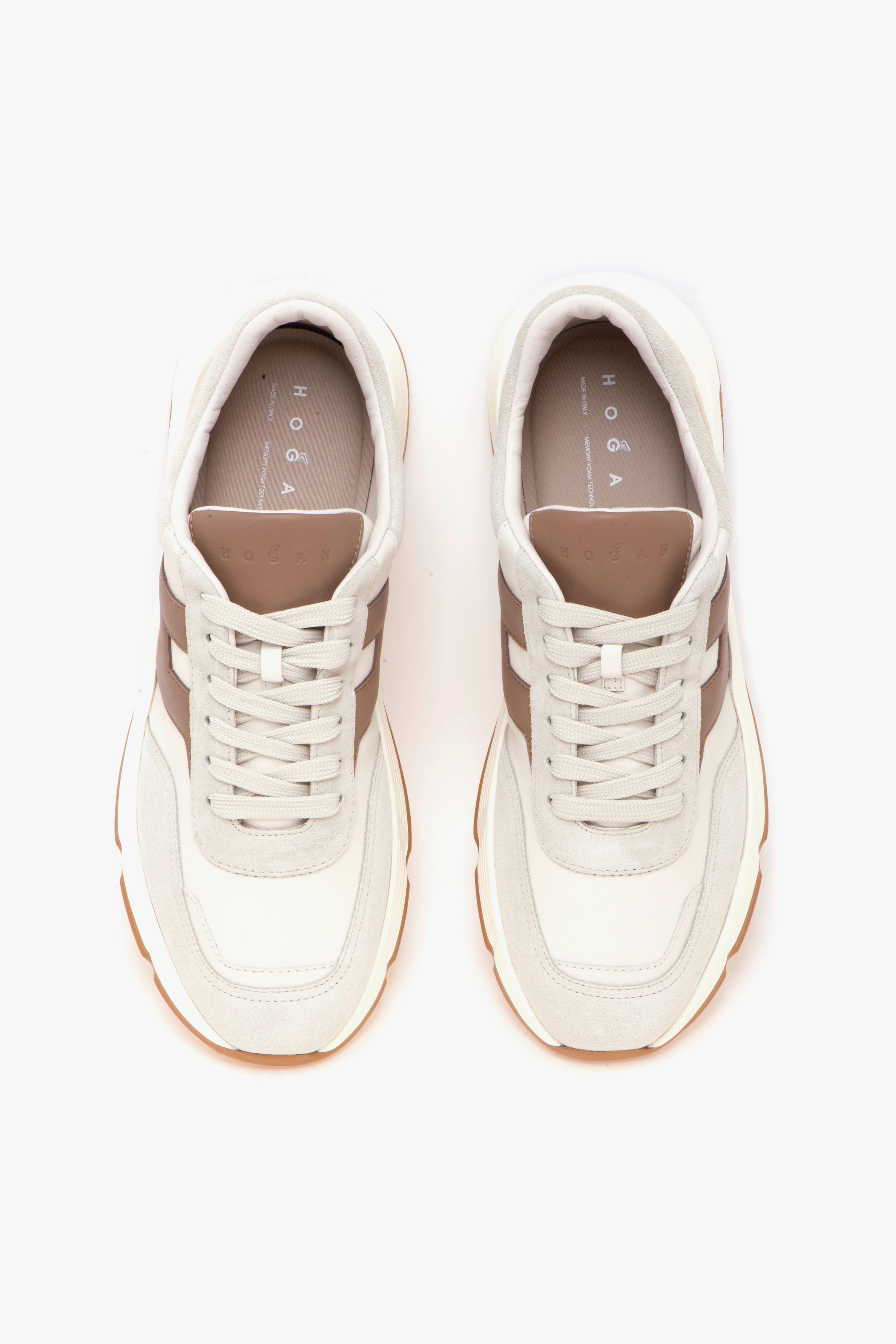 Le Hogan Hyperlight da uomo si rinnovano con un’estetica ancora più essenziale e decisa, ideale per chi predilige uno stile pulito, dinamico e senza eccessi. In questa versione, la sneaker si distingue per l’iconica maxi “H” laterale a contrasto, elemento grafico che dona carattere al design e ne sottolinea l’identità.La tomaia è realizzata in un mix di camoscio e nappa liscia, con dettagli in pelle tono su tono e a contrasto, che conferiscono un aspetto minimal ma ricercato. Le linee fluide e la costruzione leggera richiamano il mondo running, reinterpretato in chiave urbana per offrire uno stile trasversale e versatile.Pensata per l’uso quotidiano, la sneaker è dotata di una fodera in tessuto traspirante e di una soletta in memory foam da 8 mm, che si adatta alla forma del piede e garantisce un comfort duraturo anche durante lunghe giornate in movimento.La suola extralight in gomma con battistrada a tasselli assicura stabilità, aderenza e un passo naturale, mentre l’altezza complessiva di 4,5 cm offre slancio e supporto senza appesantire il profilo della calzatura.Caratteristiche principali:# Tomaia in camoscio e nappa liscia.# Maxi H laterale a contrasto in pelle.# Fodera in tessuto traspirante.# Sottopiede in memory foam da 8 mm# Suola in gomma extralight con tasselli.# Altezza totale: 4,5 cm.# Made in Italy.# Lacci aggiuntivi e custodia in tessuto inclusi.Consiglio di stile:Per un look sportivo e rilassato, sono ideali con pantaloni jogger tecnici, una t-shirt a tinta unita e una giacca leggera in softshell. In alternativa, indossale con jeans dritti o chinos in cotone pesante, maglia in lana a collo alto o un pullover in merino, abbinati a un cappotto corto in panno o a una giacca trapuntata. Una combinazione che valorizza la sneaker in chiave urbana, ideale per affrontare le giornate più fresche con comfort e stile.