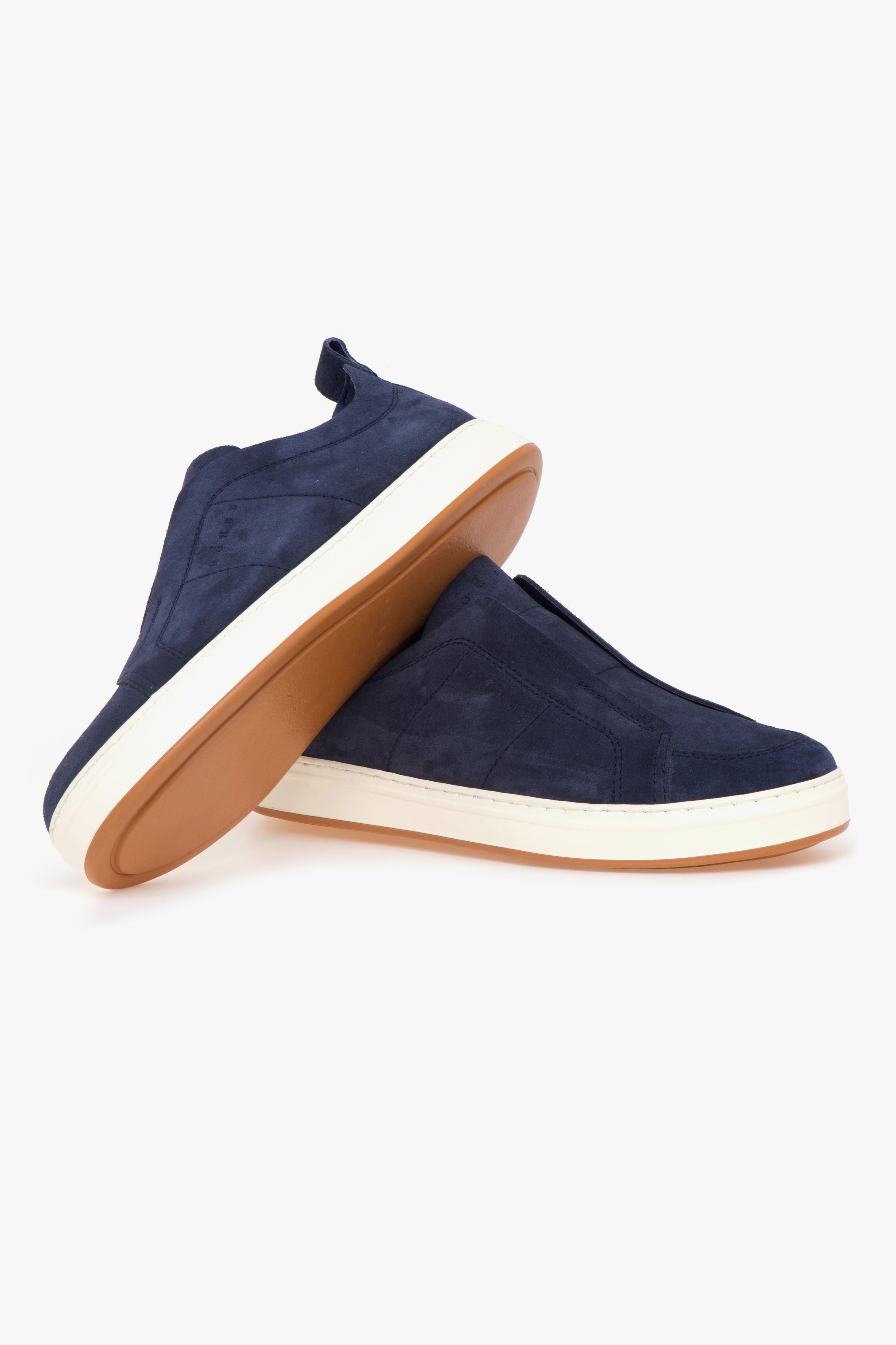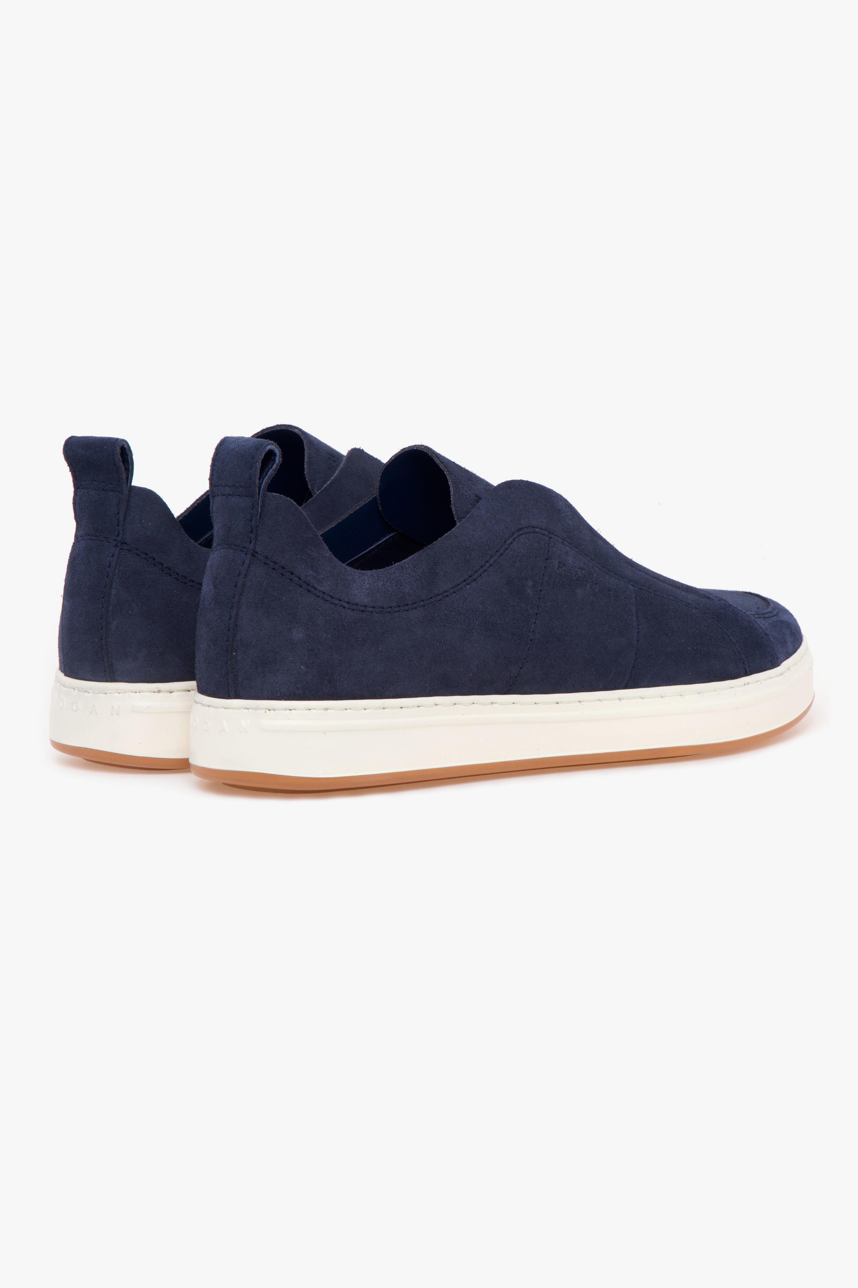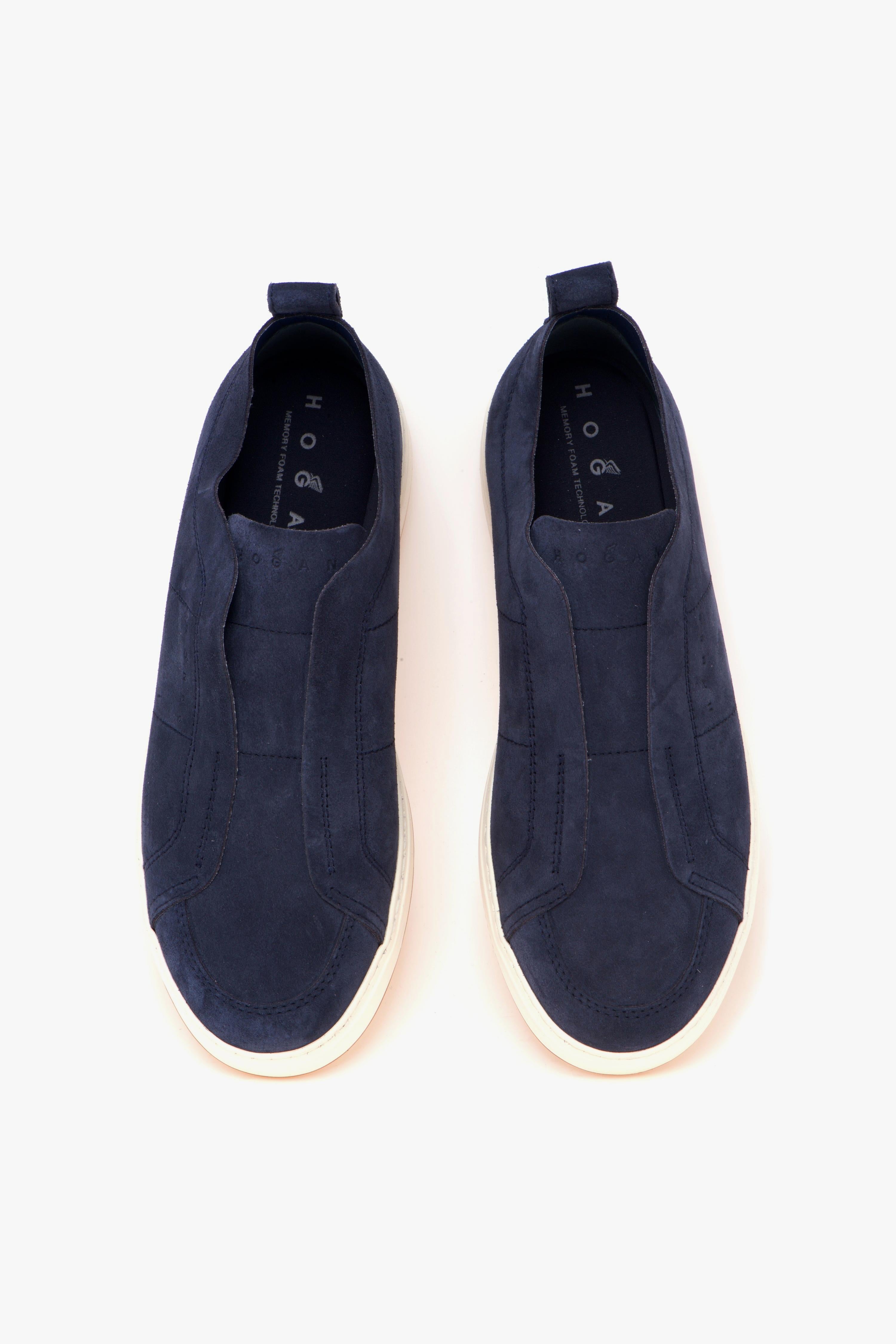 La Hogan H668 Slip-On è una sneaker senza lacci che unisce stile e praticità, realizzata interamente in pregiato camoscio blu. Perfetta per chi cerca un look essenziale e versatile, questa slip-on è ideale sia per l'ufficio che per il tempo libero, adattandosi a ogni occasione con eleganza.La tomaia è impreziosita da bordi a taglio vivo, che donano un tocco sofisticato al design. L'assenza di lacci non solo ne esalta la linea pulita, ma rende anche la calzata rapida e confortevole, garantendo massima praticità. Sul lato è presente il nuovo logo Hogan stampato a pressione, un dettaglio distintivo che aggiunge un tocco di classe al modello.La sneaker è dotata di una suola a "cassetta" in gomma leggera con battistrada color caramello a contrasto, che offre un'ottima aderenza e un look moderno.Infine, per facilitare ulteriormente la calzata, è stato aggiunto un pratico laccetto in pelle sul tallone, che permette di indossare agevolmente la scarpa anche senza calzascarpe.Caratteristiche Principali:# Tomaia in camoscio blu senza lacci per uno stile pulito e raffinato.# Fodera in pelle per una sensazione di comfort e traspirabilità.# Sottopiede in memory foam che si adatta al piede per un supporto ottimale.# Suola in gomma a contrasto con battistrada color caramello# Made in Italy, simbolo di qualità e artigianalità.# La suola a cassetta in gomma è in colore a contrasto e presenta un battistrada color caramello.