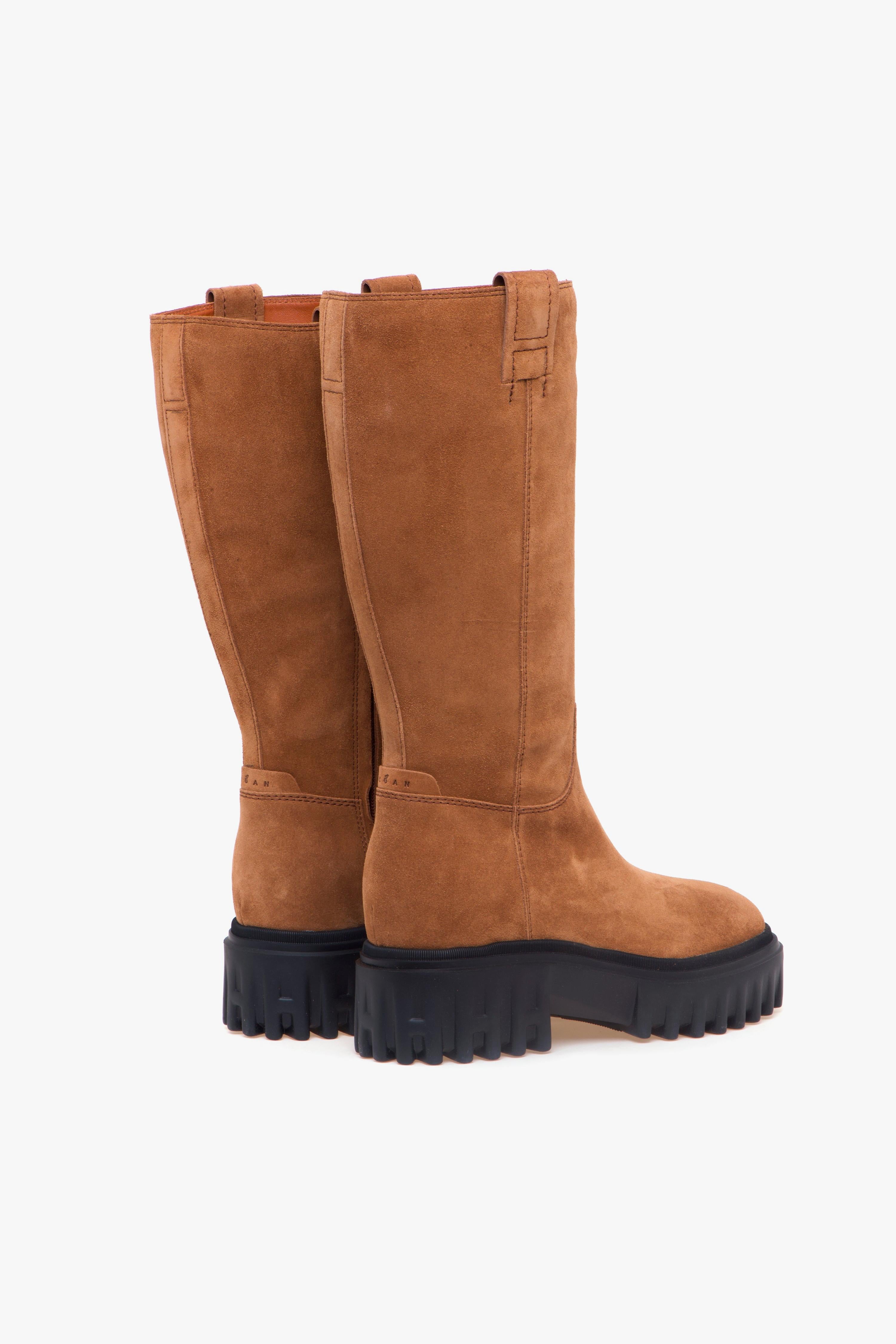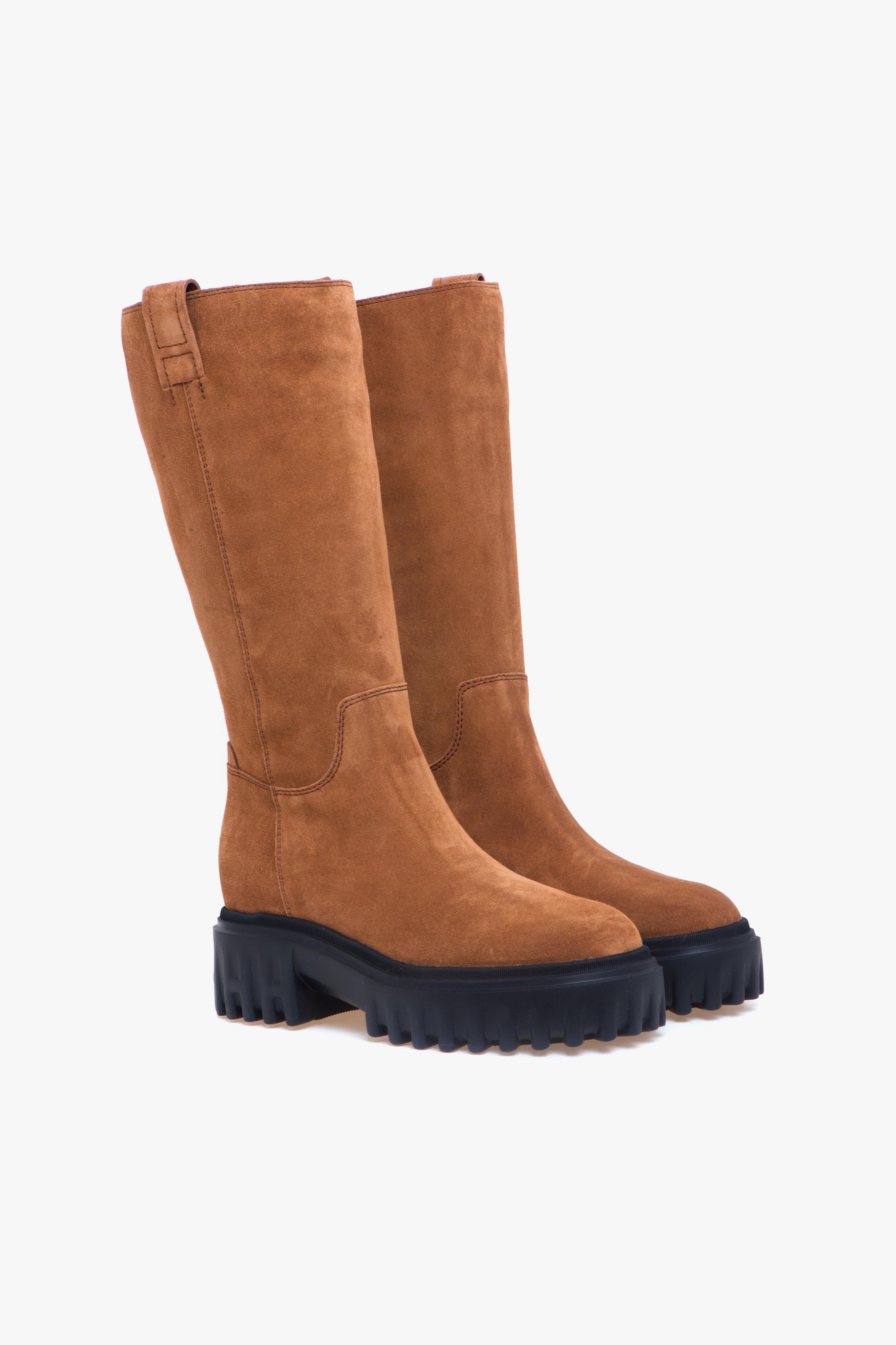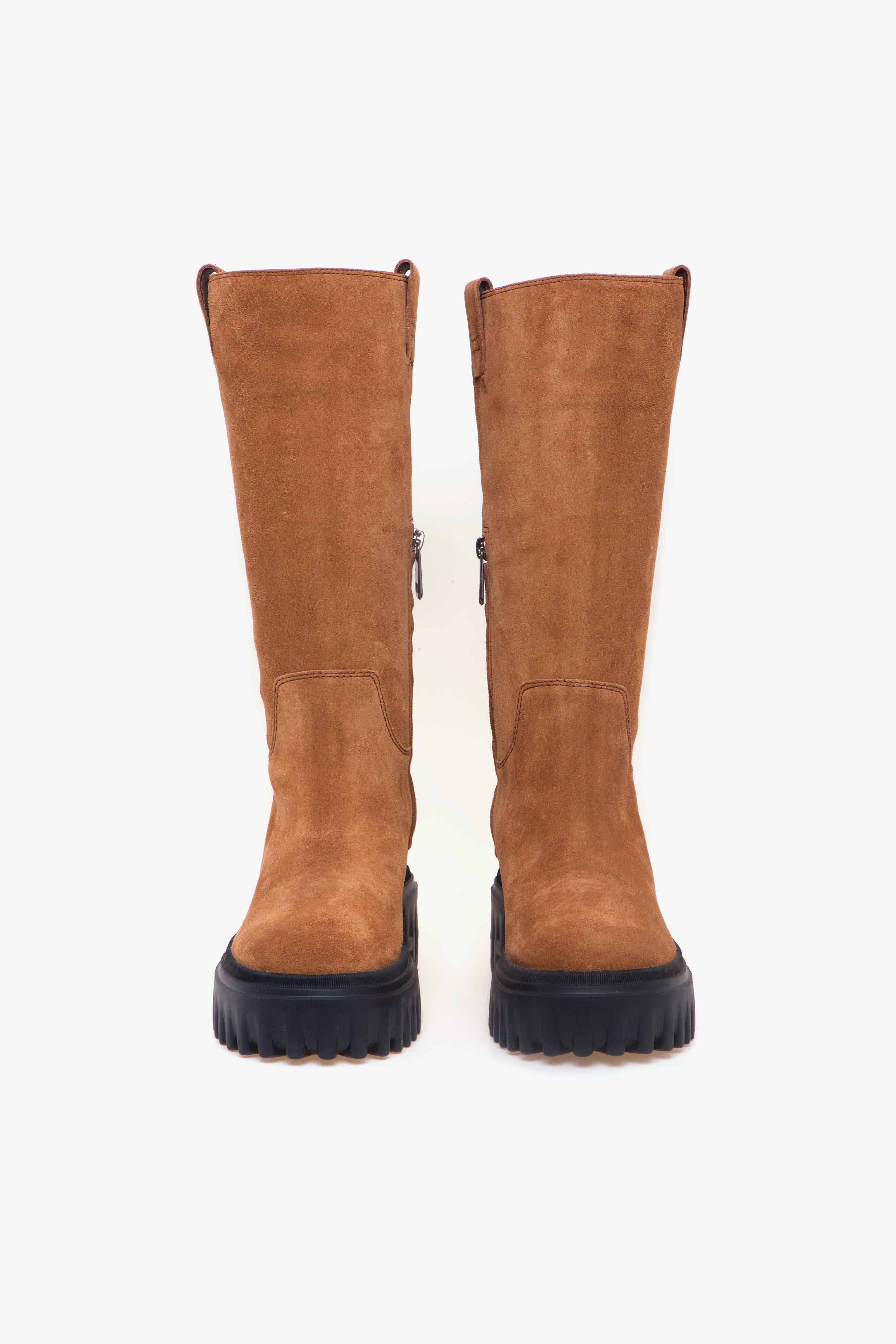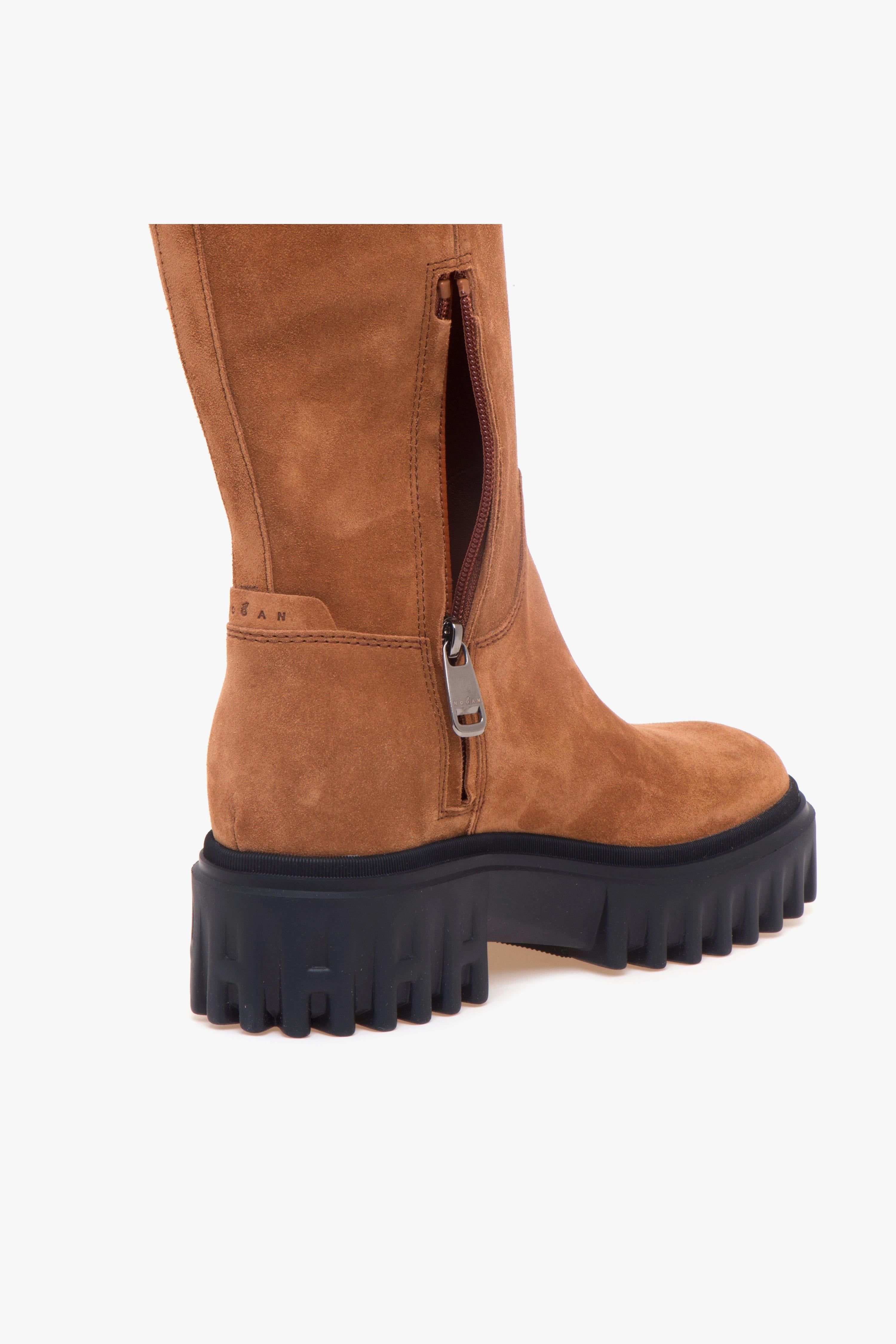 Il nuovo stivale Hogan unisce la pulizia del design classico a dettagli moderni che ne esaltano l’identità. La tomaia in camoscio cammello, con leggere sfumature più scure su punta e tallone, dona profondità alla texture e definisce un’estetica raffinata e curata nei minimi particolari.Il gambale tubolare, garantisce una calzata comoda e una struttura flessibile, ideale per l’uso quotidiano grazie anche alla zip presente sul lato interno.Elemento distintivo del modello è la suola in gomma ispirata all’iconica sneaker H-Stripe di Hogan, con un motivo a righe verticali che culmina nel tacco, dove si trasforma in una "H" stilizzata, richiamo grafico al logo Hogan. Un dettaglio unico che racconta la firma del brand con discrezione e modernità.Internamente, la fodera in pelle offre traspirabilità e una sensazione di comfort prolungato, mentre il sottopiede in memory foam assicura un’ammortizzazione su misura, seguendo ogni passo con leggerezza e supporto.Pensato per chi cerca una calzatura funzionale senza rinunciare allo stile, lo stivale Hogan coniuga qualità artigianale italiana, design urbano e comfort contemporaneo in una proposta versatile e distintiva.Caratteristiche principali:# Tomaia in camoscio ingrassato su punta e tallone.# Gambale tubolare con zip.# Suola in gomma leggera con motivo a righe verticali e “H” stilizzata sul tacco.# Fodera interna in pelle.# Sottopiede in memory foam per massimo comfort.# Made in Italy.Perfetto per i mesi più freddi, aggiunge un tocco di sobria eleganza a ogni look quotidiano.