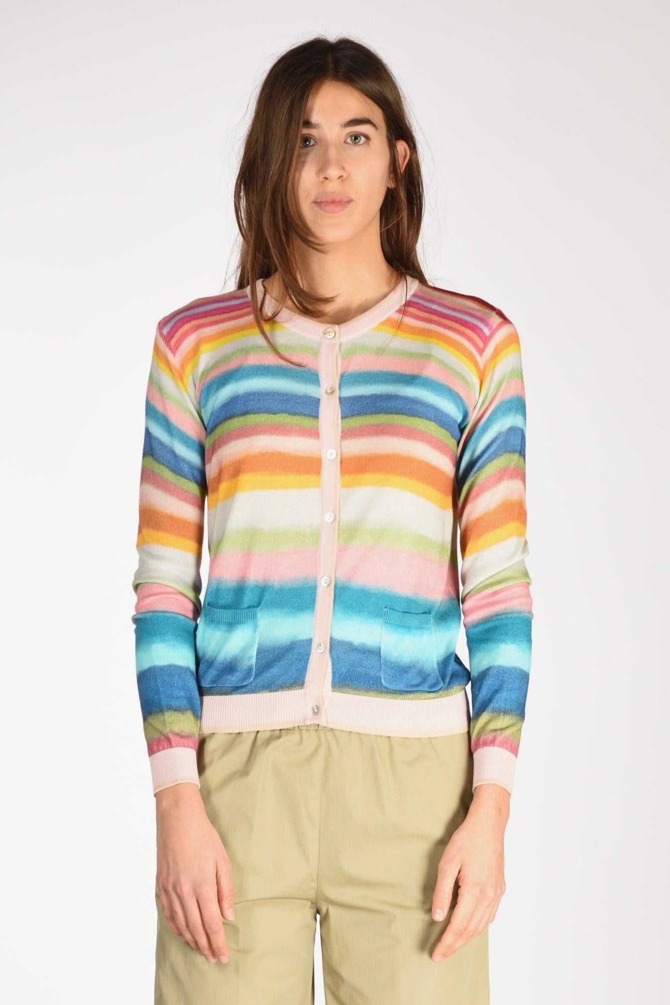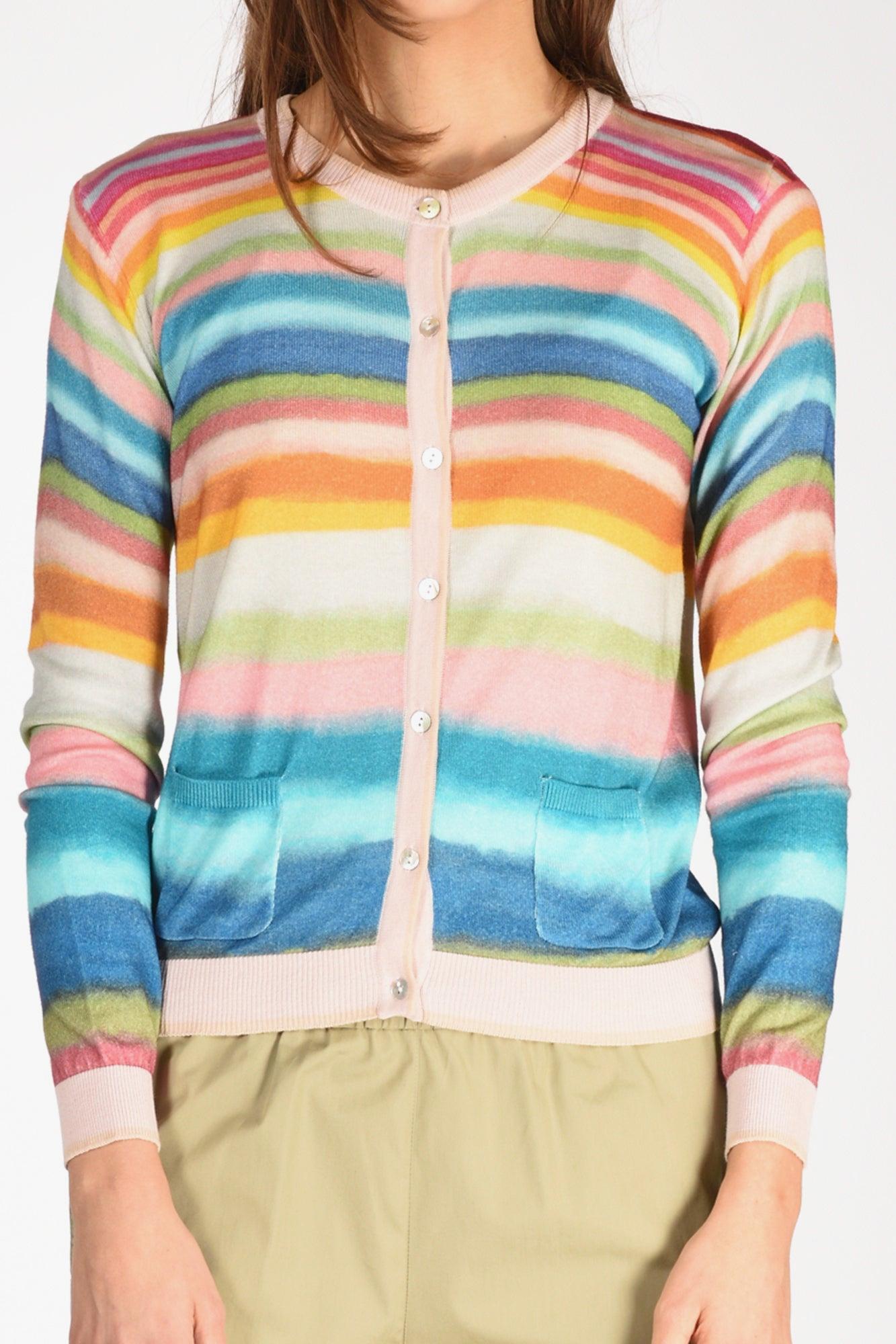 Cardigan Girocollo Fantasia, Polsi, Collo E Bordi Lavorazione A Costine A Contrasto Cromatico, Chiuso Da Bottoni A Vista, Piccole Tasche Frontali Applicate, Vestibilita' Regular, Composizione 50 Cotone, 50 Viscosa, Made In Eu