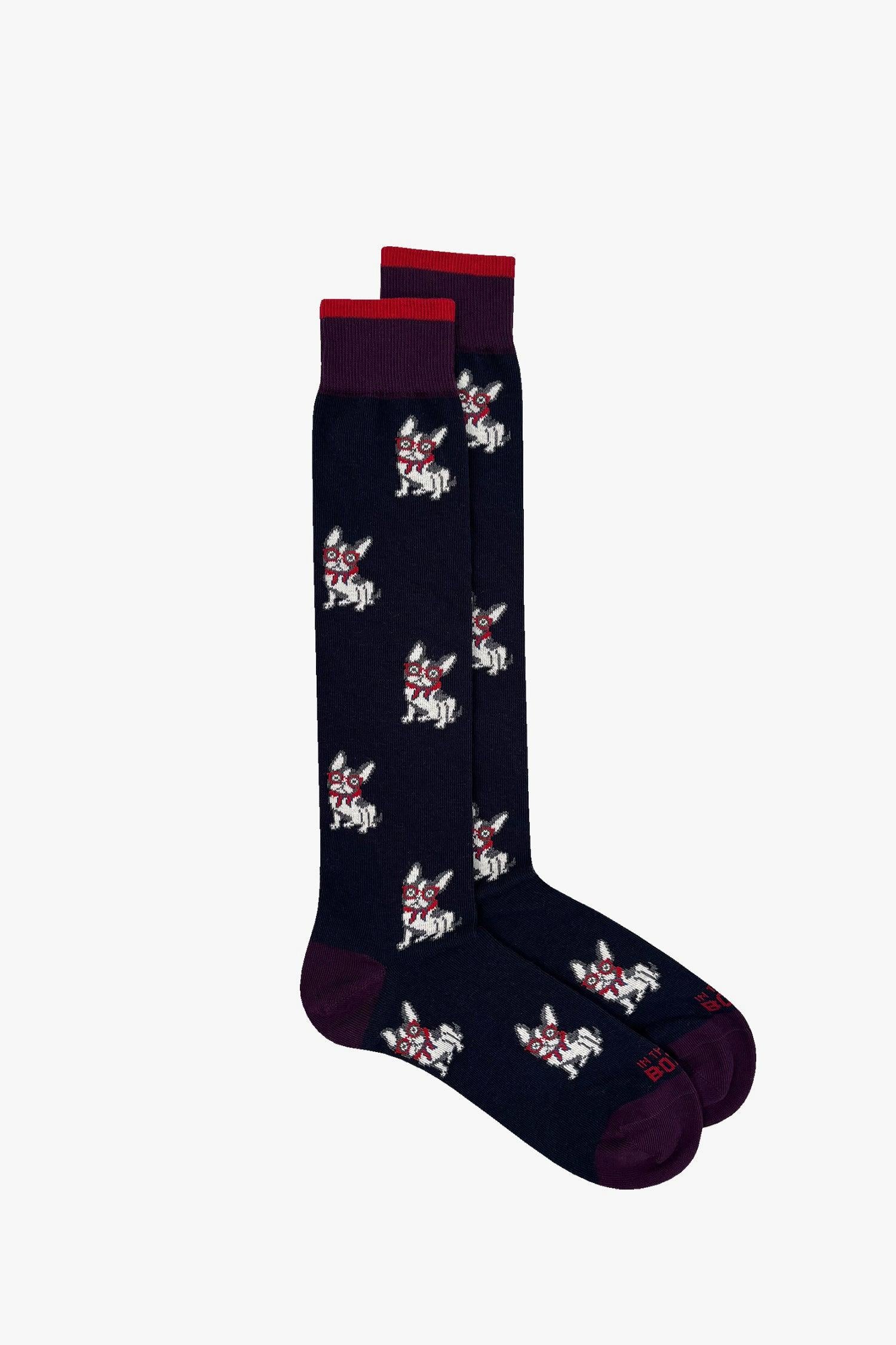 Calze In The Box in cotone con ricamo French Bulldog. Composizione: 80% CO 18% PA 2% EA