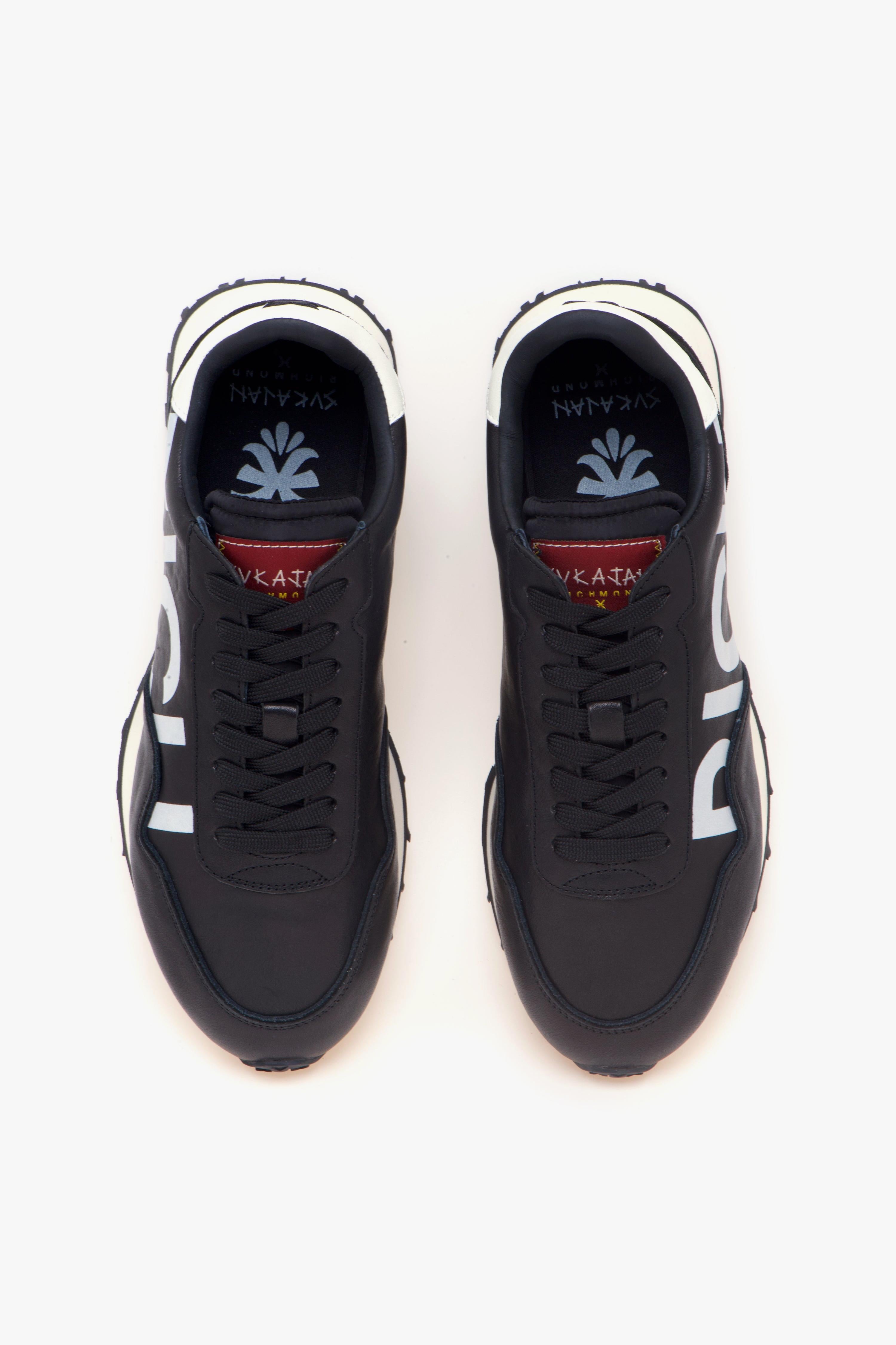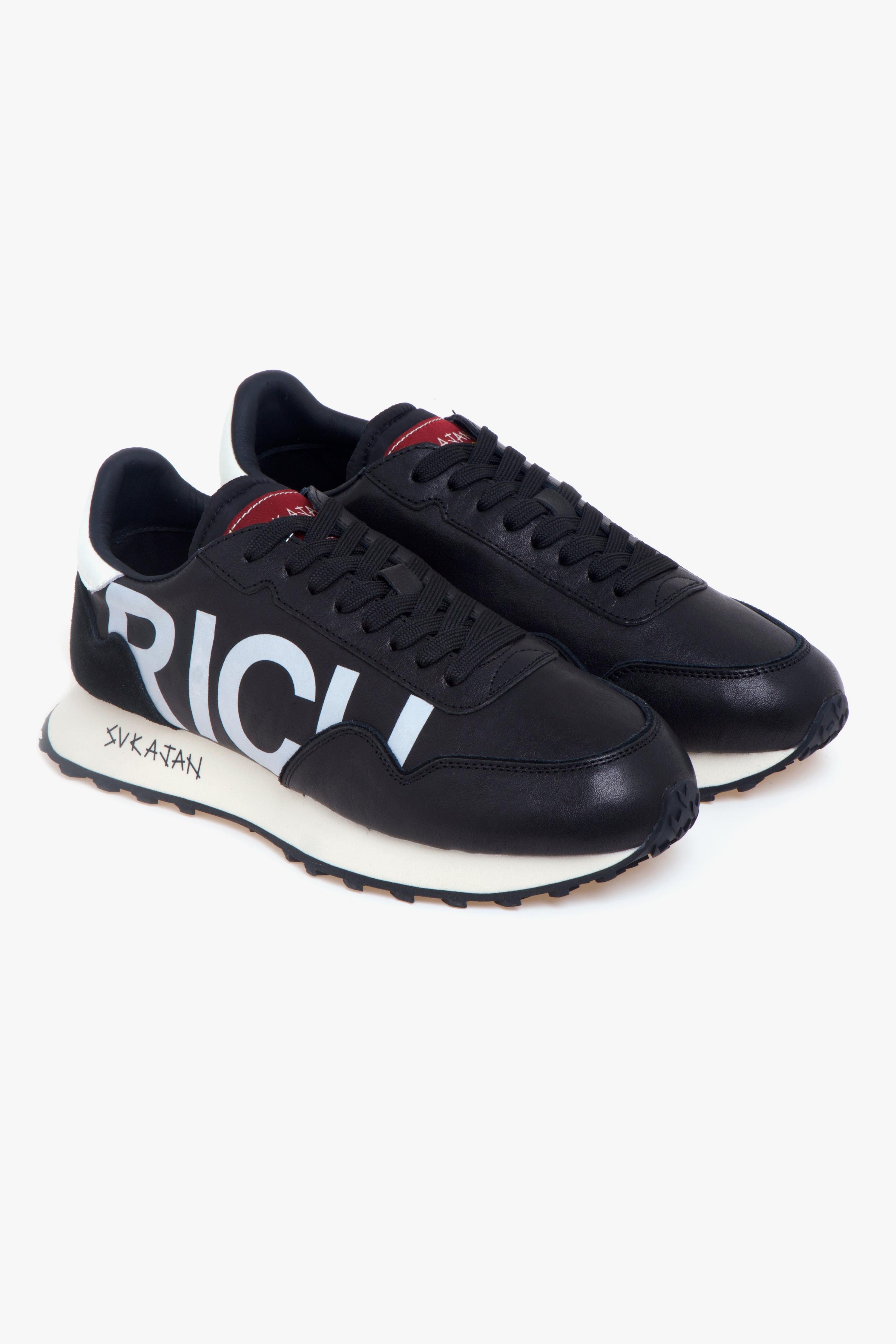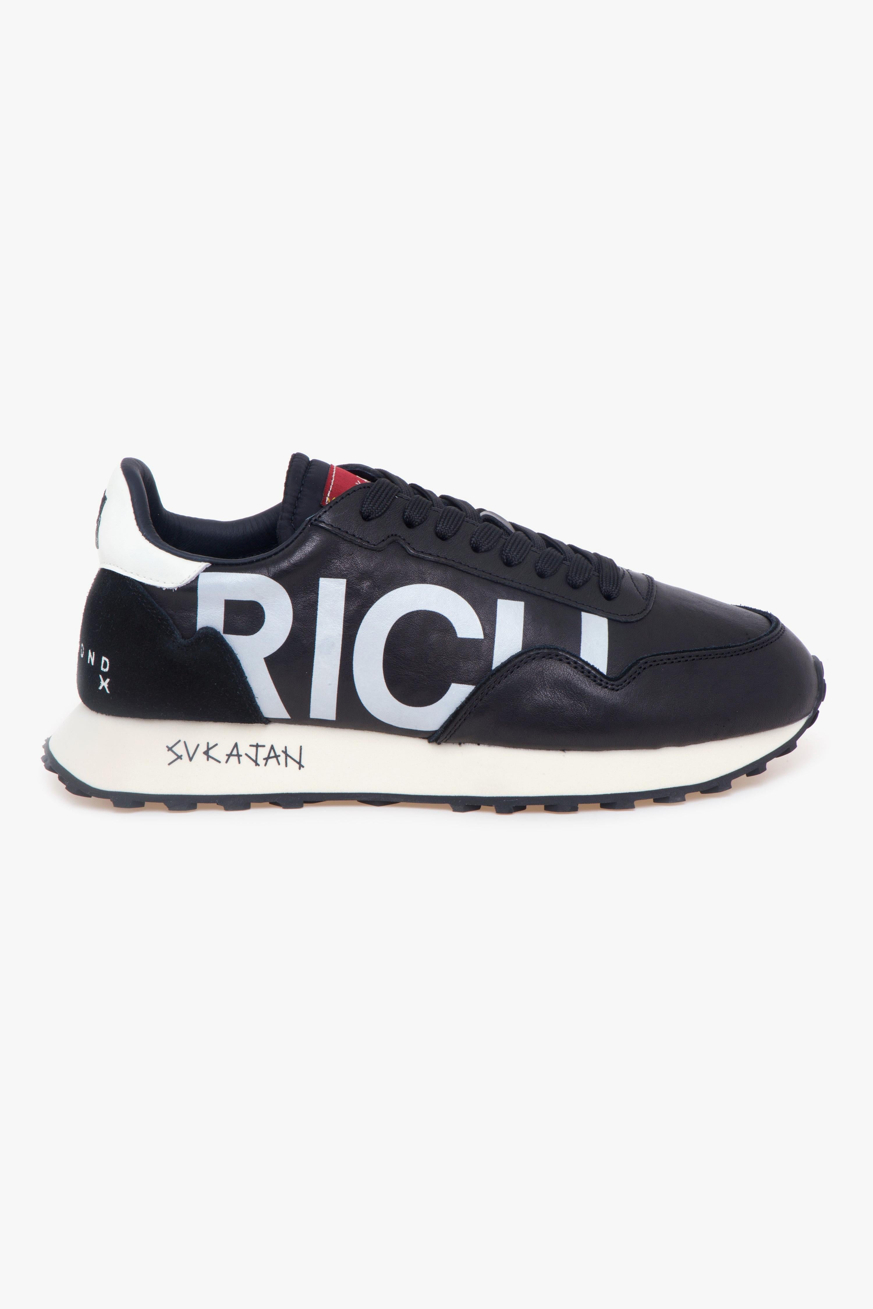 Richmond X mette al centro il segno grafico: la morbida nappa nera fa da sfondo al maxi lettering “RICH” stampato sul lato, creando un contrasto deciso e contemporaneo. Il tallone in camoscio tono su tono aggiunge profondità materica senza interrompere le linee essenziali, mentre il talloncino con logo a contrasto firma il retro con un dettaglio riconoscibile. La suola ispirata alle running d’archivio completa il look con un accento rétro attuale, pensato per l’uso quotidiano. Internamente, fodera in tessuto e sottopiede in pelle assicurano una calzata curata.Caratteristiche principali:# Tomaia in nappa nera con maxi lettering “RICH” laterale.# Tallone in camoscio nero tono su tono.# Talloncino posteriore con logo a contrasto.# Suola ispirata alle scarpe da running del passato.# Fodera in tessuto.# Sottopiede in pelle.